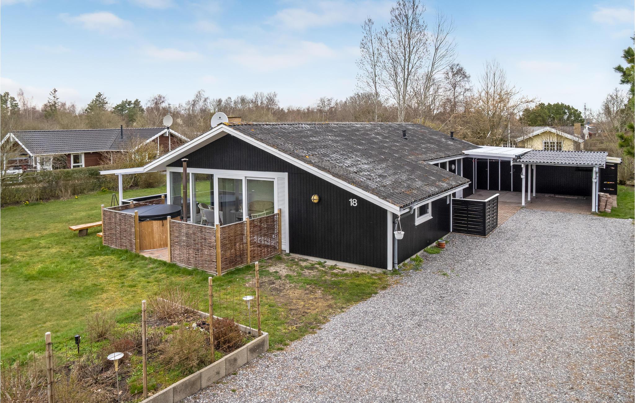 Lyst og komfortabelt feriehus tæt på Hummingen Strand med vildmarksbad og hyggelig have.