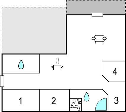 Udenfor inviterer terrassen med liggestole jer til at solbade og nyde udsigten over landskabet. Hvis vejret er godt, kan I starte dagen her med lækker morgenmad og planlægge jeres ferieaktiviteter. Der er god plads til børnene på græsplænerne, og sandkassen inviterer dem til at grave.