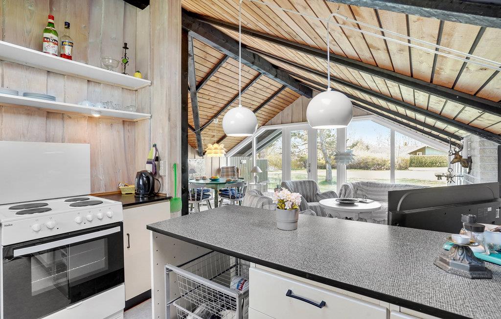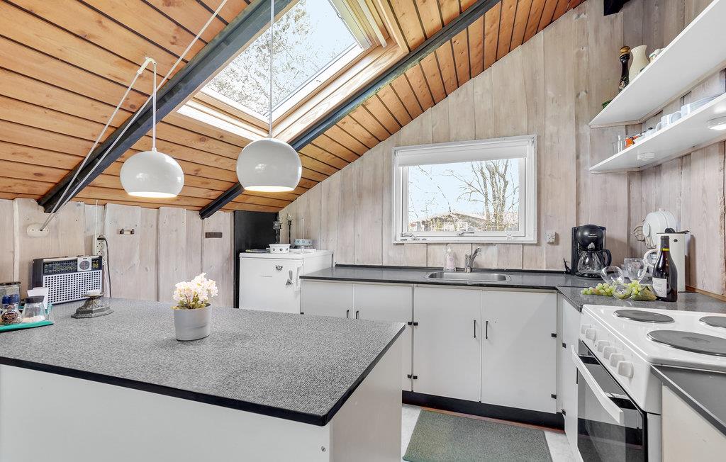 Dette sommerhus i Hummingen er ikke kun et tilflugtssted, men også et ideelt udgangspunkt for at udforske området og opleve skønheden på Lolland. Med sine store gulv-til-loft-vinduer overbader dagslyset værelserne og giver jer en malerisk udsigt over landskabet. Nyd den venlige atmosfære, som huset emmer af og føl jer straks hjemme her. Den hyggelige stue med brændeovn lægger op til at slappe af efter en aktiv dag. Læn jer tilbage og lyt til bålets knitren, mens naturen falder til ro udenfor. Det åbne rumskoncept forbinder problemfrit stue og køkken, hvilket gør det nemt at lave mad sammen og samles.