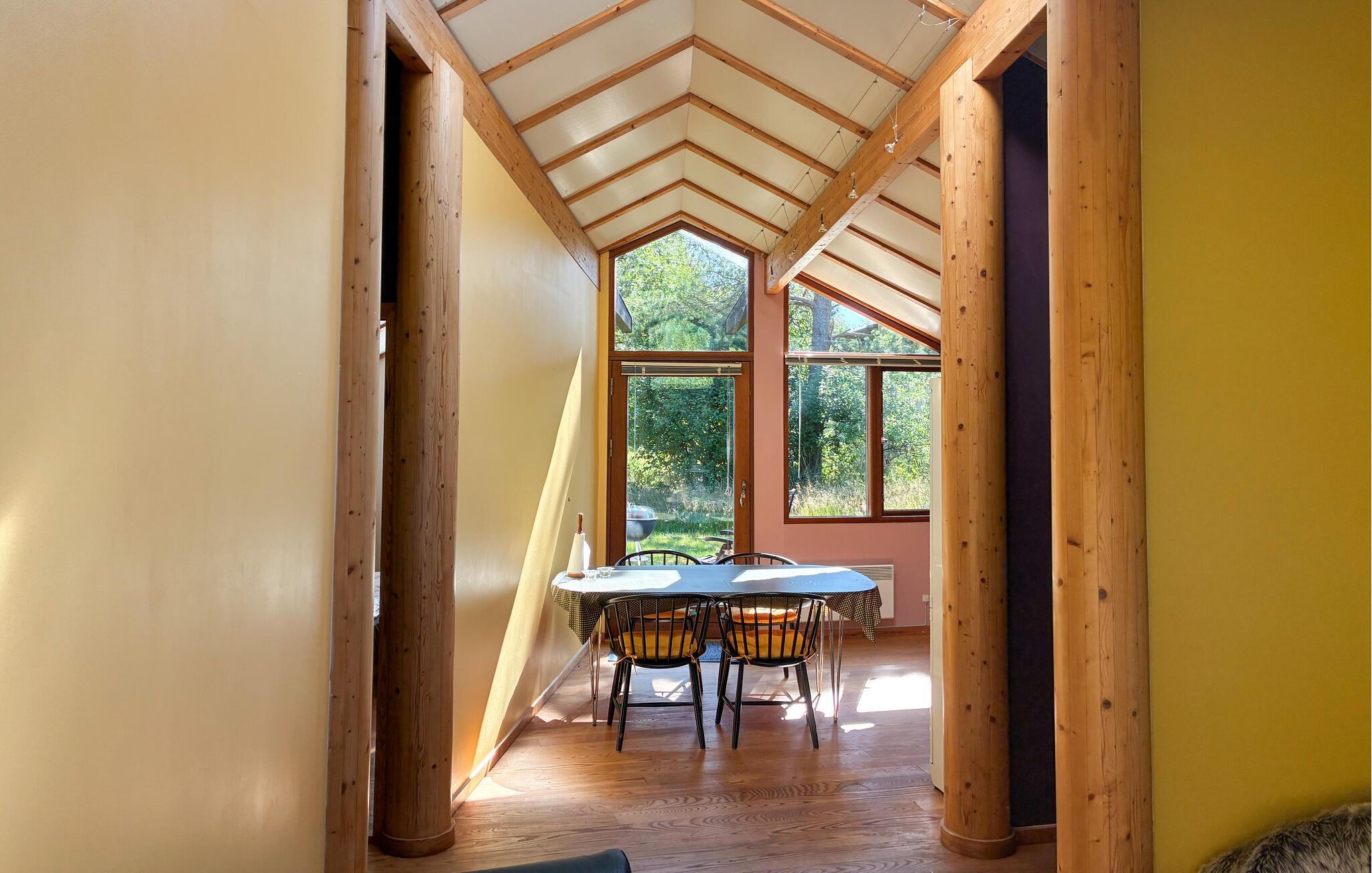 Velkommen til dette hus, som bogstavelig talt er smukt integreret i sine omgivelser. Tilbered lækre måltider mellem jeres udflugter og nyd retterne med udsigt over det fantastiske område. Planlæg dagens aktiviteter omkring spisebordet og læn jer tilbage i de behagelige sofaer efter en lang gåtur på stranden.