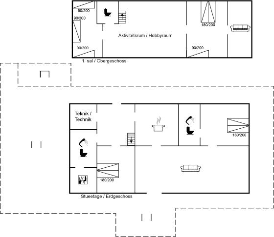 Der er i alt 4 soveværelser. Sovepladserne fordeler sig på: 6 sovepladser i dobbeltsenge. 4 sovepladser i enkeltsenge. Derudover er der 1 stk. barneseng.