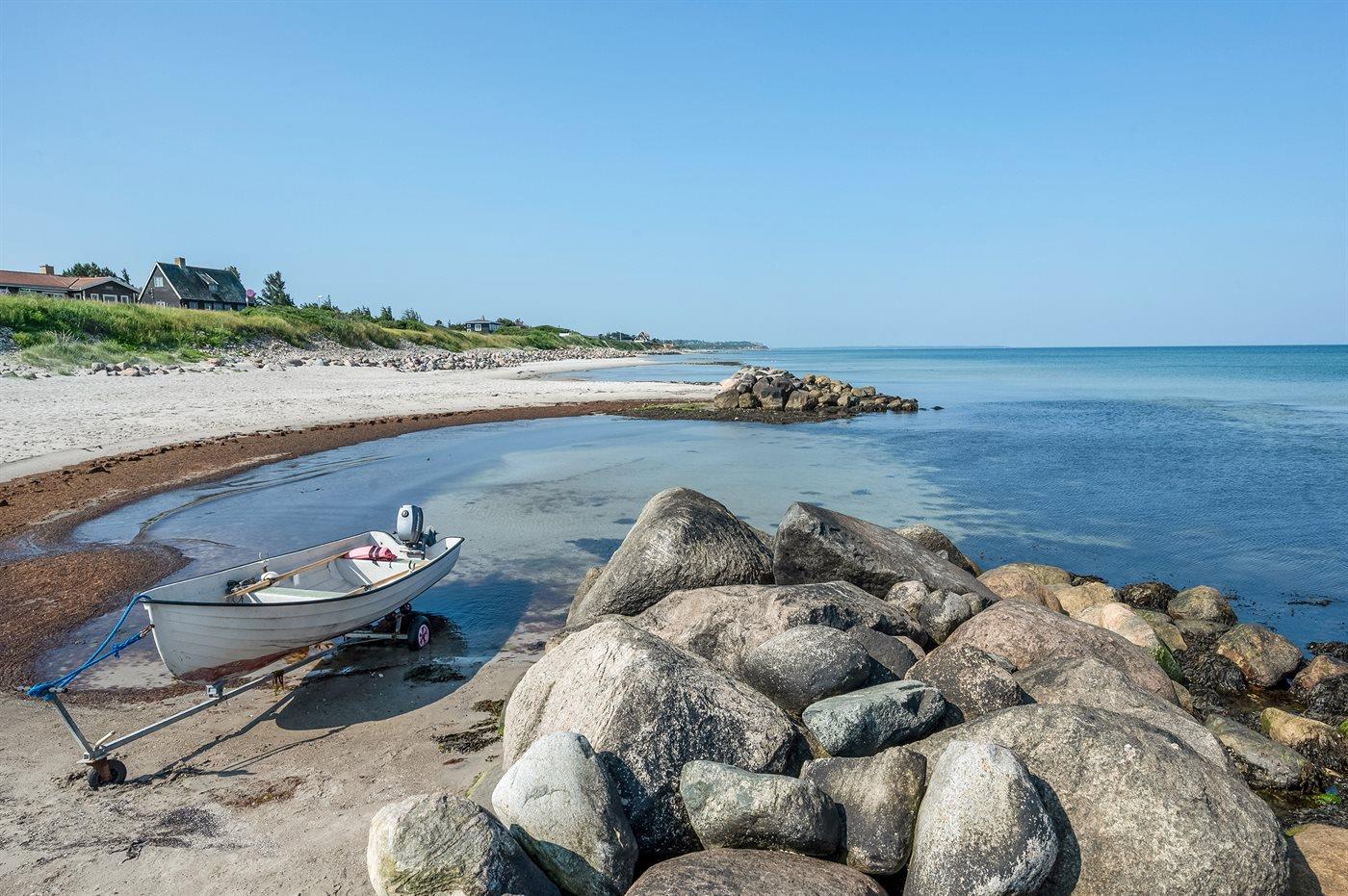 Der er desuden brændeovn. Til de små er der 3 stk. barnestole og en babyseng. Ferieboligen er beliggende på en 3.008 m² stor havegrund. Der er 30 m til havet. Nærmeste forretning er beliggende i en afstand af 3.000 m. Omkring ferieboligen er der et stort flisebelagt terrasseareal på mere end 300 m2. Desuden er der en overdækket terrasse på 25 m². Sandkasse, gyngestativ, rutsjebane og legehus. Parkering ved ferieboligen.