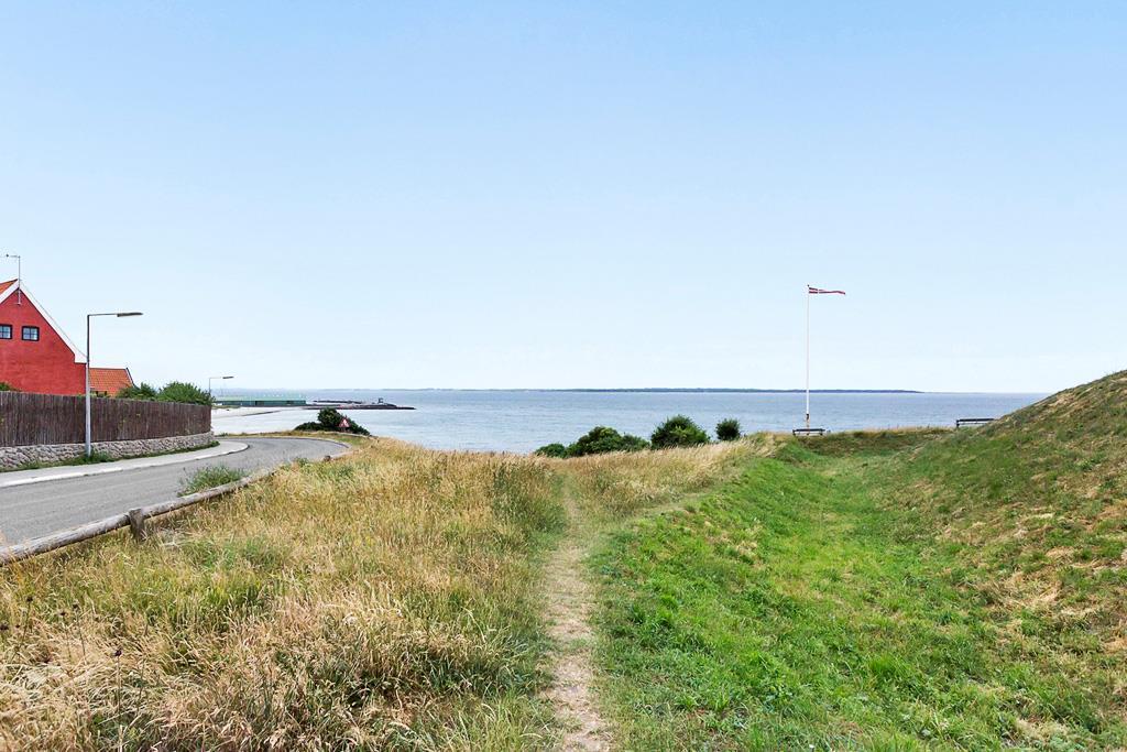 Udenfor møder du en af husets absolutte højdepunkter: siddepladsen foran huset med udsigt over havet og indsejlingen til Hundested Havn. Her kan du nyde din morgenkaffe, mens solen stiger op, eller et glas vin, mens skibene langsomt passerer forbi. Bag huset finder du en lille, privat græsplæne og endnu en hyggelig siddeplads, hvor du kan finde læ og nyde stilheden. Lige neden for vejen ligger "Trekanten" – en børnevenlig, bred sandstrand med lavt vand, der indbyder til både leg og afslapning.
