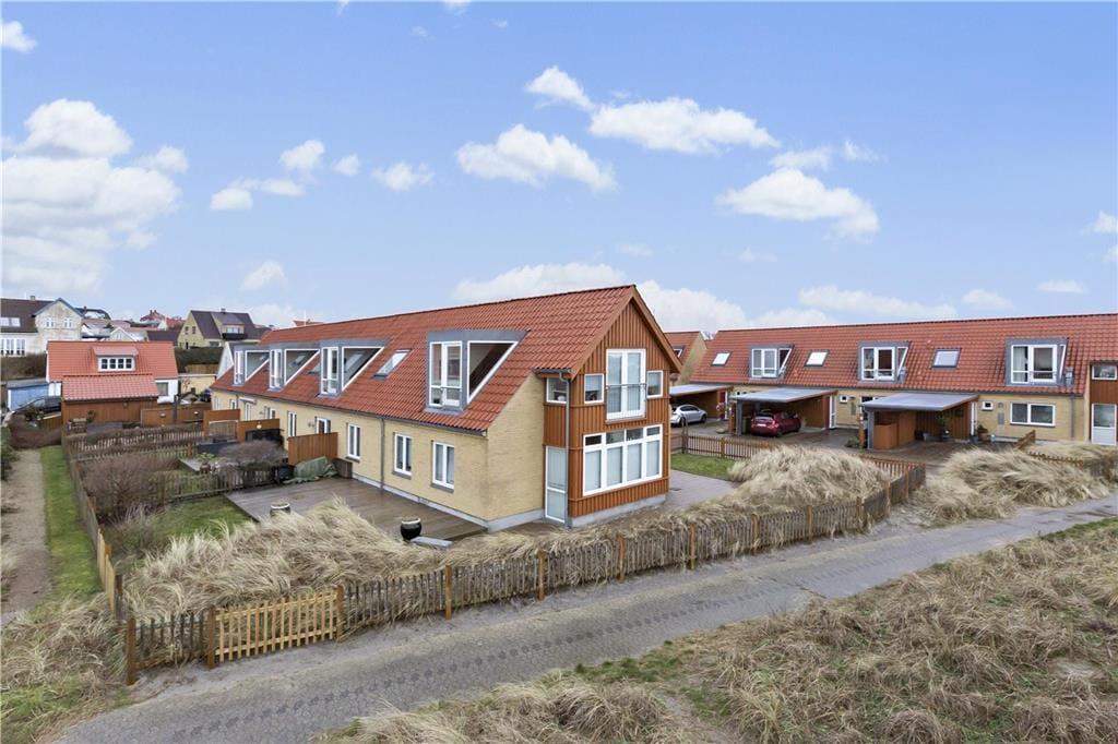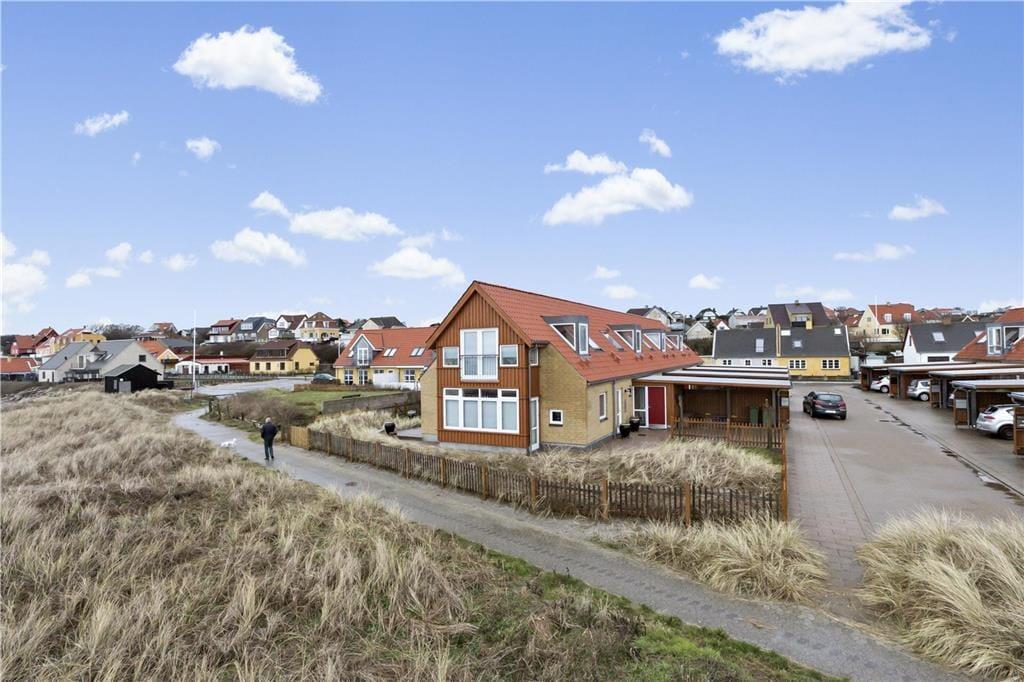 Haven er en naturlig oase, der består af klitter, siv og en lille græsplæne – perfekt afskærmet af et stakit for at skabe privatliv. Terrassen indbyder til hyggelige måltider i solen, hvor du kan lade dig opsluge af lyden af bølgernes brusen og udsigten over havet. Fra terrassen kan du gå direkte ud på stien, som fører dig til stranden, der kun ligger få skridt væk. Her kan du lade fødderne synke ned i det bløde sand og tage en dukkert i havet. Sommerhuset er et enderækkehus, hvilket giver en enestående udsigt til begge sider og masser af privatliv. Der er også carport til bilen, så du kan ankomme og parkere nemt og bekvemt.