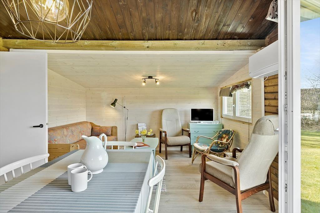 Træd indenfor i dette charmerende og rustikke sommerhus, hvor enkelhed og natur går hånd i hånd. Huset har en hyggelig og åben planløsning, hvor køkkenalrum og opholdsstue smelter sammen. Her kan du slappe af i sofaen, nyde udsigten mod haven eller se en film på tv’et efter en dag fyldt med oplevelser.