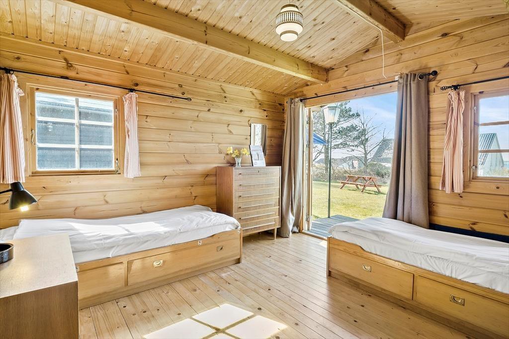 Sovepladserne er fordelt mellem huset og et anneks: I hovedhuset finder du en enkeltseng i et lille soveværelse, der er i åben forbindelse med badeværelset, samt en sovesofa i opholdsstuen. Annekset rummer to enkeltsenge og fungerer som en ekstra soveplads i sommermånederne, da der ikke er opvarmning.