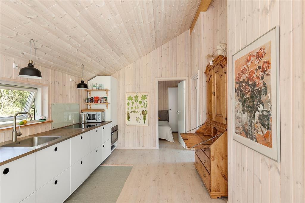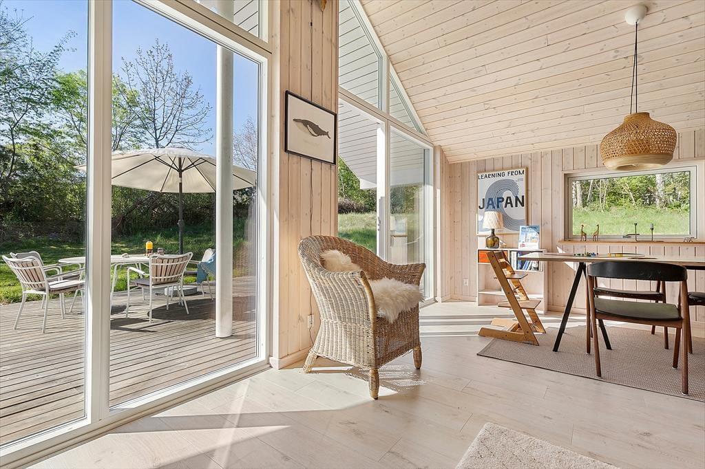 Velkommen til et moderne og indbydende sommerhus, hvor lys, rummelighed og komfort går hånd i hånd. Huset byder på et stort, rummeligt soveværelse samt et ekstra værelse med dobbeltseng, og i stuen findes yderligere en ekstra soveplads, så her er god plads til både familie og gæster. Det åbne køkken-alrum skaber en naturlig samlingsplads med sit moderne køkken, store vinduespartier og flydende overgang til terrassen og haven udenfor. Her er indrettet med øje for detaljen – en rolig, nordisk stil med alt, hvad du har brug for til en afslappende ferie.