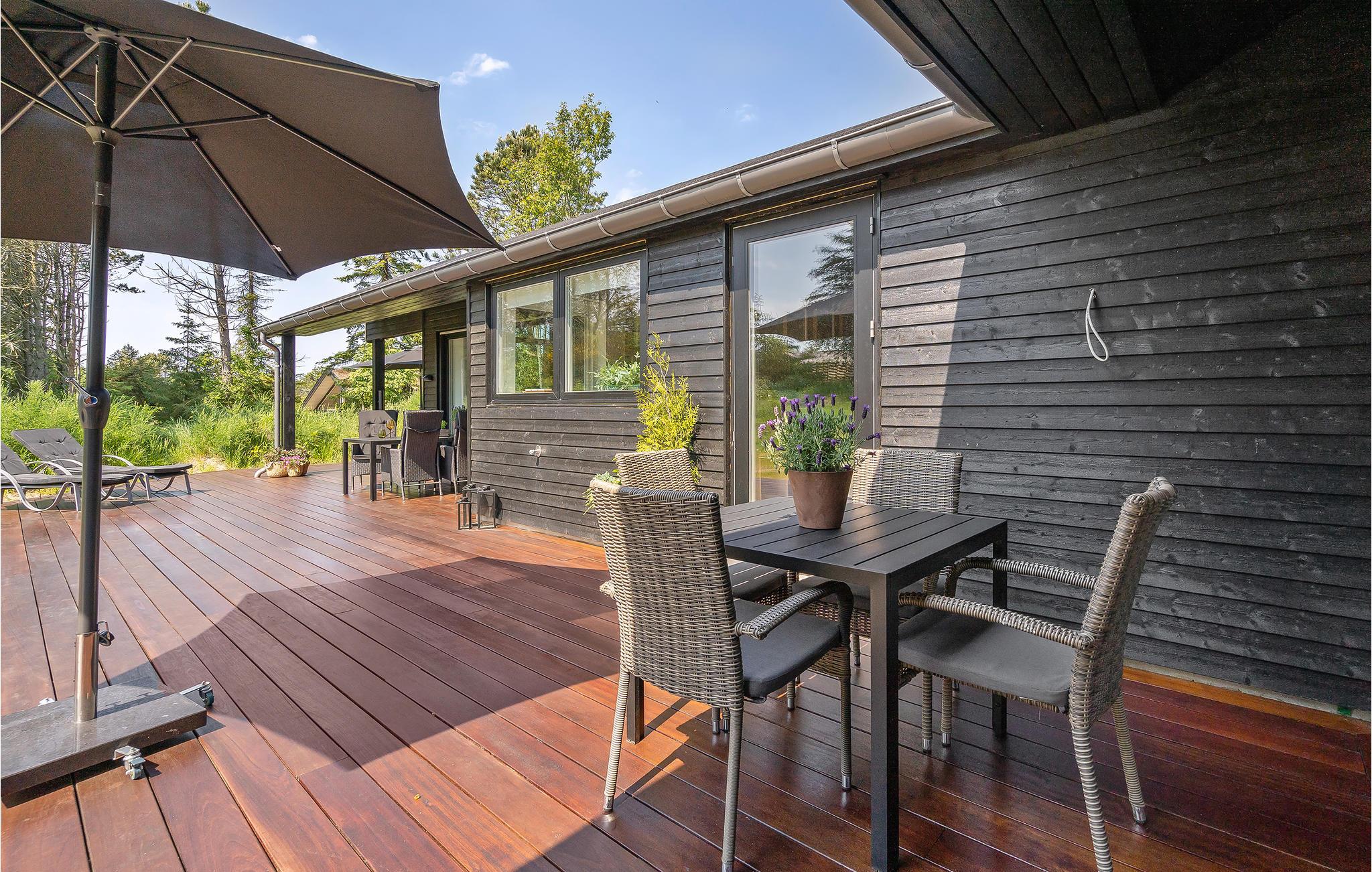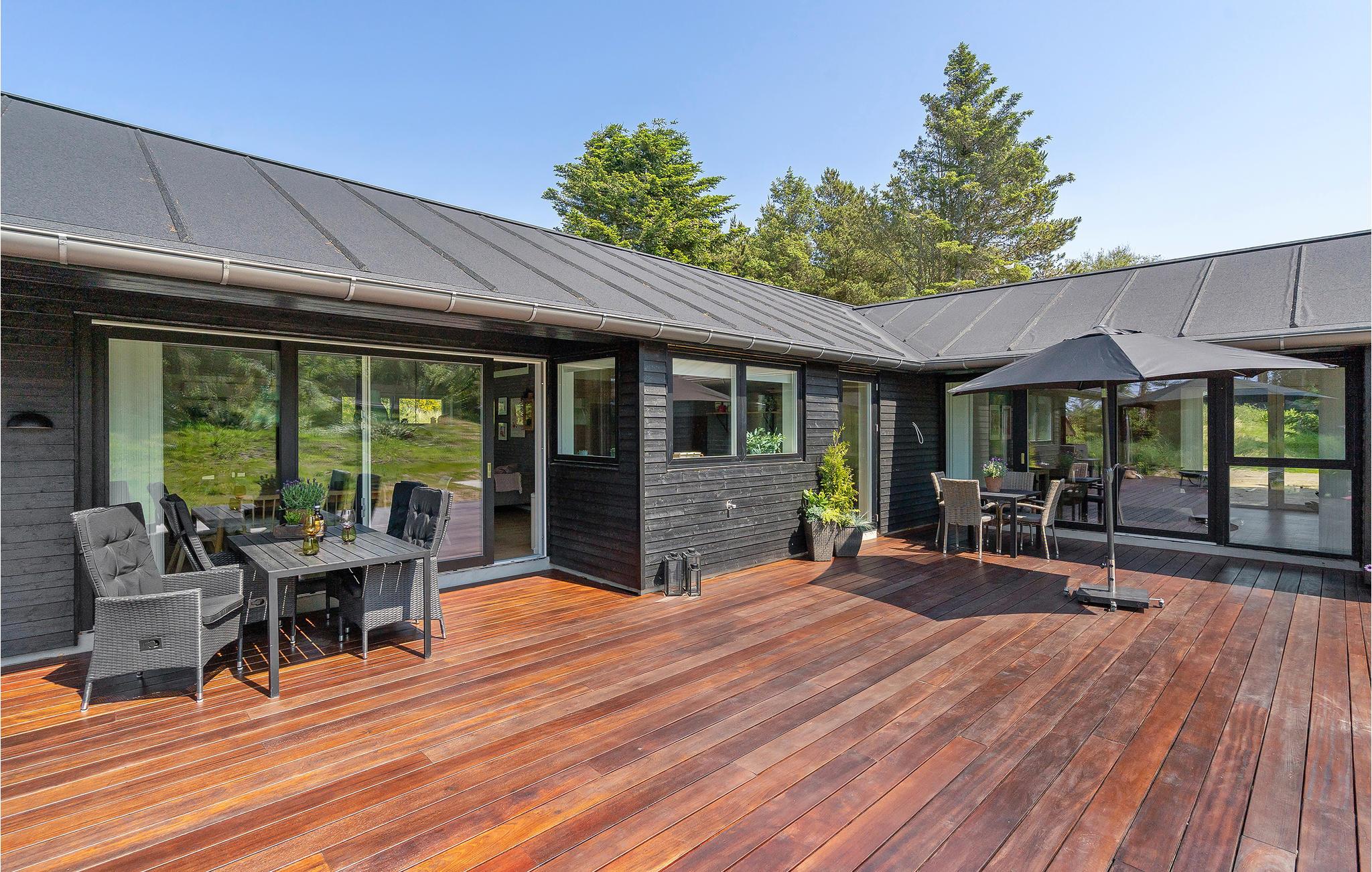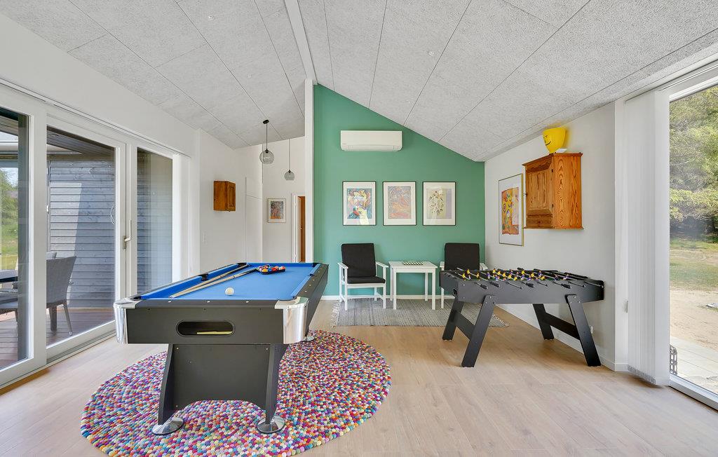 Skønt aktivitetshus i Blokhus med moderne indretning, sauna, poolbord og vildmarksbad til afslapning og underholdning.