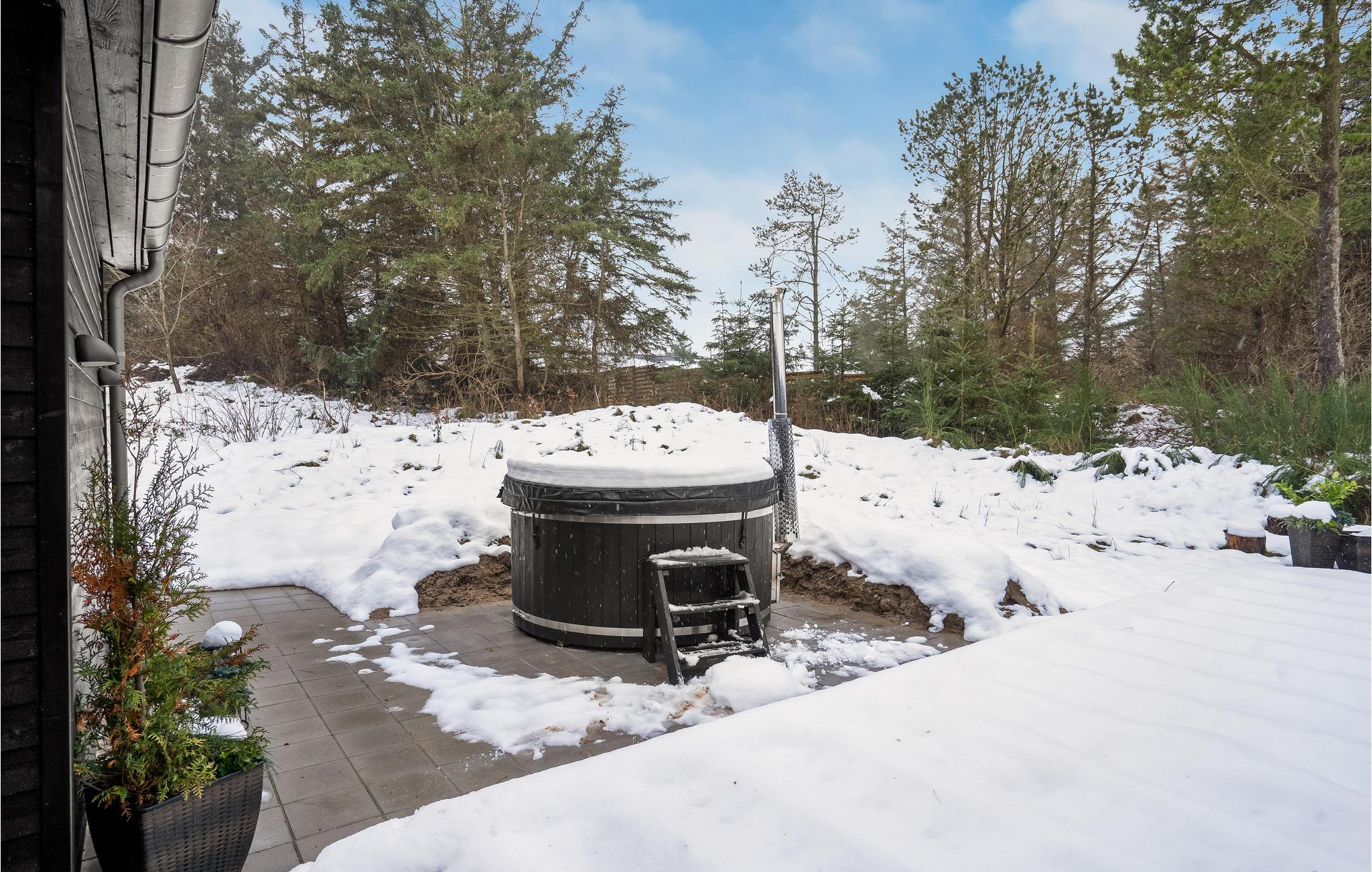 Her kan I slappe af i sofaen eller måske holde filmaften til den knitrende ild fra brændeovnen. Der lægges op til masser af underholdning i aktivitetsrummet, der er indstyret med både bordfodbold og et poolbord. Badeværelset med badekar og sauna tilbyder skønne og afslappende wellness-øjeblikke, ligesom I kan nyde lidt udendørsluksus i form af vildmarksbadet i haven.