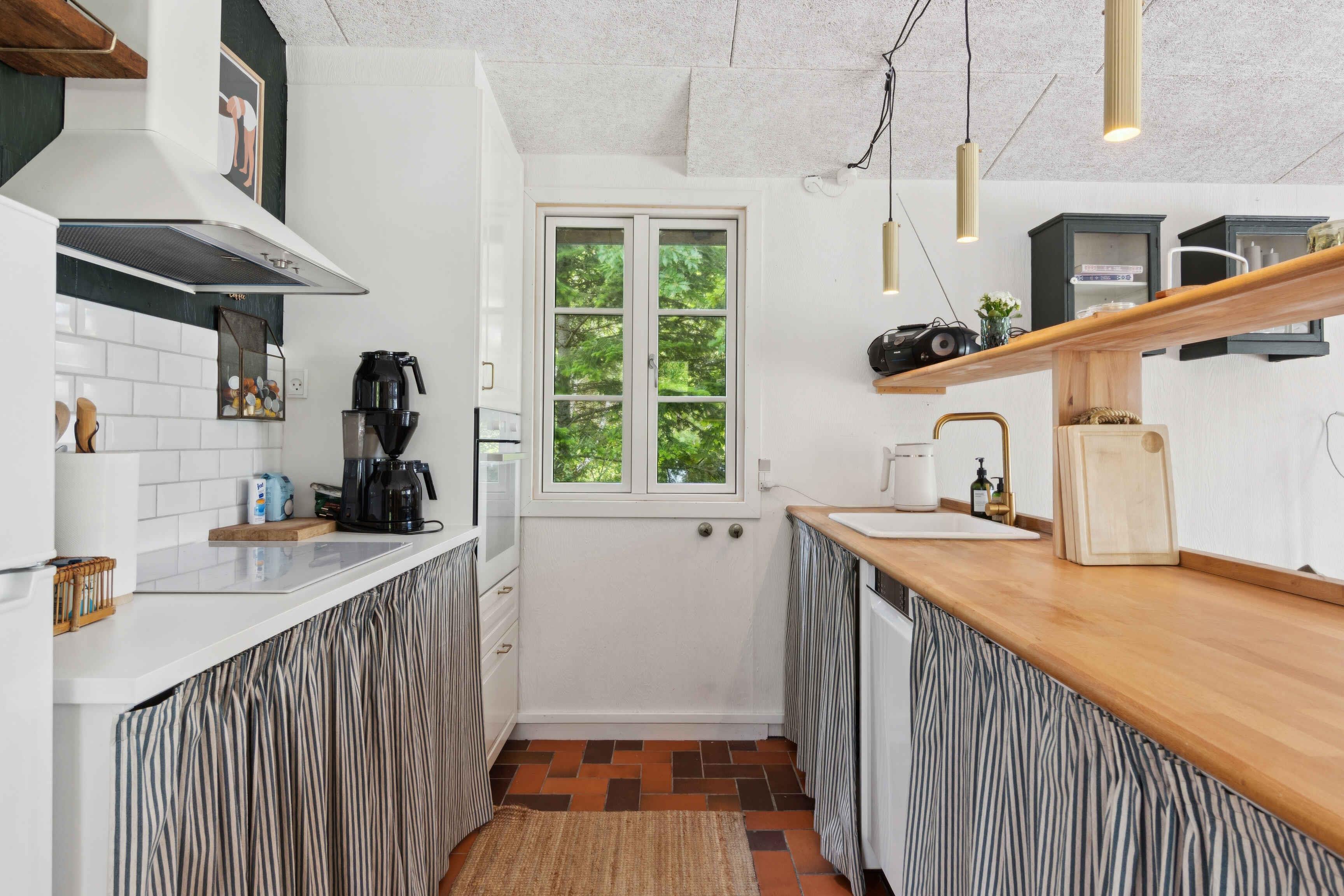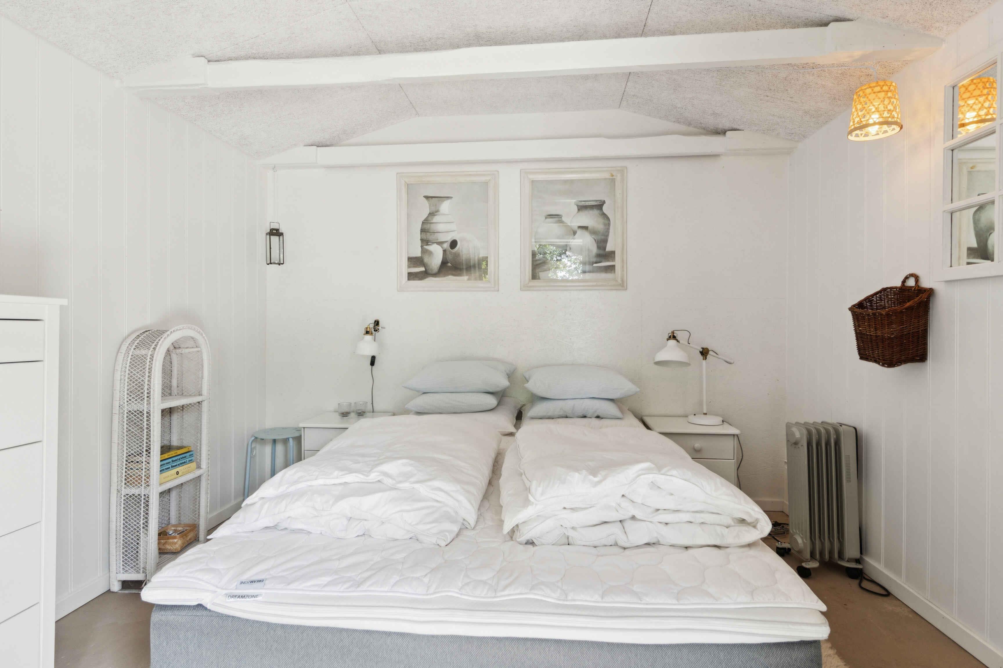 På en unik, ugeneret sydvest-vendt naturgrund i første række til fjorden ligger dette sommerhus - med fantastisk udsigt til vandet og kun 100 meter til stranden. En lille privat sti fører direkte ned til den børnevenlige fjord, hvor lavt klart vand og blødt sand indbyder til leg, badning, afslappede dage i solen og de smukkeste solnedgange! Huset rummer 75 veldisponerede kvadratmeter med fire separate soveværelser og i alt seks sovepladser: - et anneks med dobbeltseng og fjordudsigt - et soveværelse med dobbeltseng - et værelse med alkove til en person - et værelse med sovesofa til en person Herudover et badeværelse og en garage, hvor man kan finde parasol, hynder m.m. Køkken og stuen er husets naturlige og hyggeligste samlingspunkt. Den åbne pejs og varmepumpe sikrer dejlig varme hele året rundt samt køl på varme sommerdage. Og udsigten over fjorden fungerer som et kæmpe levende maleri. Der er naturligvis også wifi, så opholdet kan kombineres med streaming eller arbejde. På den store træterrasse, som ligger i læ blandt træerne, er der god plads til at nyde solen og de rolige omgivelser. Den udendørs pejs gør det muligt at forlænge aftenerne og samle sig omkring ilden - i garagen finder man snobrødsspyd. Her er god plads til at slappe af – uden at blive forstyrret. I gå- eller løbeafstand finder man smukke vandreruter, insketbingo for de små og selvfølgelig mulighed for at bade (hele året rundt) og fiske. Eller bare nyde udsigten over det smukke fjordlandskab. På ti minutters kørsel er man på Statens Museum for Kunst i Doverodde, hvor man kan opleve kunst i verdensklasse og nyde en god frokost. Er man til levende musik er både Høloftet og Agger Darling gode bud på hyggelige lokale spillesteder. I kort køreafstand er der fantastiske muligheder for vandaktiviteter i alle mulige former som fx windsurfing, bølgesurfing, bodyboard, wing surfing, SUP og derudover ligger Sydthy Kurbad og svømmehal kun ti minutters kørsel fra sommerhuset. I Struer findes også Kurbad Limfjorden og wakeboardbane. Nationalpark Thy ligger tæt på med klitplantager, vidtstrakte hedelandskaber og masser af storslået natur med afmærkede stier til både vandre- og cykelture. Der er også mulighed for udflugter til små charmerende havnebyer. Endelig er Hurup den nærmeste handelsby med flere butikker, supermarkeder, et lille godt bageri og café samt en god slagter, som også sælger fisk, italienske og selvfølgelig Thy specialiteter. Små vejboder byder også på lækre lokale Thy råvarer. Kort sagt - sommerhuset til dem som sætter pris på det simple, afslappende og gode liv, hvor naturen, vand og roen er værdsat.