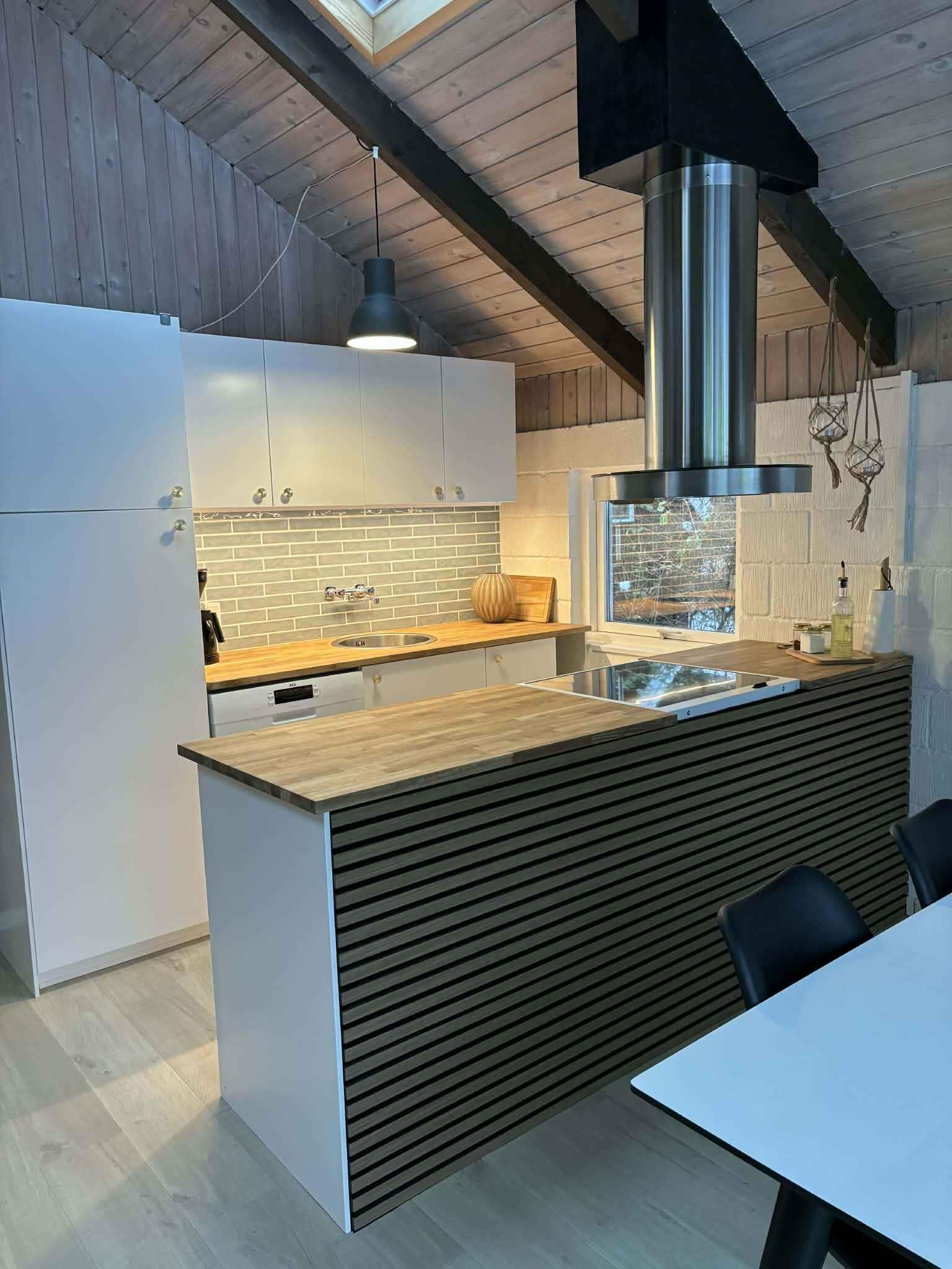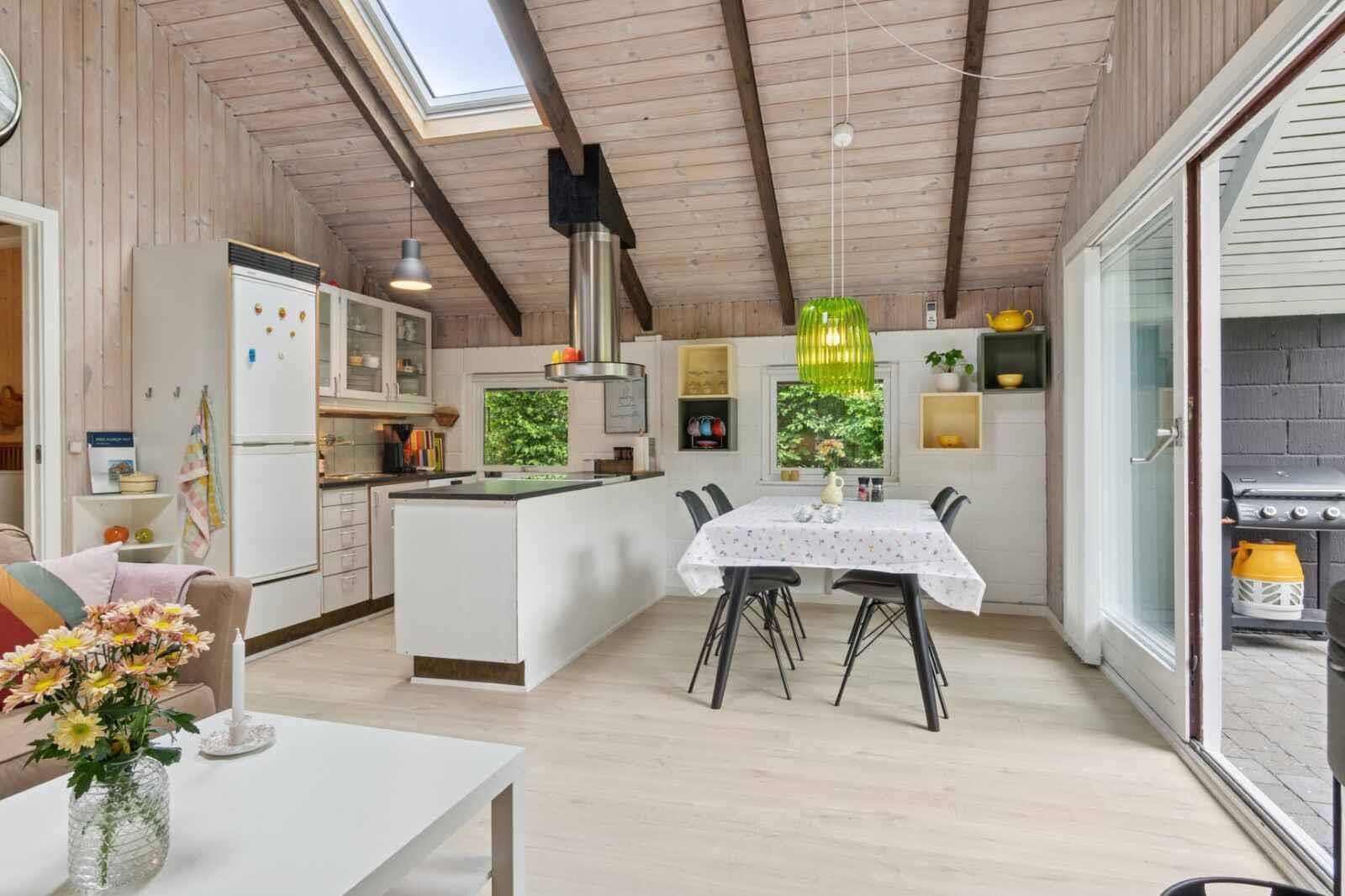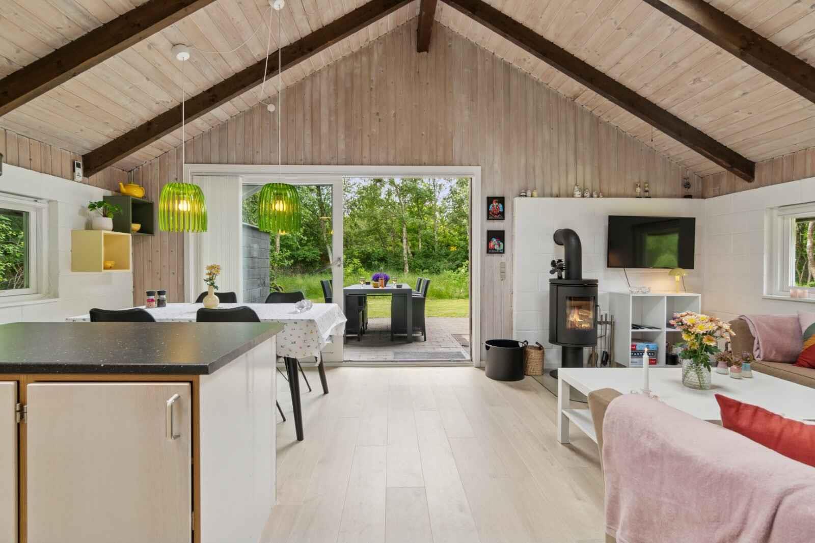 Her finder du et sommerhus, hvor roen straks indfinder sig. Tre soveværelser med plads til seks personer giver mulighed for både familietid og privatliv. Indenfor er atmosfæren varm og enkel, med brændeovn i stuen og et åbent køkken, der gør madlavningen til en fælles aktivitet. Haven er som skabt til ferieliv. Her kan børnene more sig på gynge og rutsjebane, mens de voksne nyder solen på terrassen. Grillen gør det let at samle familien til aftensmad under åben himmel. Haven er rummelig, ugenert og indbyder til både leg, afslapning og stilhed. Kun få minutters gang bringer dig til fjorden. Her kan du bade i klart vand, kaste snøren ud eller blot gå en tur langs bredden. Fjorden skifter udtryk med lyset – fra fredfyldte morgener til stemningsfulde aftener med glitrende refleksioner. Oplevelserne i området er mange. Nationalpark Thy ligger tæt på og byder på rå natur med klitter, skove og et rigt fugleliv. Cykel- og vandreture er oplagte måder at opleve landskabet på. Limfjorden åbner muligheder for kajak og sejlture. Når du ønsker lidt byliv, er både Thisted og Hurup inden for rækkevidde. Her finder du caféer, butikker og markeder, der tilføjer variation til ferien. Efter en dag med oplevelser er det en fornøjelse at vende hjem til husets rolige rammer. Sommerhuset er ideelt for familier og venner, der ønsker en ferie med en kombination af natur, oplevelser og nærvær. Haven, fjorden og den fredelige beliggenhed gør dette sted til et oplagt valg for dem, der søger ferie på Vestkystens egne præmisser.
