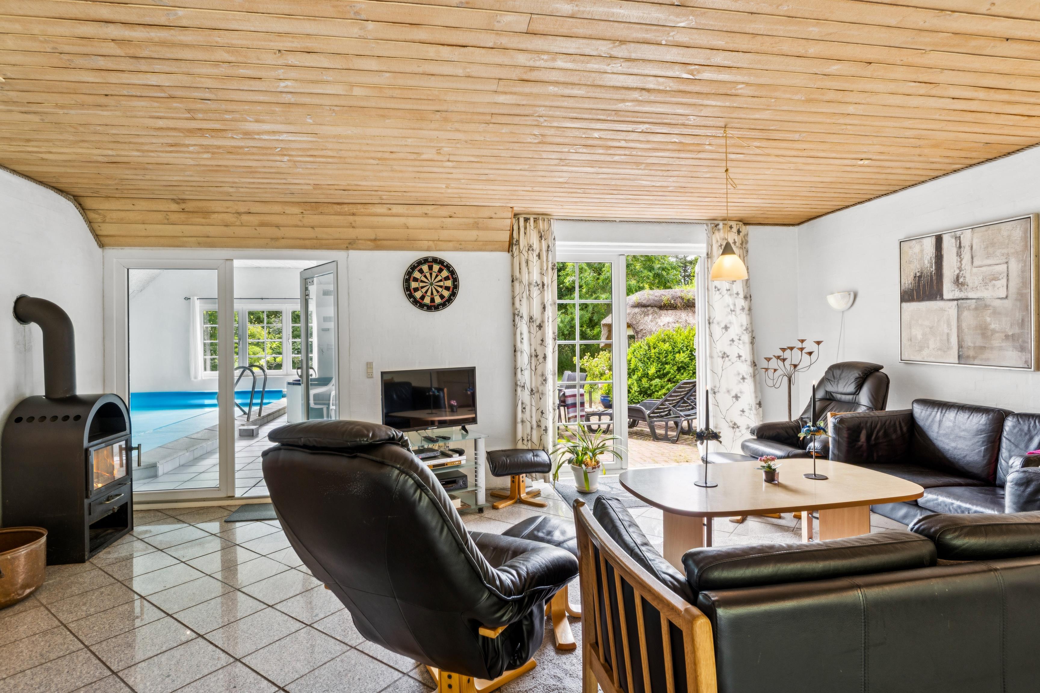 Charmerende sommerhus i Vester Husby med pool, spabad og sauna til afslapning og leg på stor naturgrund.