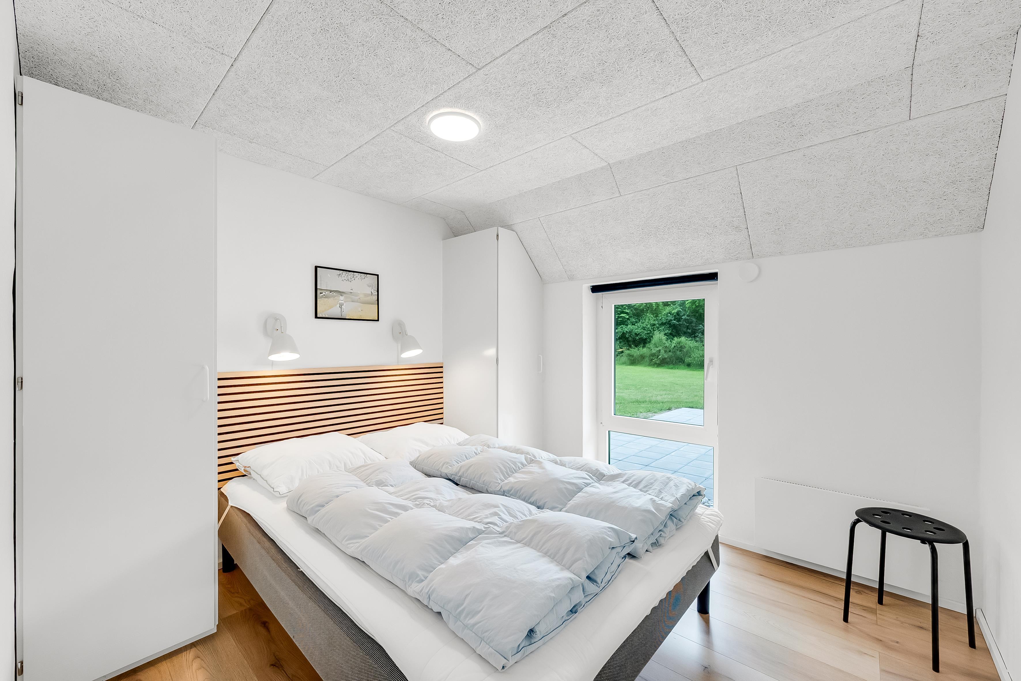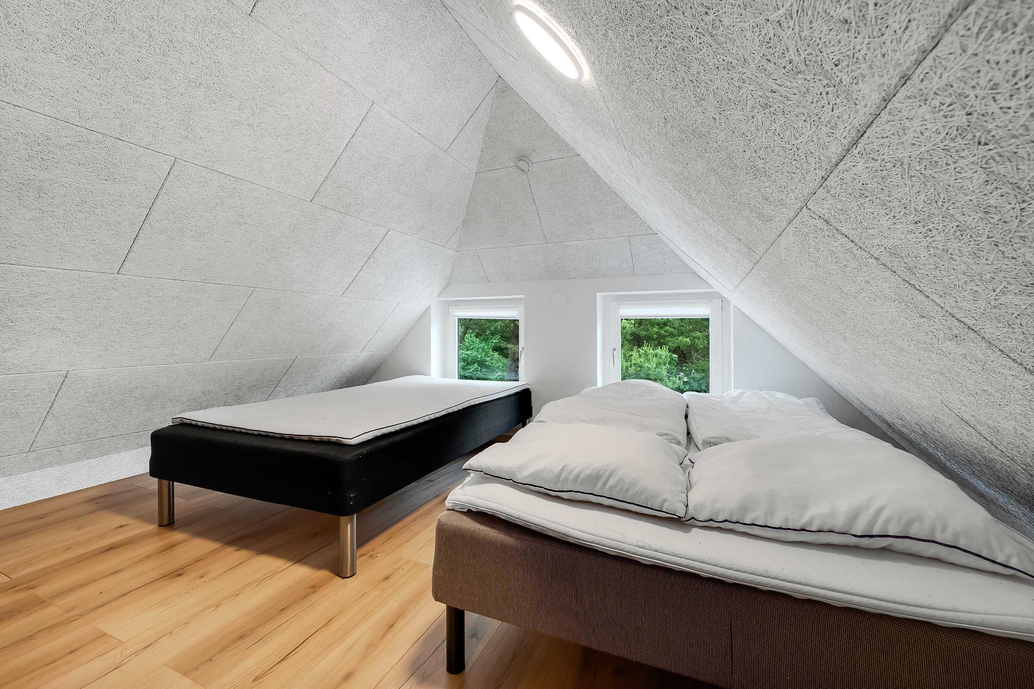 Sovepladserne er fordelt på fem værelser – fire med dobbeltsenge og et med køjeseng. Hemsen, som især er velegnet til børn, har tre ekstra sovepladser og er indrettet som en "spillehule" med tv, playstation og sofa. En luft-til-luft varmepumpe sikrer et behageligt indeklima, og der er også et vinkøleskab som en ekstra luksus.