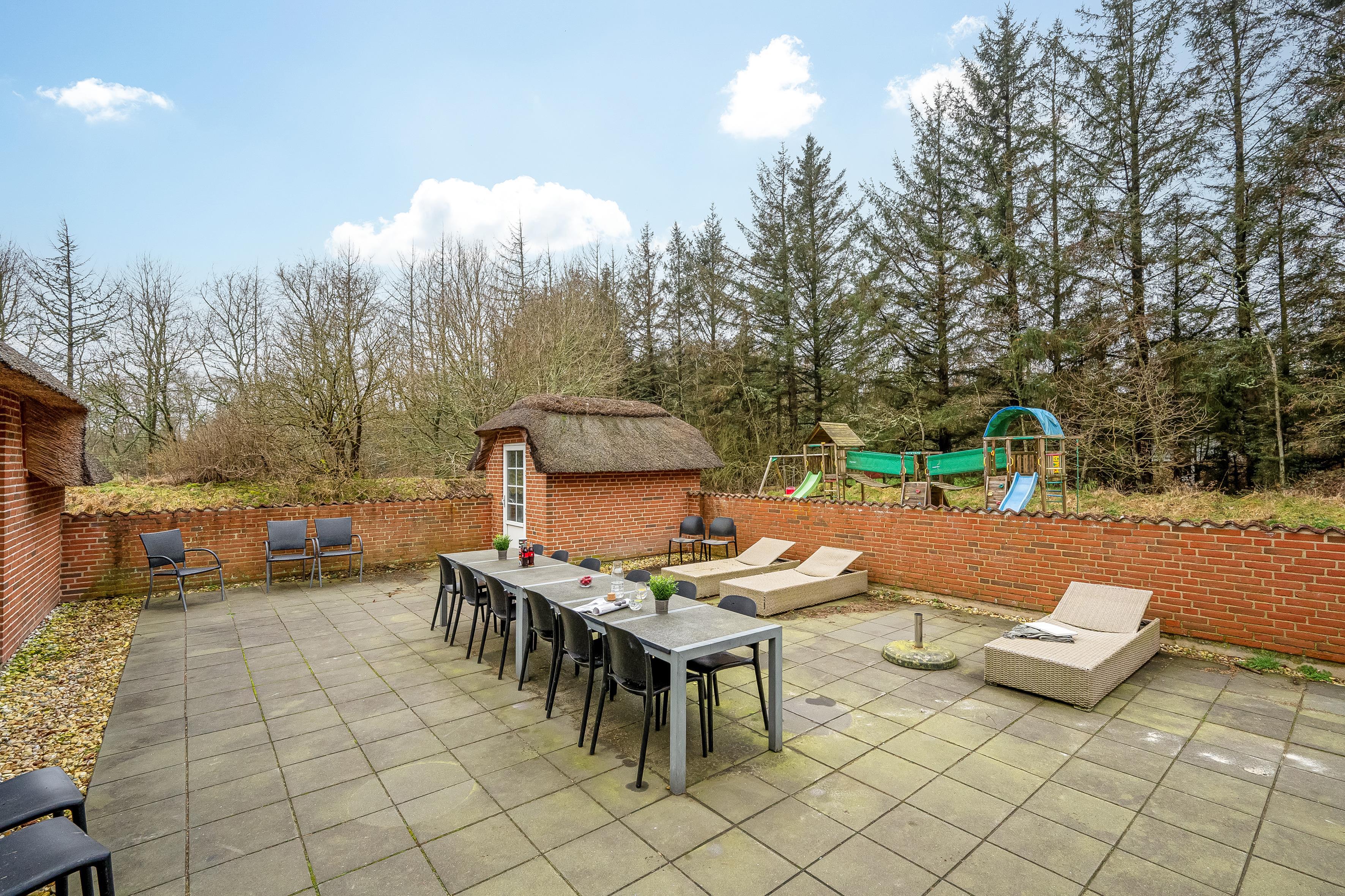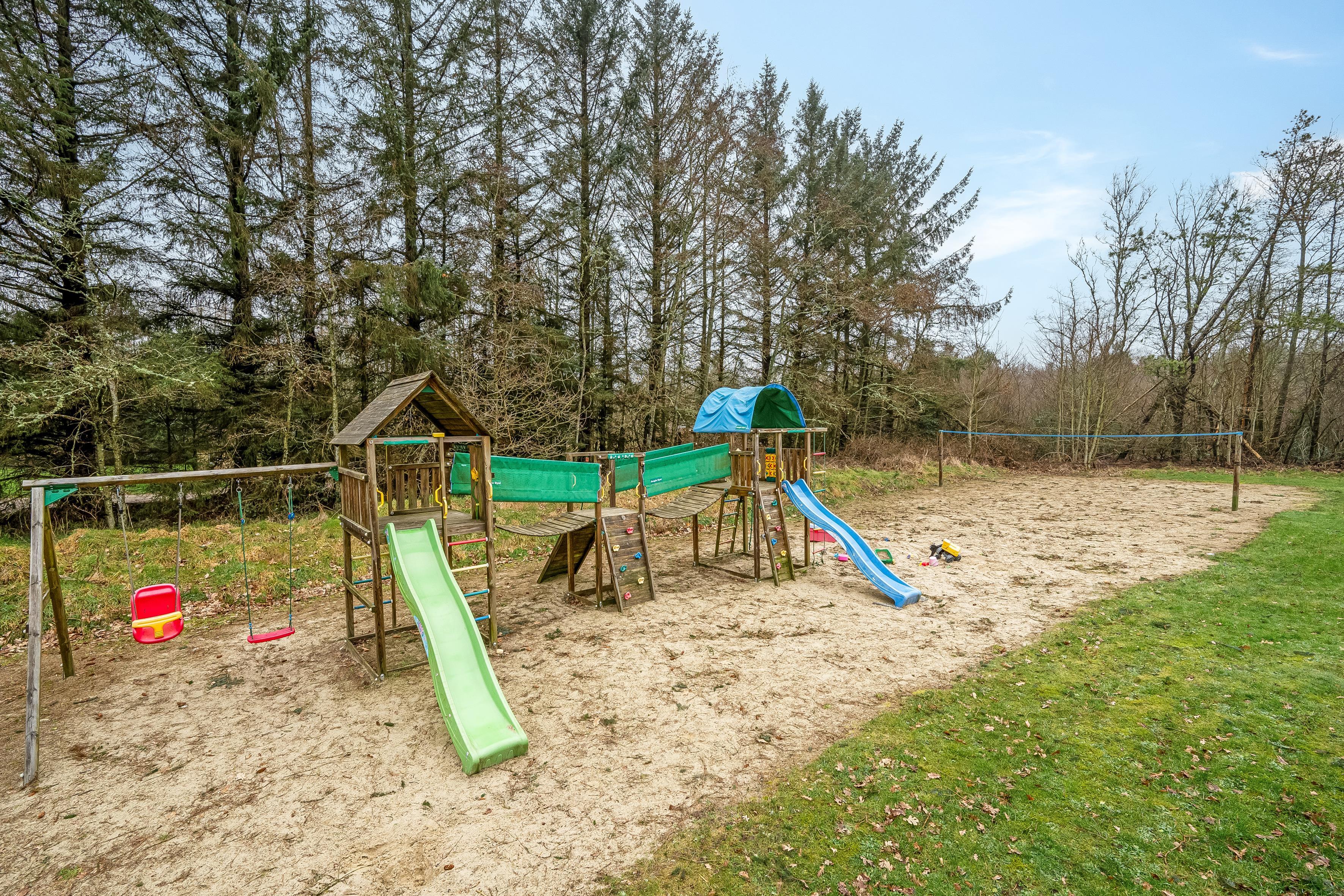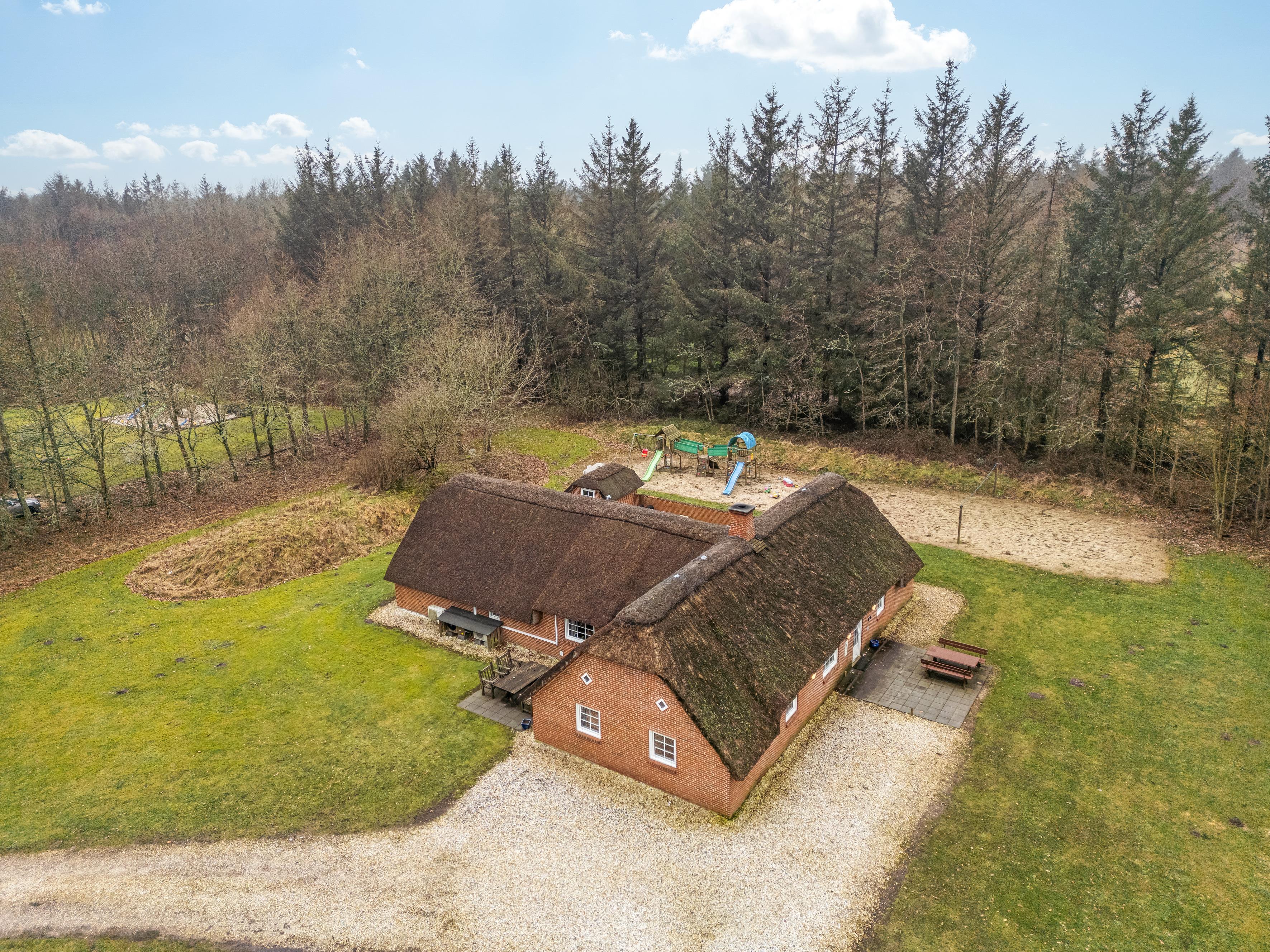 Udendørs vil du blive forkælet med en 50 kvadratmeter stor lukket terrasse, perfekt til solrige dage og hyggelige aftener. Børnene kan lege i sandkassen, gynge, legetårnet og rutsjebanen, mens de sportsinteresserede kan nyde faciliteter som beachvolley og fodboldmål. Beliggende kun 2500 meter fra Vesterhavet, er du tæt på stranden og kan nyde den friske havluft og spektakulære solnedgange. Dette sommerhus er det ultimative sted for en mindeværdig ferieoplevelse.