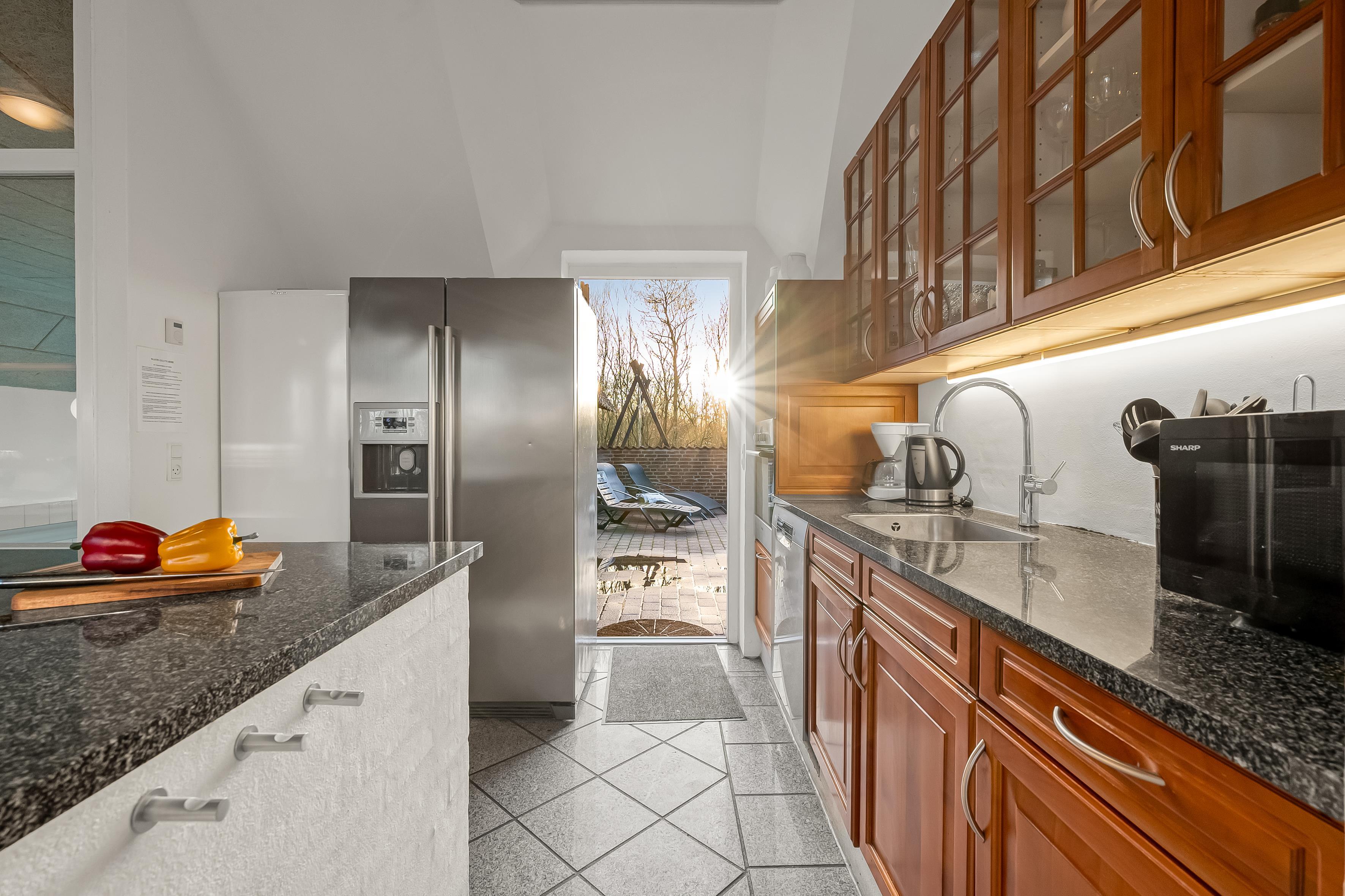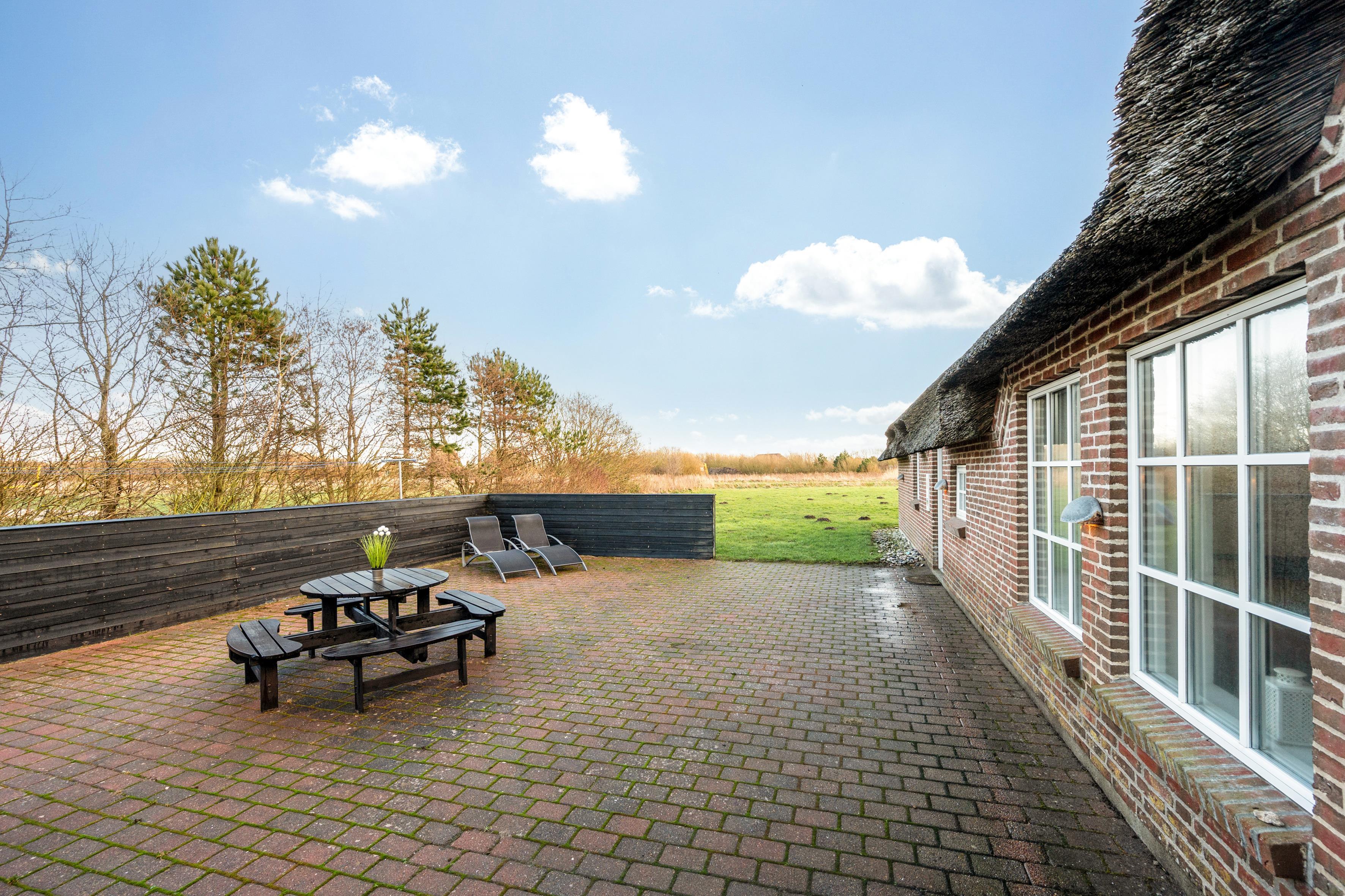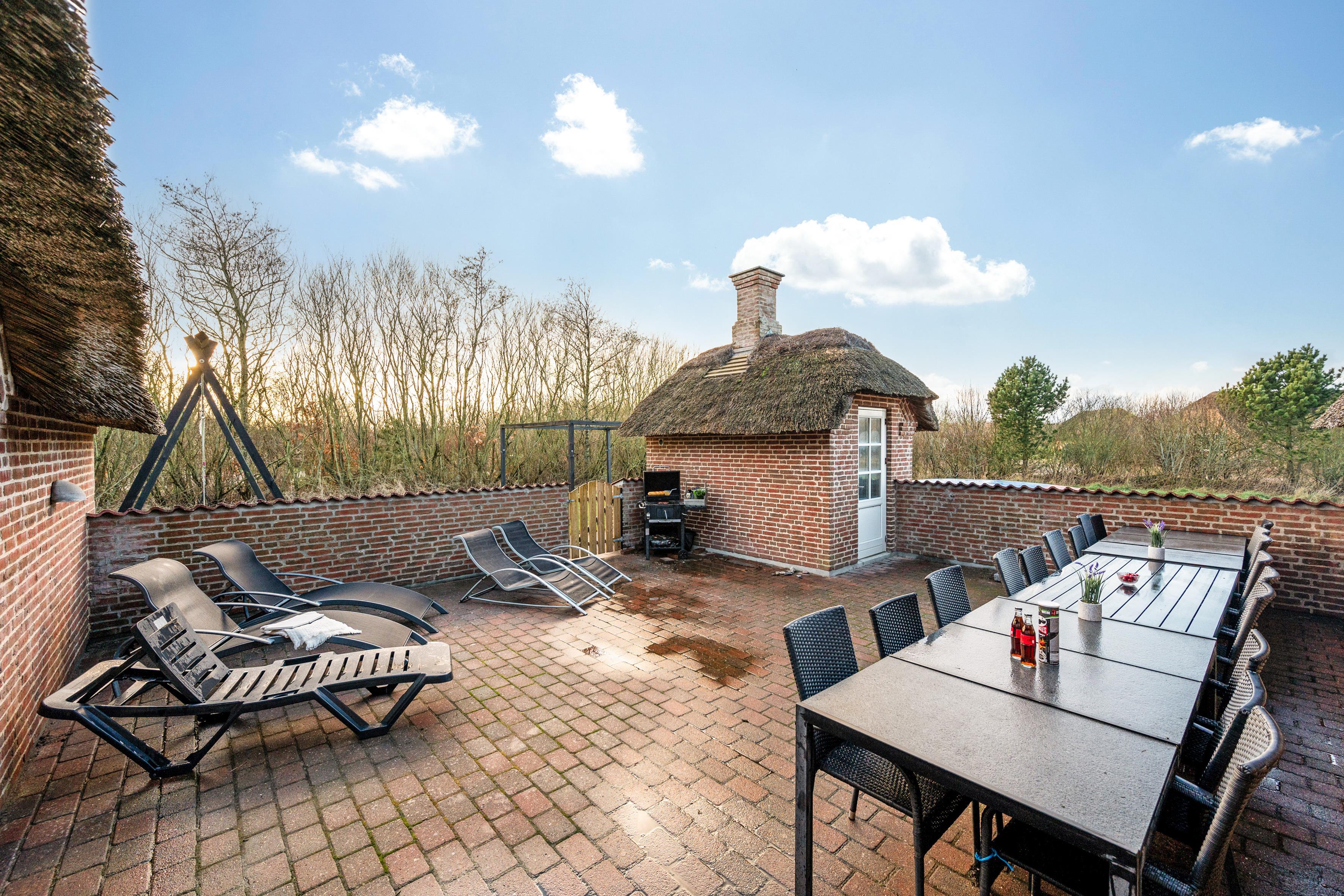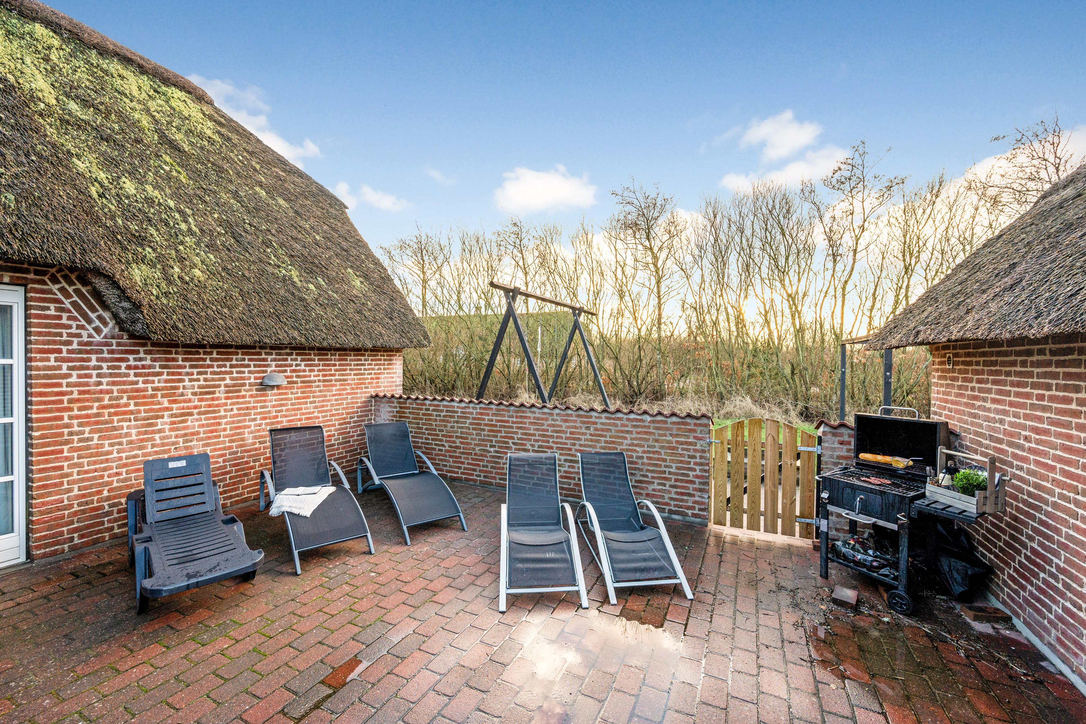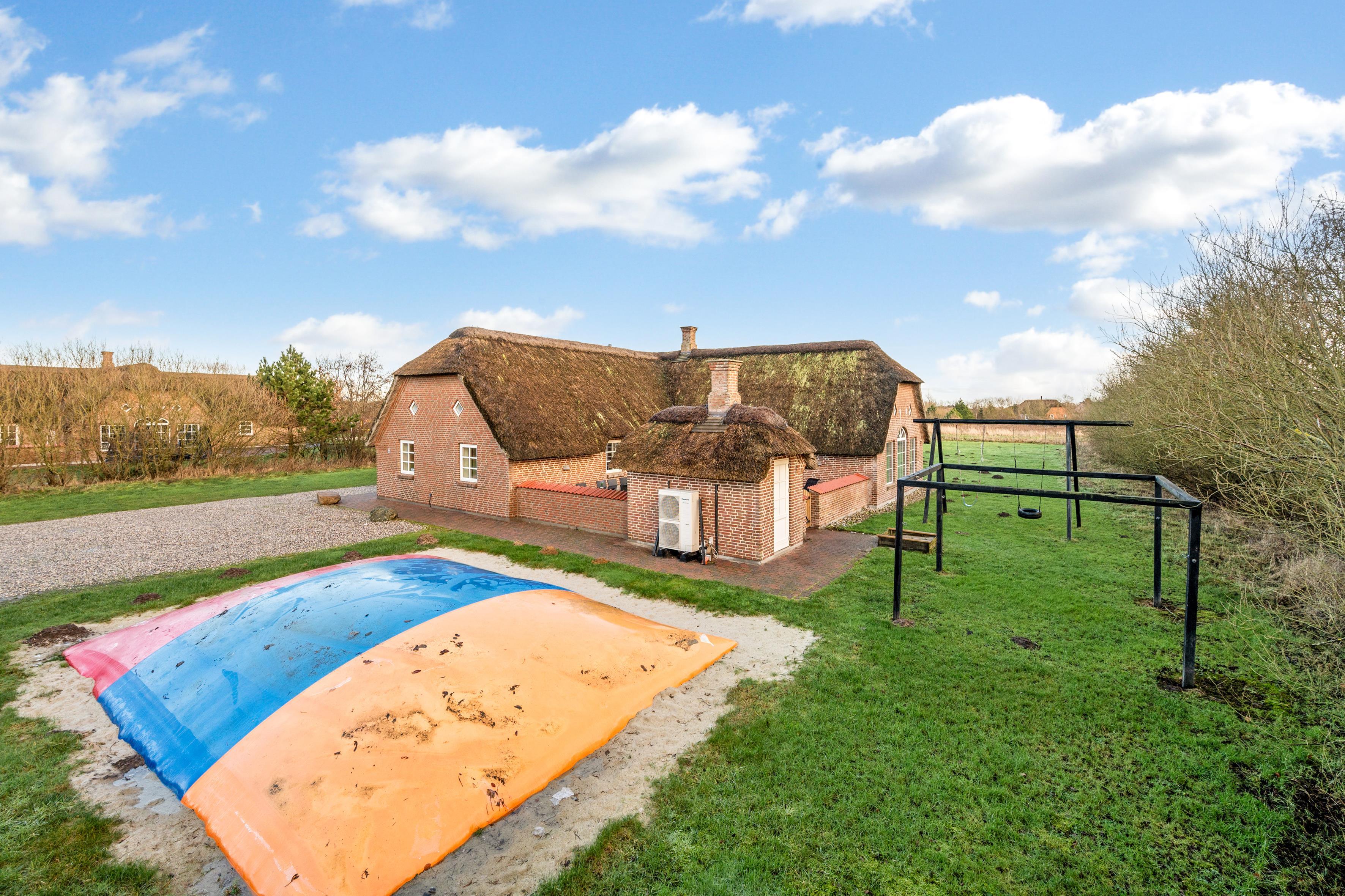 Udenfor finder du en lukket terrasse, hvor du kan nyde solens stråler i fred og ro. Terrassen er udstyret med grill, så du kan forberede lækre grillretter til dine gæster. I har desuden jeres helt egen hoppepude hvor børnene kan more sig.