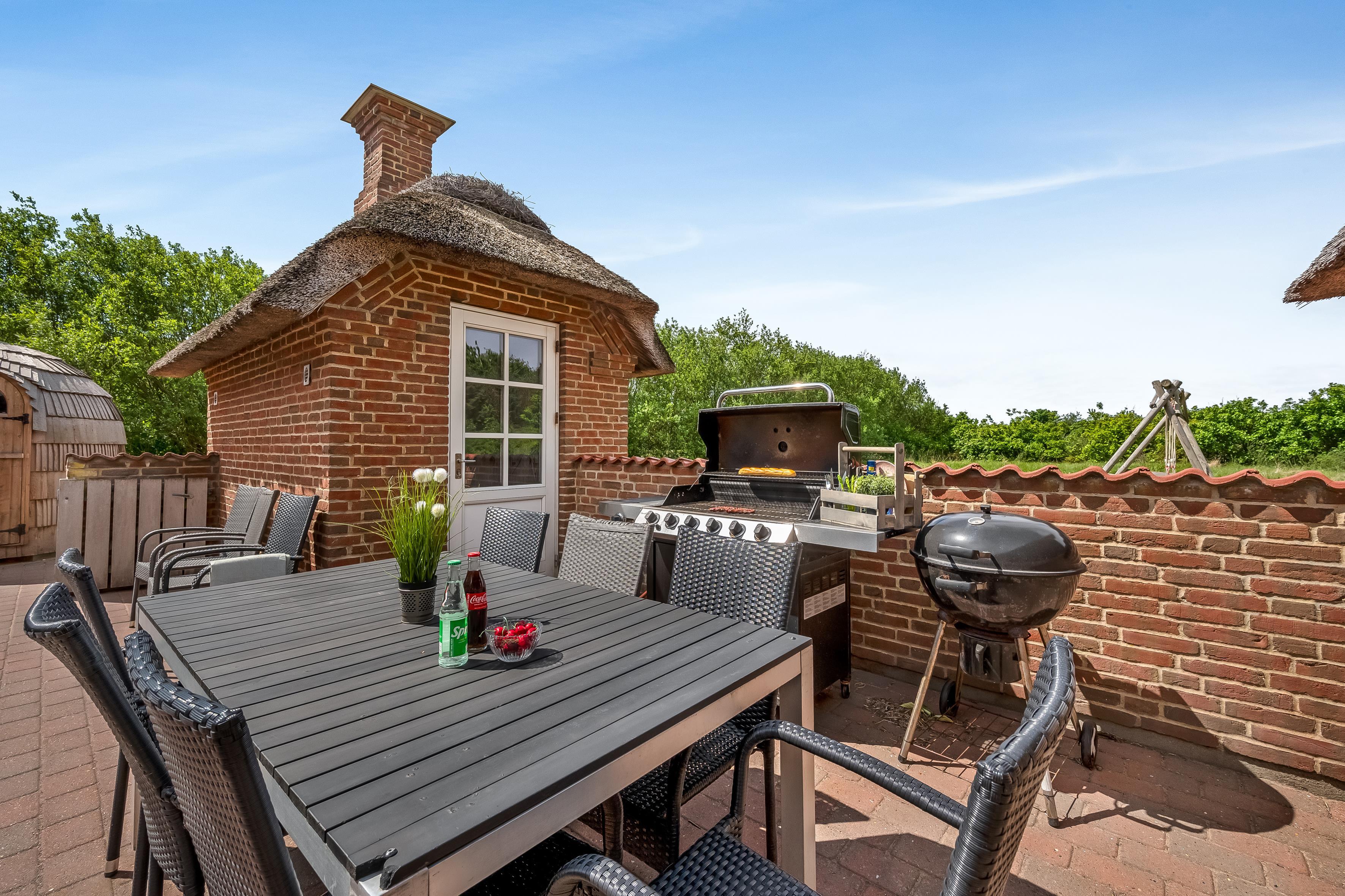 Udenfor finder du en lukket terrasse, der er perfekt til at nyde de lange sommeraftener. Terrassen er udstyret med grill, så du kan tilberede lækre måltider under åben himmel. Børnene vil elske de udendørs faciliteter, herunder gynger og sandkasse.