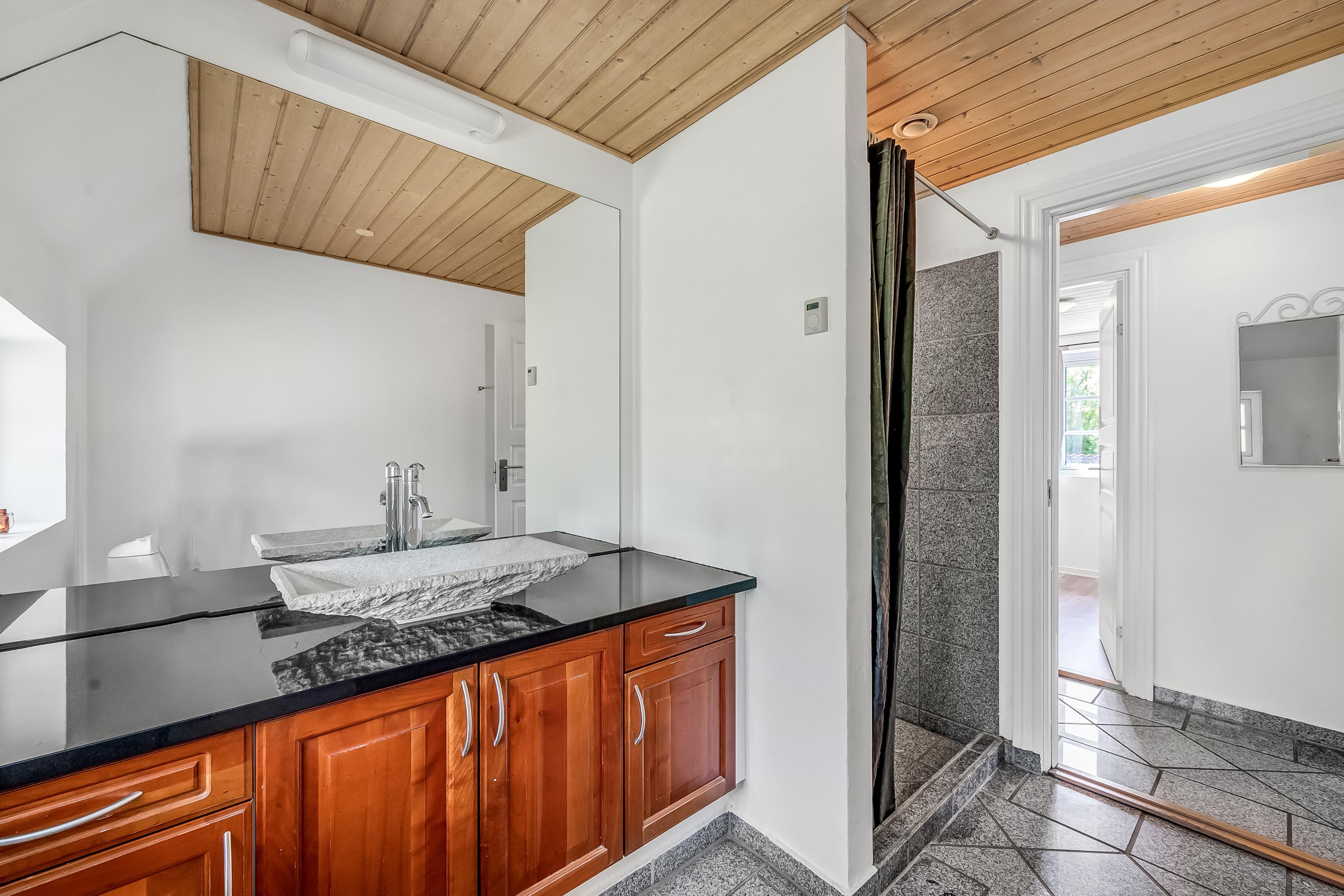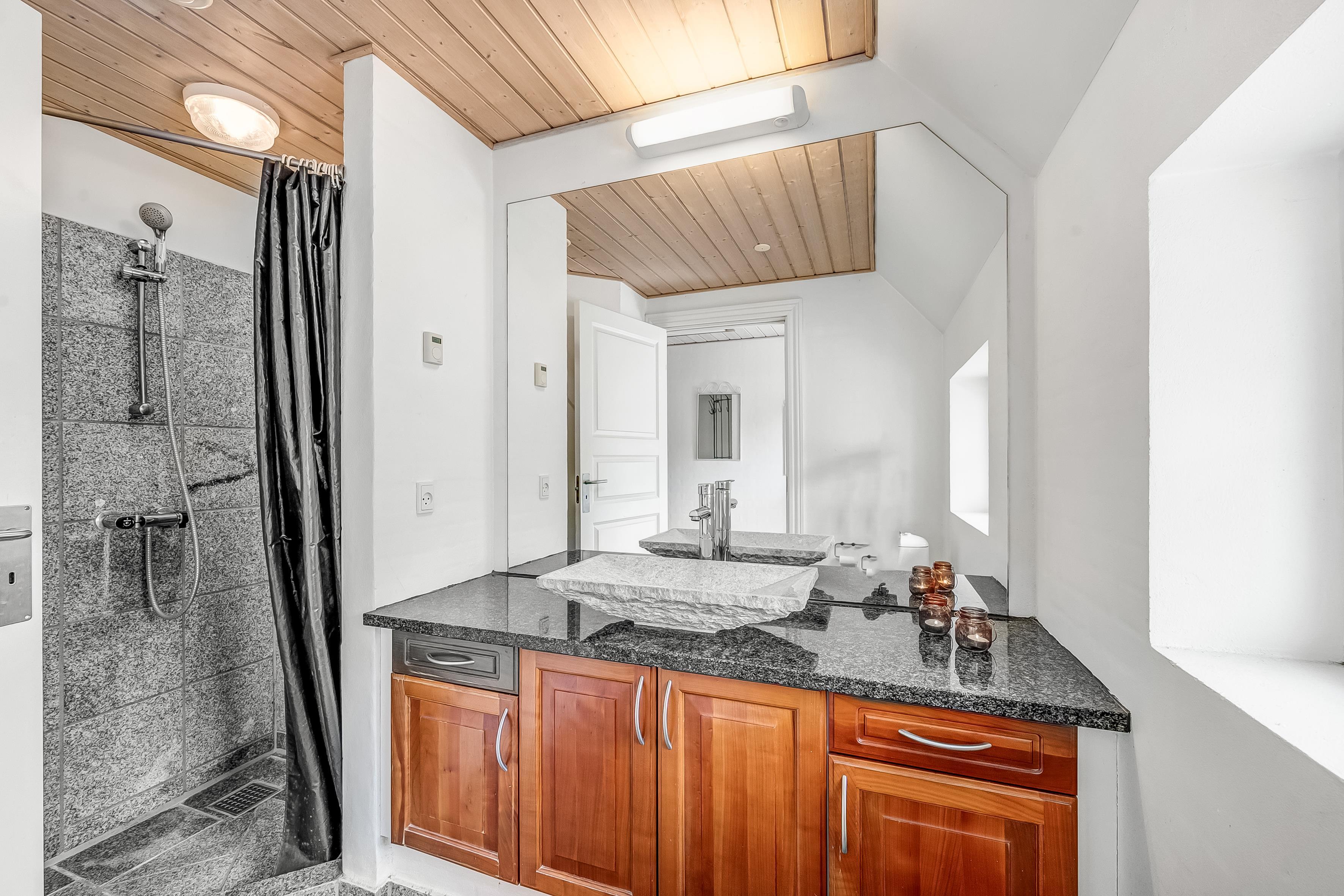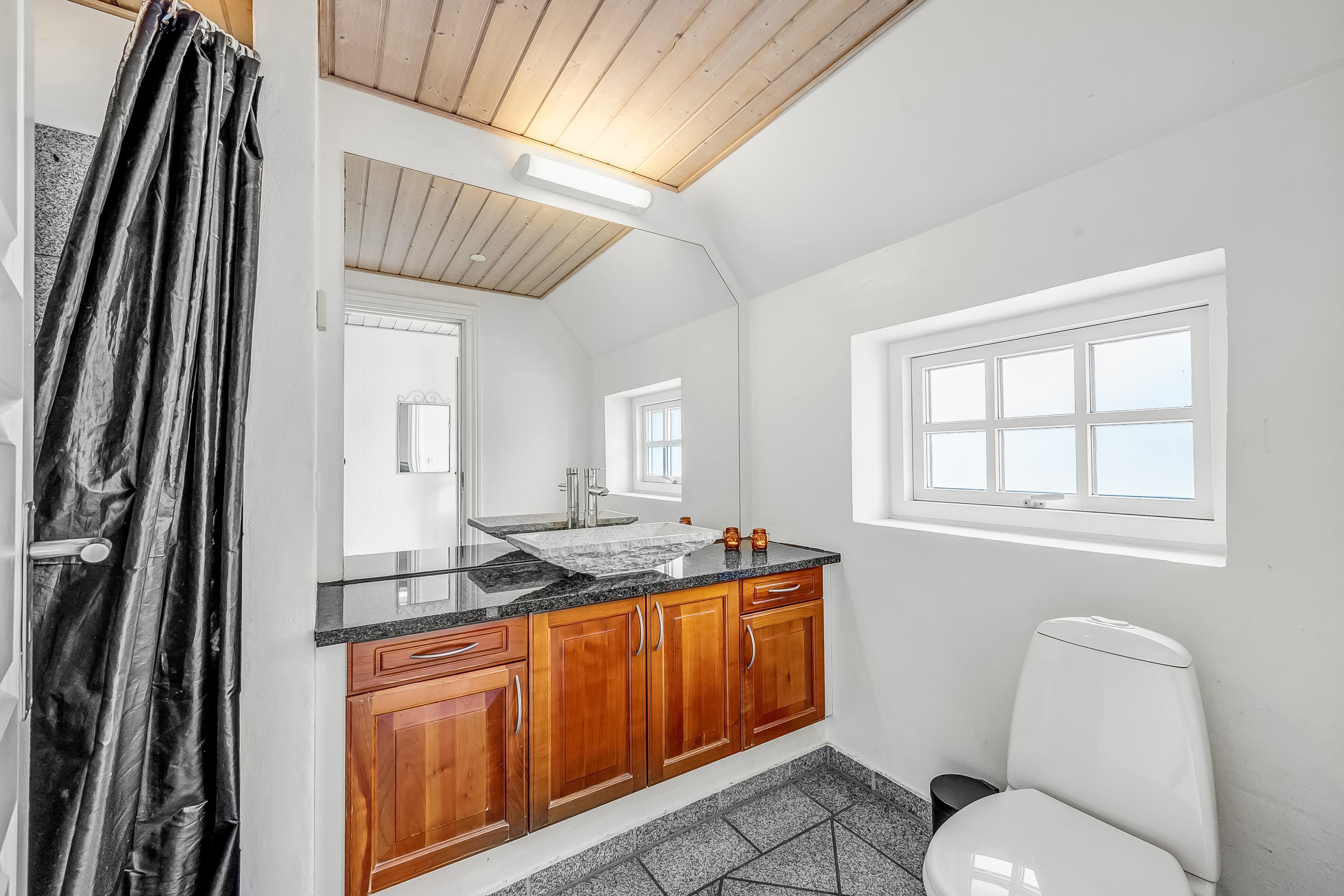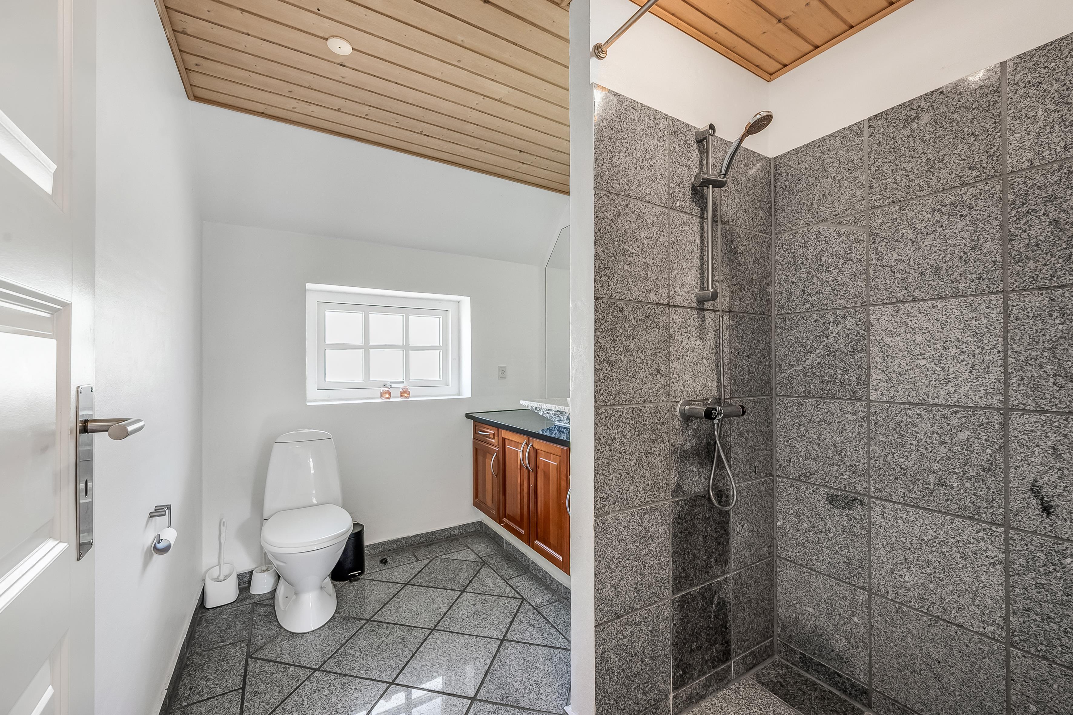 I feriehuset finder du tre moderne badeværelser, hver med toilet, bruser og gulvvarme, så du kan nyde varme og komfort, selv på de koldeste dage.