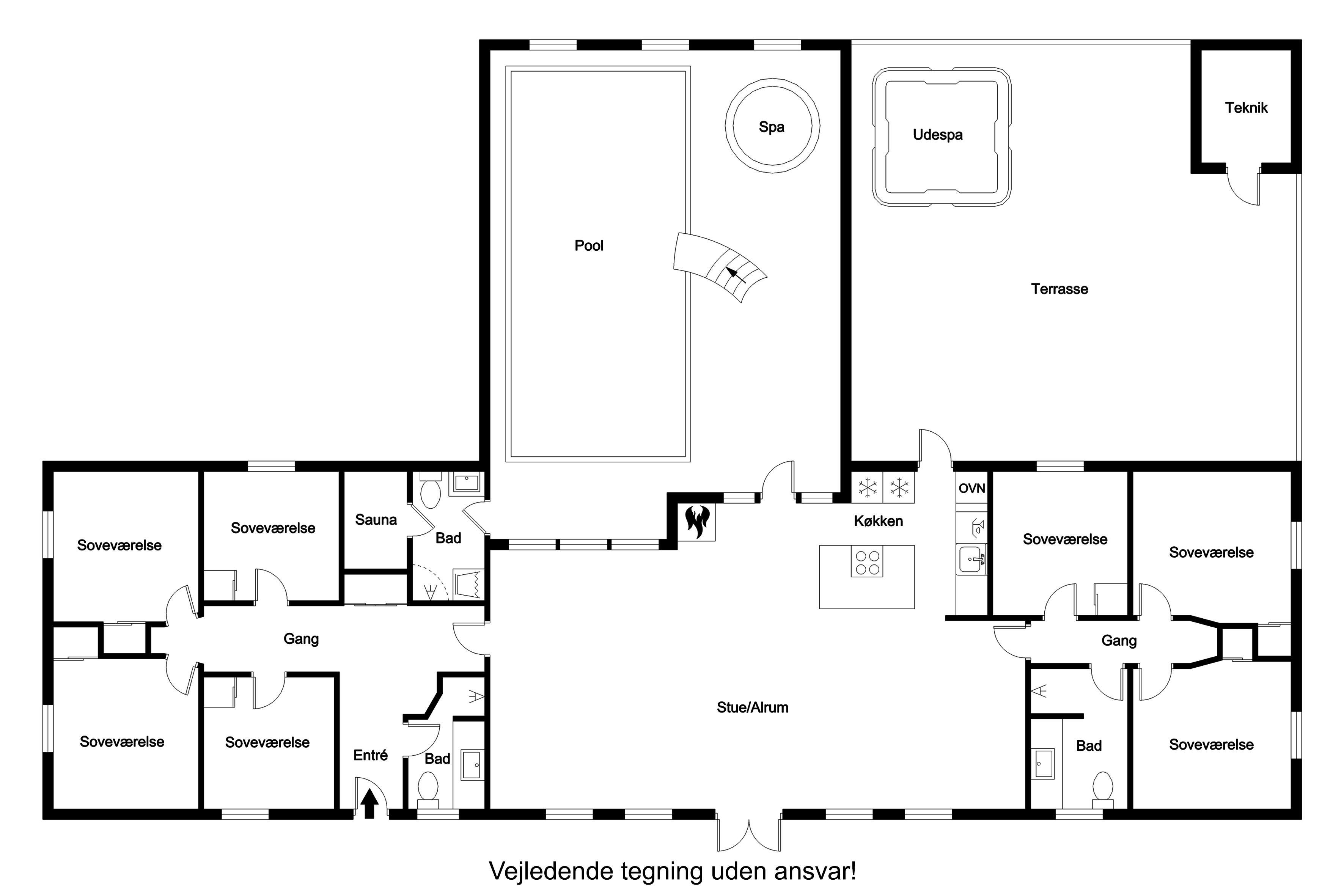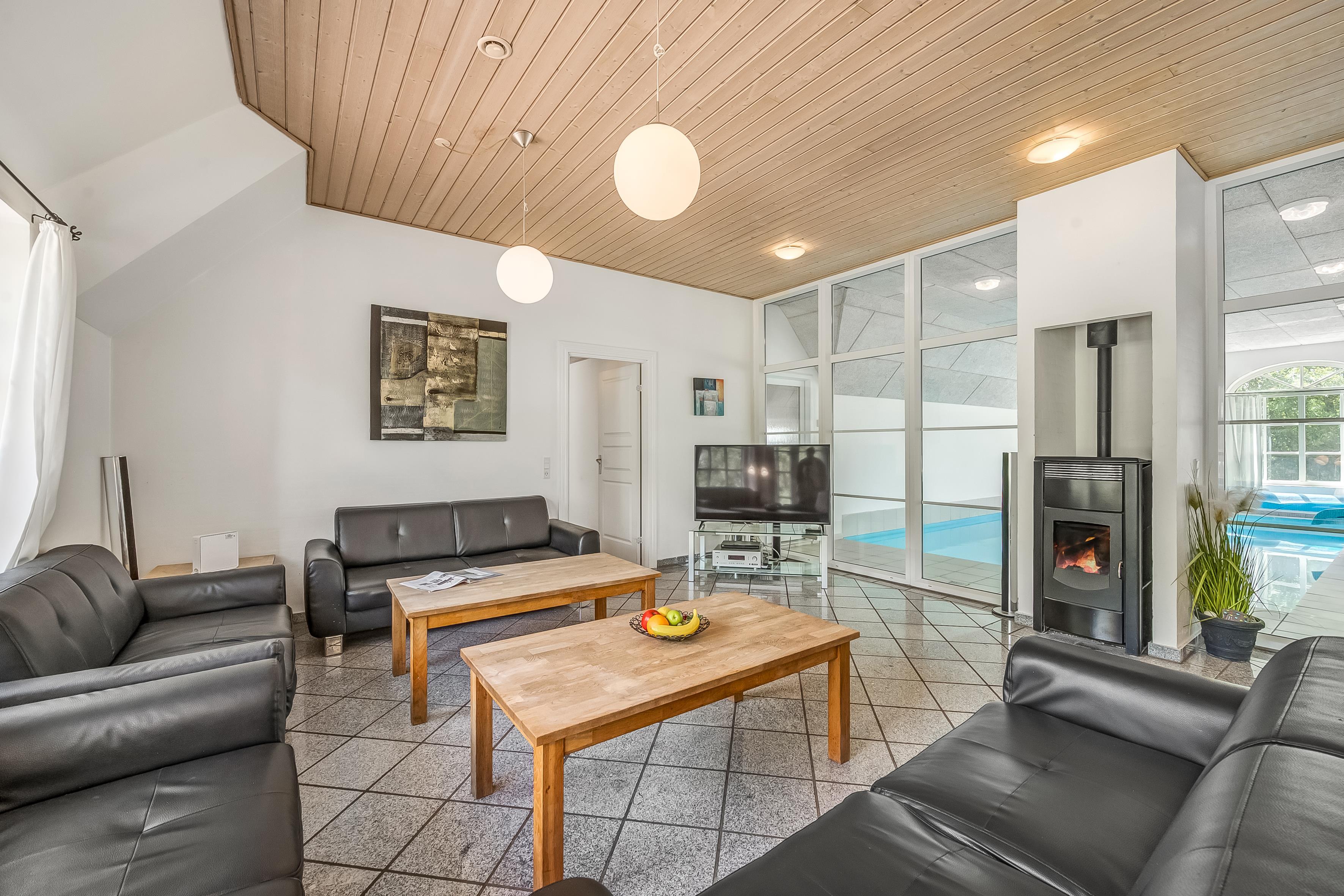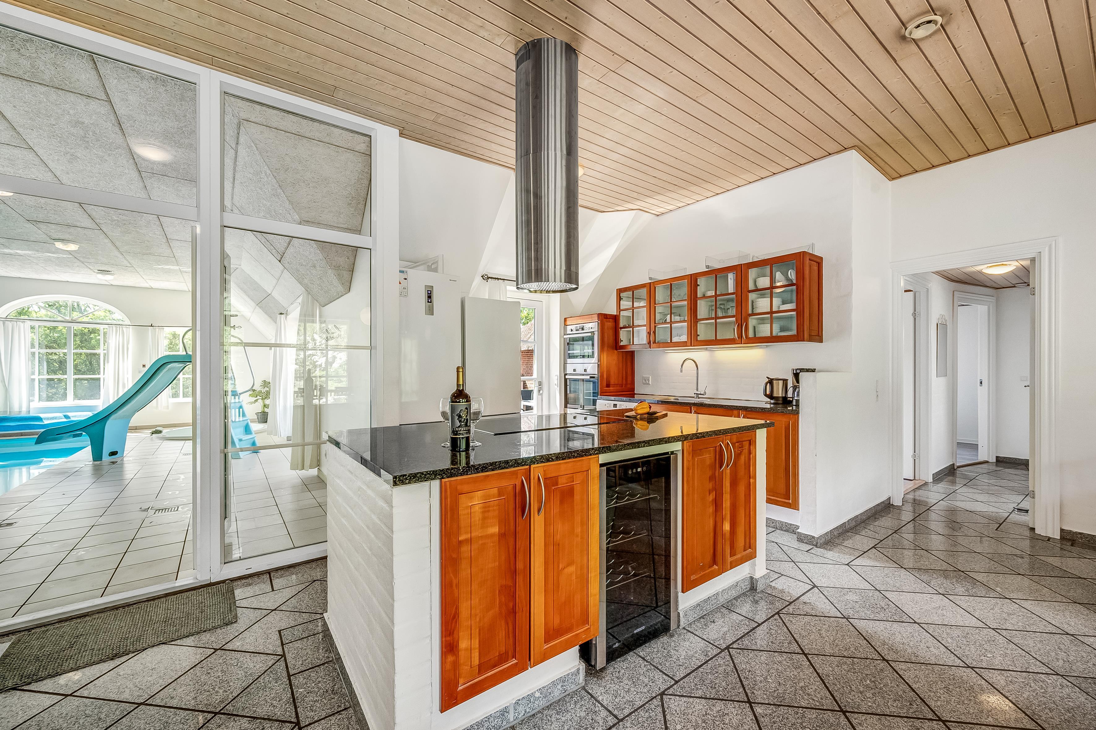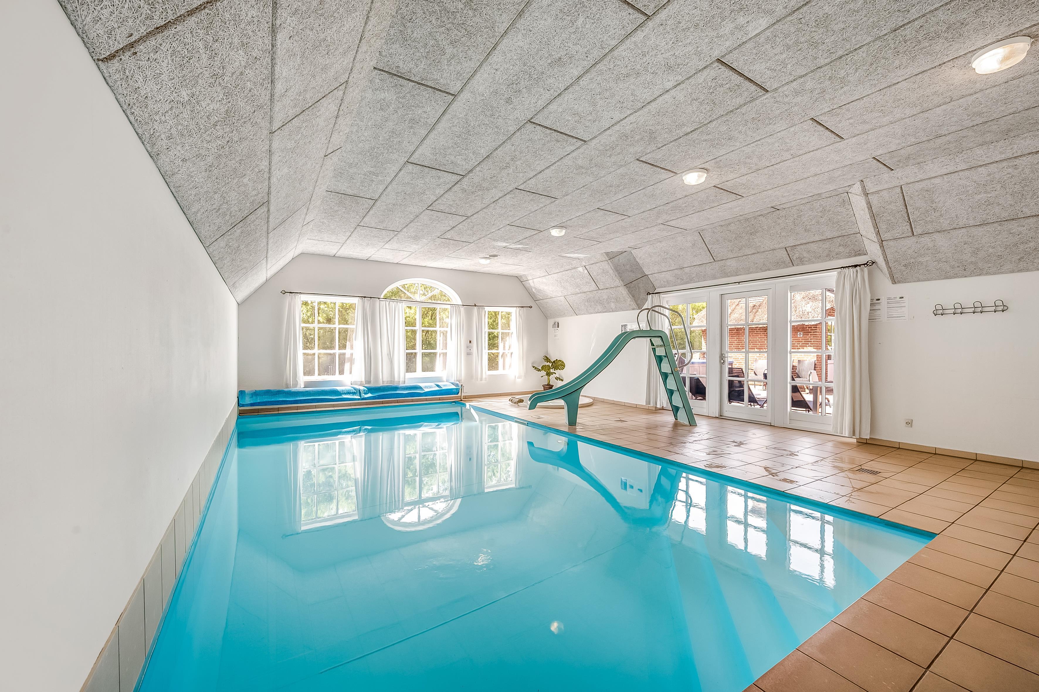 Husets rummelige poolrum er med en 32 kvadratmeter stor swimmingpool med tilhørende vandrutsjebane, hvilket gør det til et hit blandt børnene.
