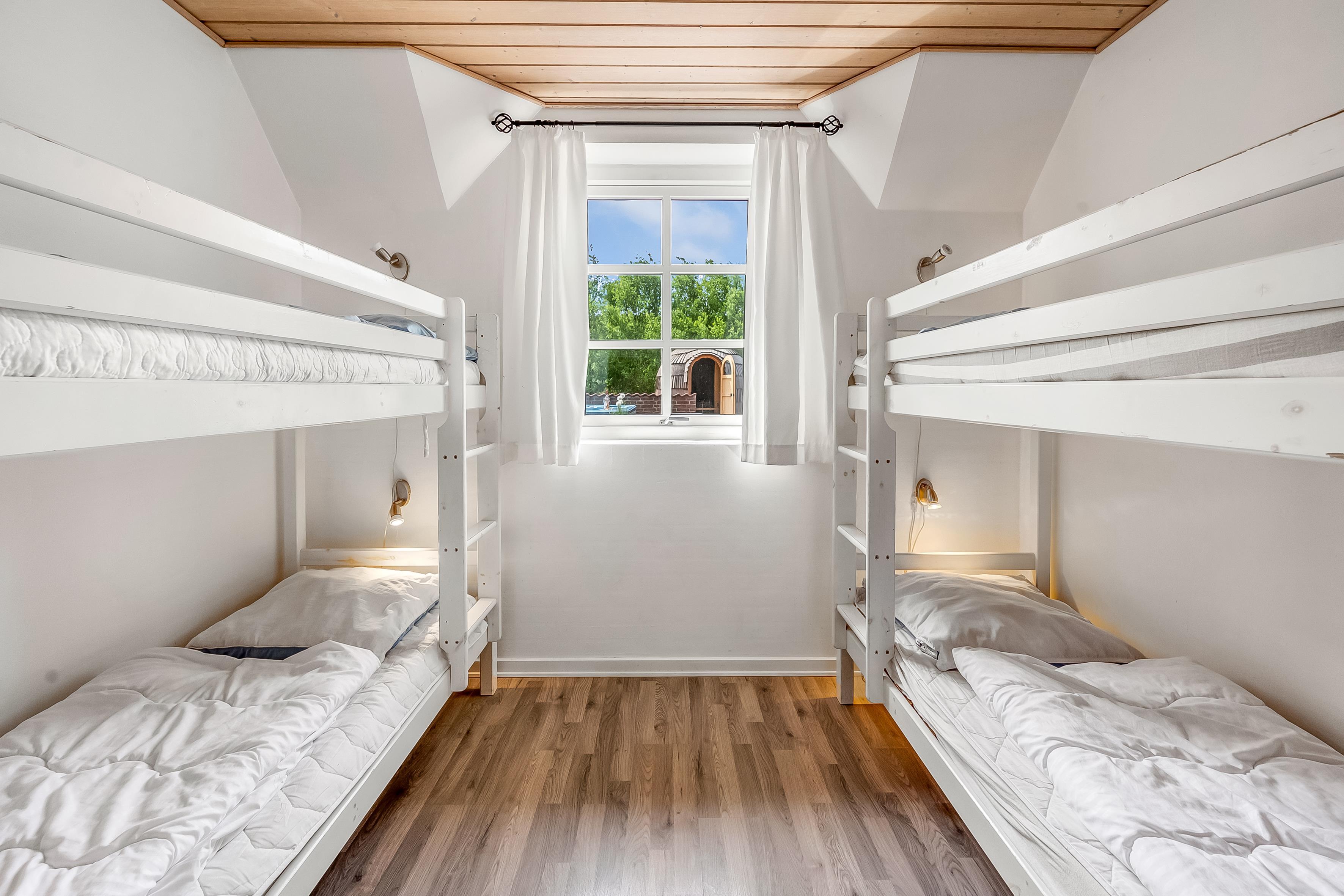Huset har et generøst boligareal på 250 kvadratmeter, fordelt på syv velindrettede soveværelser. Fire soveværelser er med dobbeltsenge, to med hver fire køjepladser og et med to enkeltsenge, hvilket sikrer, at alle har en behagelig soveoplevelse. Der er mulighed for at sove i alt 18 personer, hvilket gør det perfekt til familiesammenkomster eller vennegrupper.