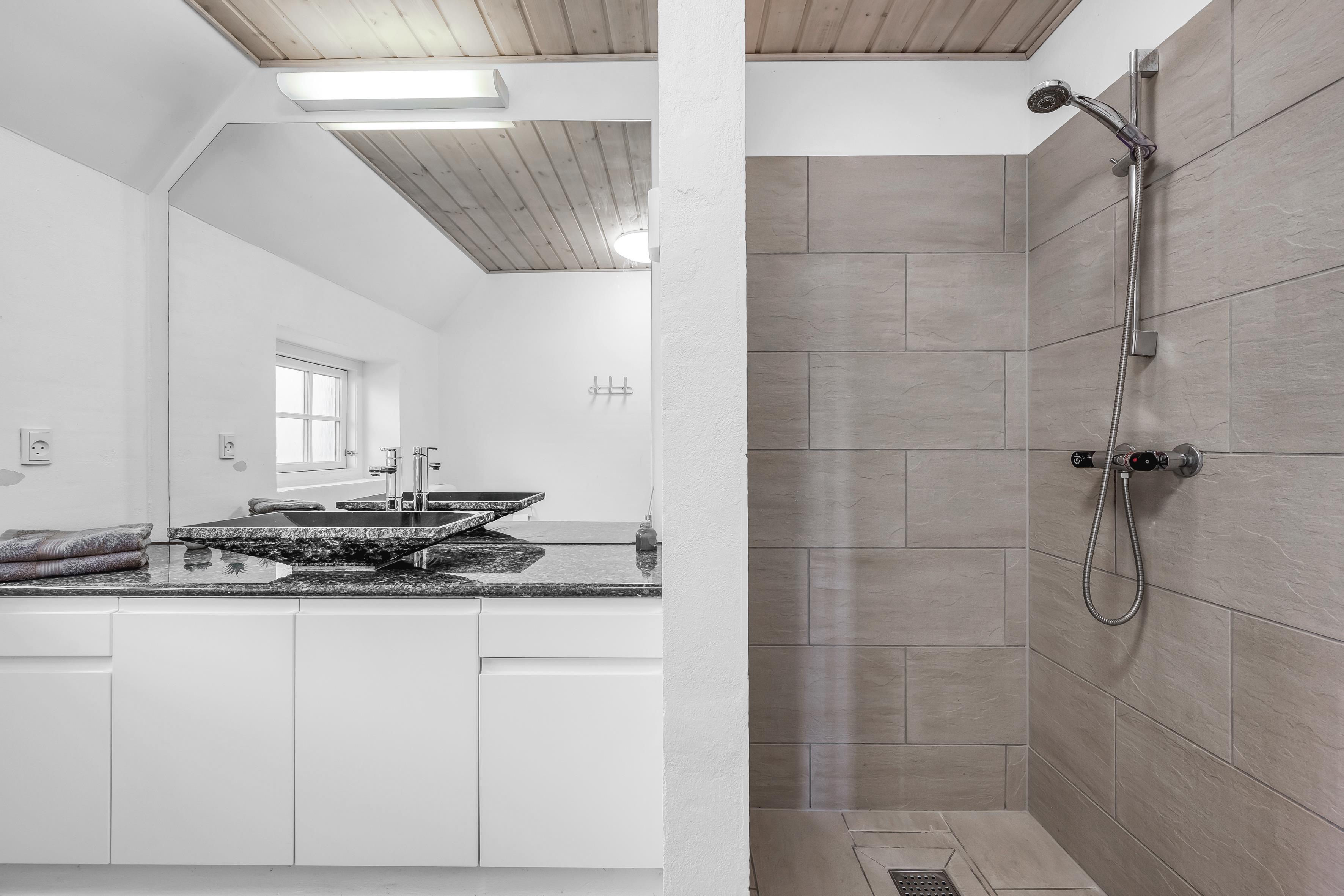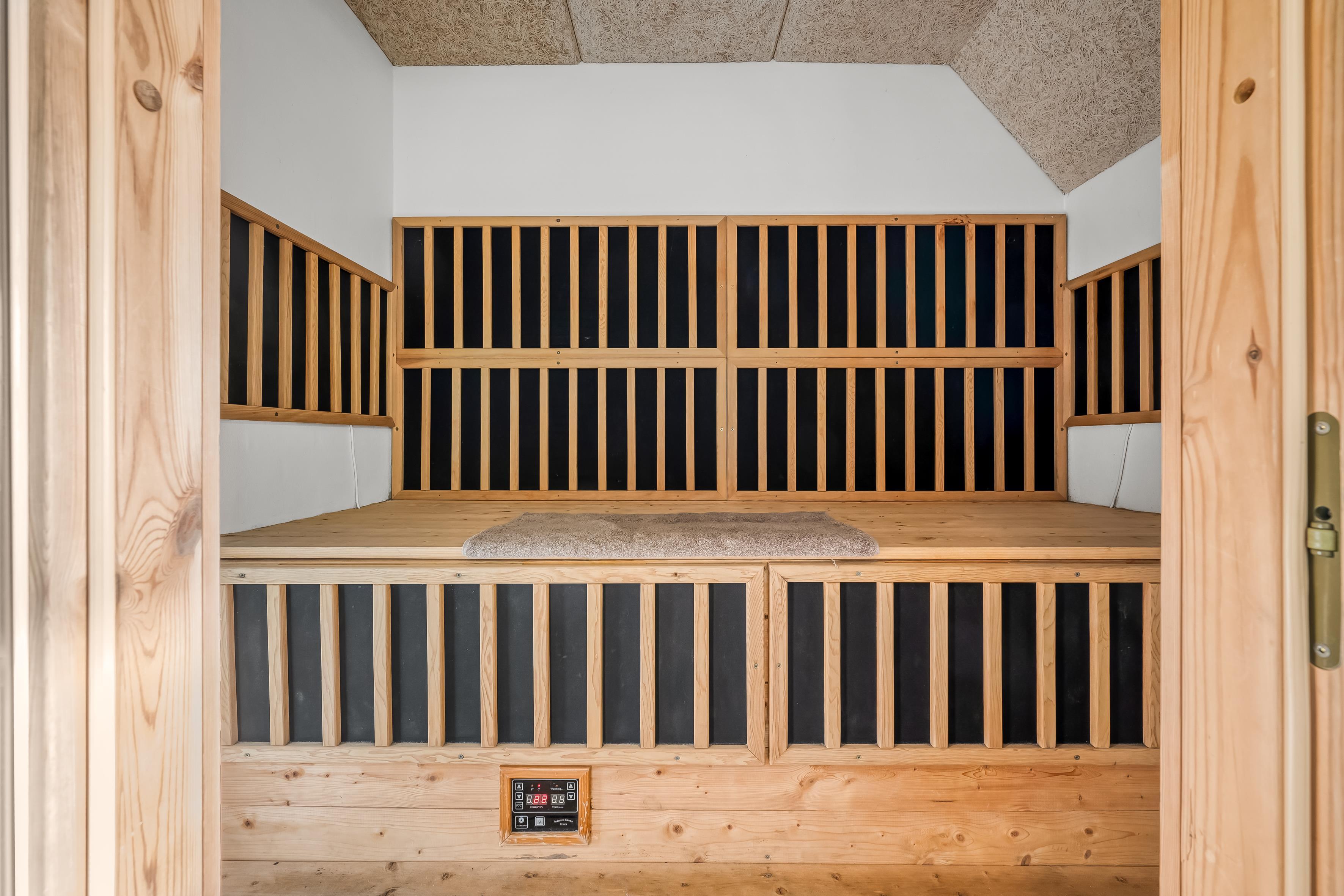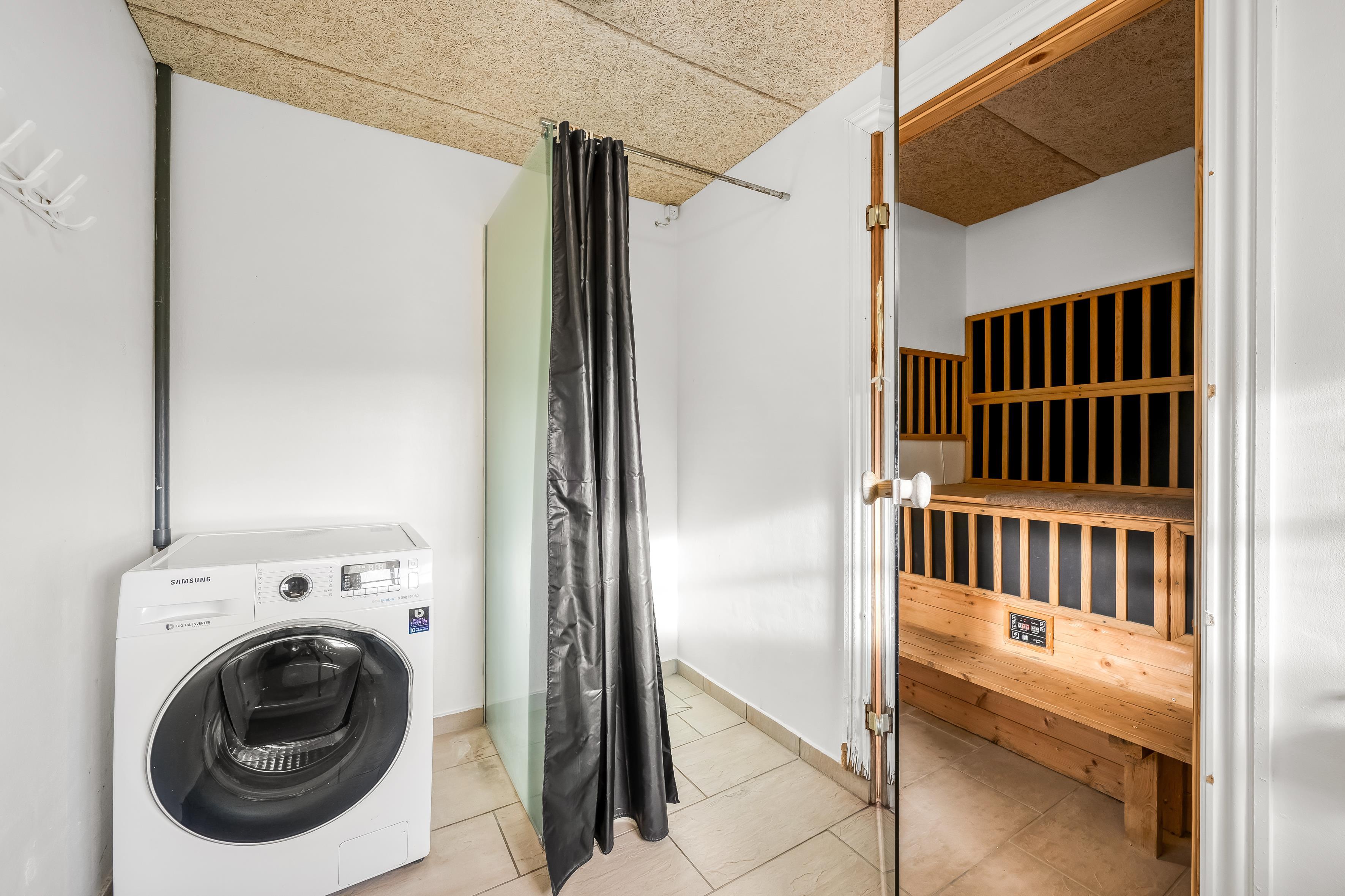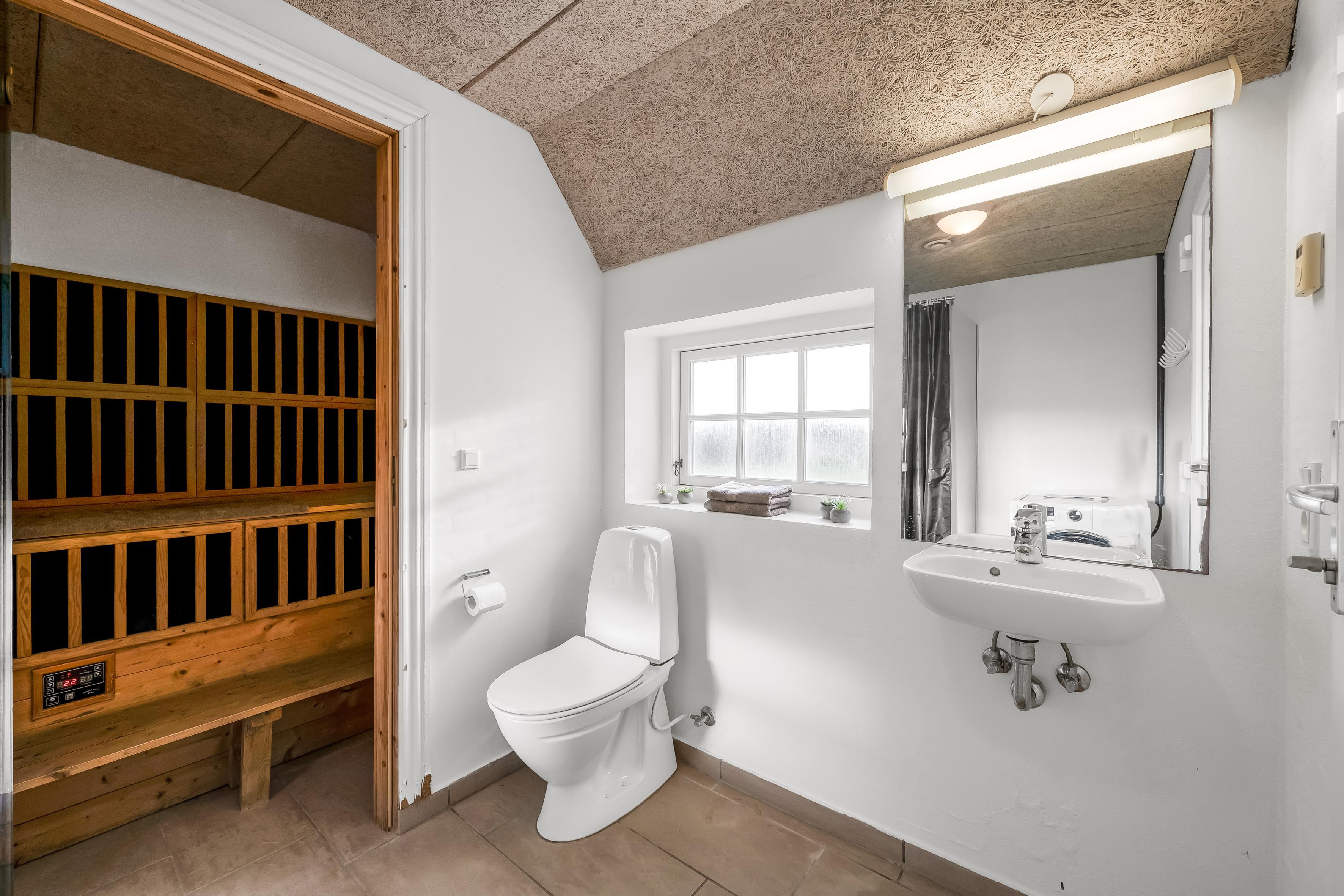 Huset har tre moderne badeværelser, alle udstyret med bruser, håndvask og toilet. Gulvvarme og varme på badeværelserne sikrer, at du altid føler dig varm og komfortabel, uanset årstiden. For ekstra afslapning kan du benytte det indendørs spa, der har plads til op til syv personer, eller den infrarøde sauna, som er perfekt til at slappe af efter en lang dag med aktiviteter.