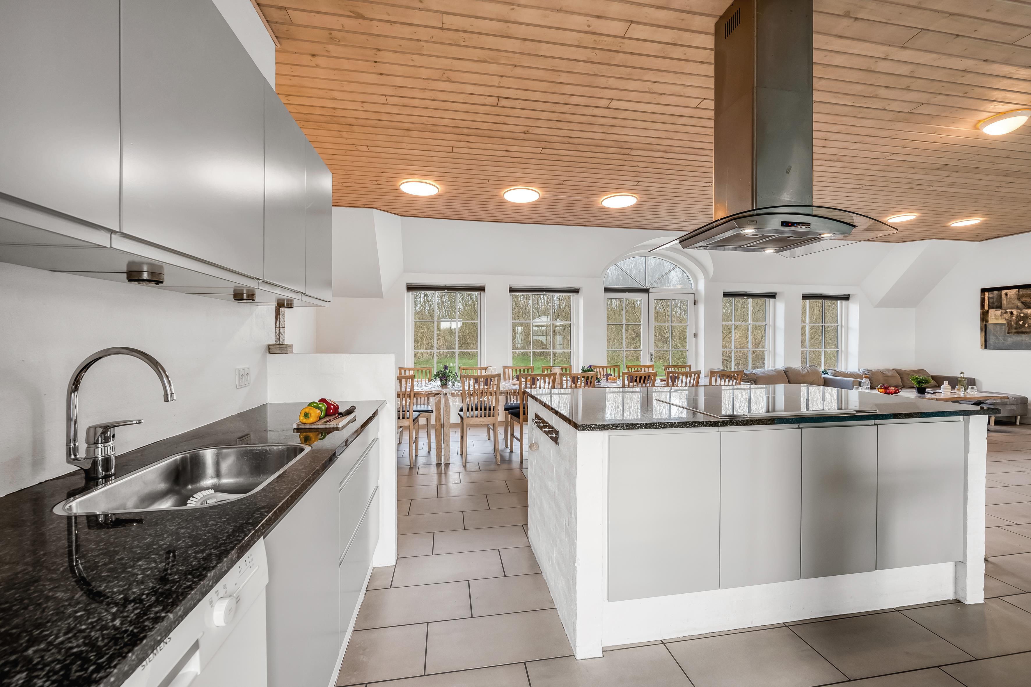 Køkkenet er fuldt udstyret med moderne apparater, herunder en mikrobølgeovn, ovn, keramisk komfur, opvaskemaskine, fryser og vinkøleskab. Du vil aldrig mangle noget, når det kommer til madlavning og opbevaring. Der er også trådløst internet, danske og tyske ptv-rogrammer, samt Chromecast og to fjernsyn, så du kan holde dig underholdt i fritiden.