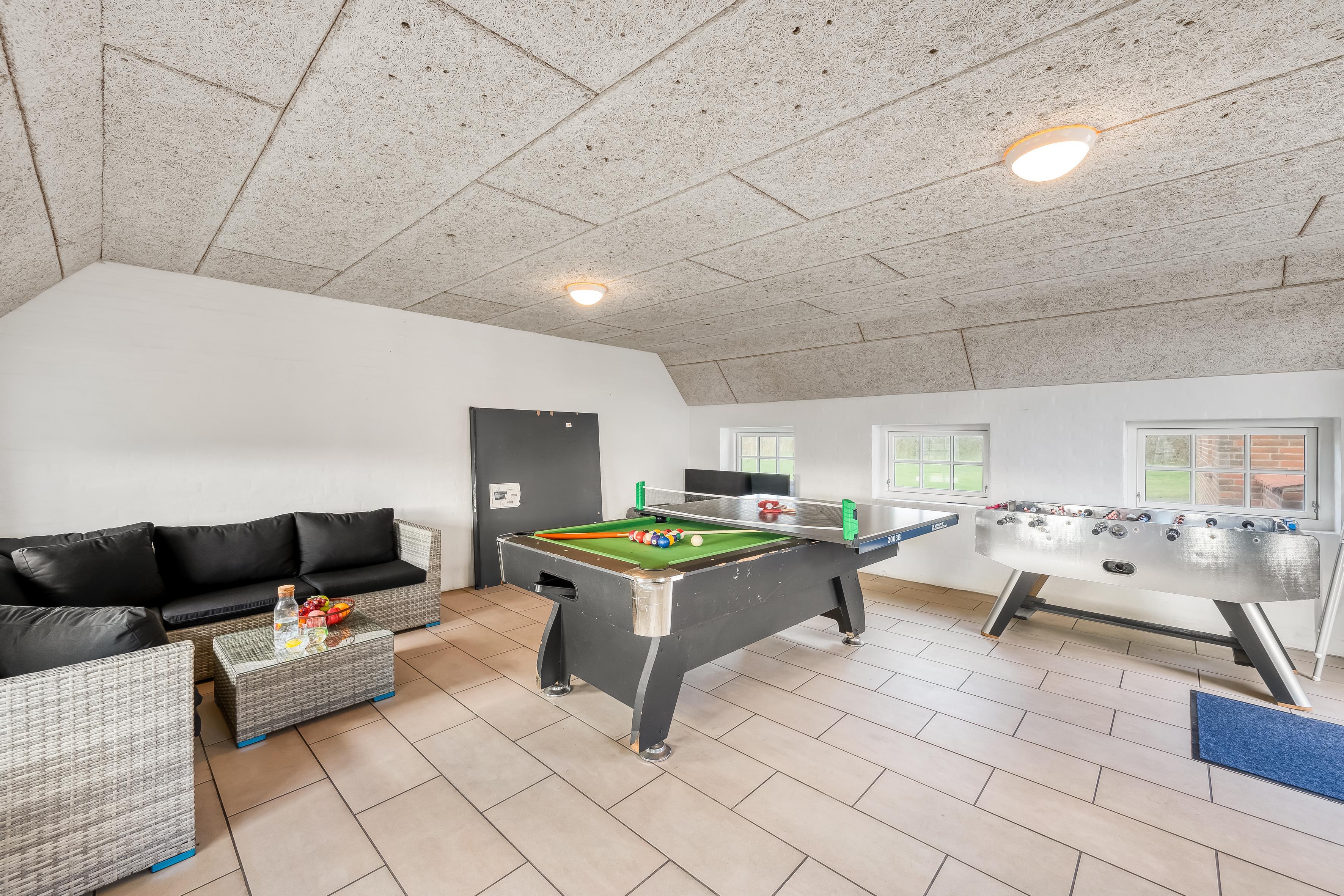 For dem, der elsker at underholde, er der et aktivitetsrum, hvor du kan spille bordtennis eller bordfodbold, samt et poolbord til sjove stunder med venner og familie. Huset har også en swimmingpool med vandrutsjebane, hvilket gør det til et hit blandt børnene. Udenfor kan du nyde den store terrasse, der er ideel til grillfester og afslapning i solen, mens børnene leger i sandkassen eller på gyngerne.