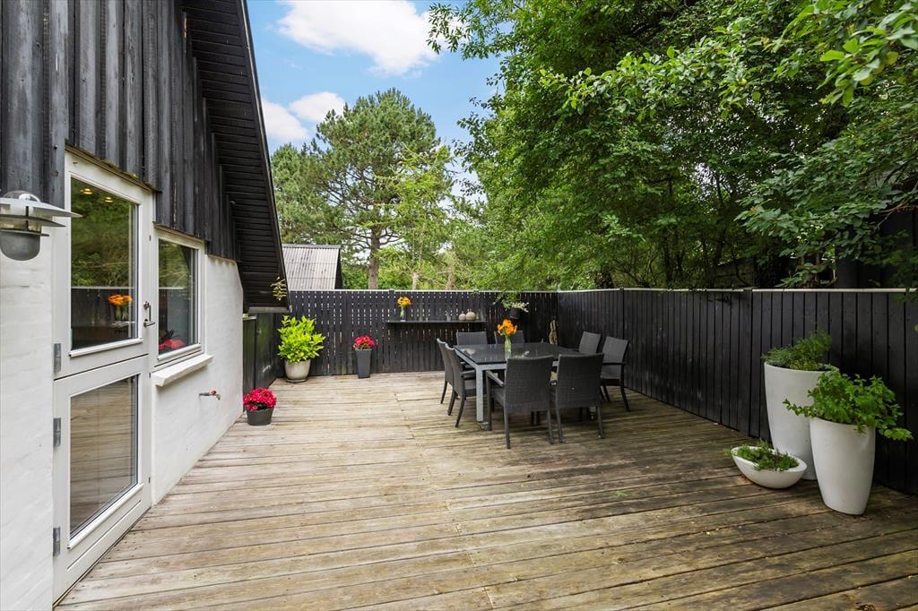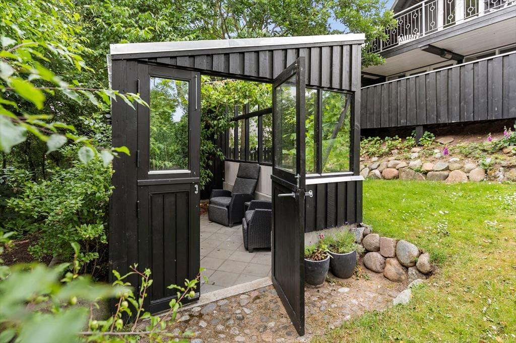 Haven omkring huset er et fredfyldt fristed for både to- og firbenede feriegæster. Den velplejede græsplæne indbyder til leg og afslapning, og i den rolige baghave står et shelter klar til dig, der drømmer om en nat i det fri – måske under stjernerne med et tæppe og lyden af vinden i træerne. Terrassen strækker sig delvist overdækket langs huset, så du kan nyde livet ude i det fri, uanset om solen skinner, eller regnen trommer blidt mod taget. Her er det oplagt at samles til grillmiddage, et glas vin i aftensolen eller bare at læse en god bog i skyggen. Hunden vil elske at have god plads at boltre sig på, og børnene vil med garanti få mange gode timer i haven. Alt i alt får du her et udeliv, der summer af feriestemning og ro.