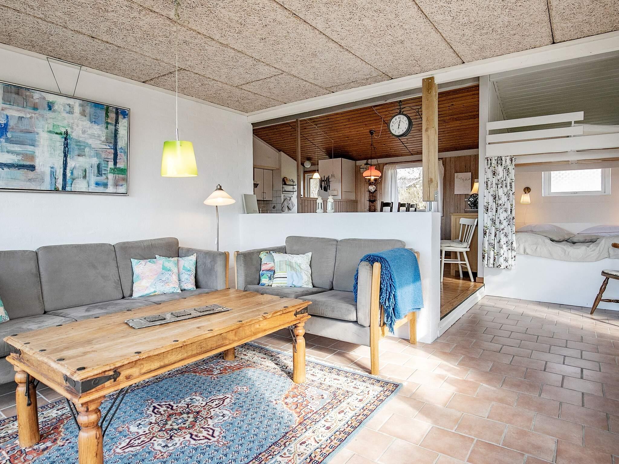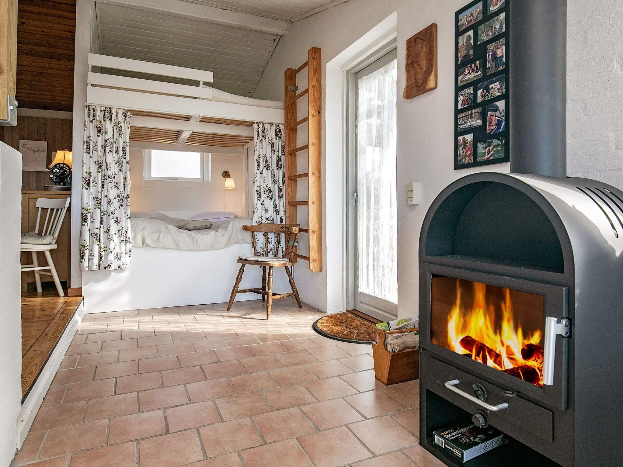 Sommerhuset er praktisk indrettet med kombineret stue/køkken. Stuen har komfortable møbler, gratis internet og et fladskærms-tv med Chromecast, hvor du kan streame dine egne tv-tjenester. Der er brændeovn til kølige sommeraftener eller regnfulde og blæsende efterårsaftener.