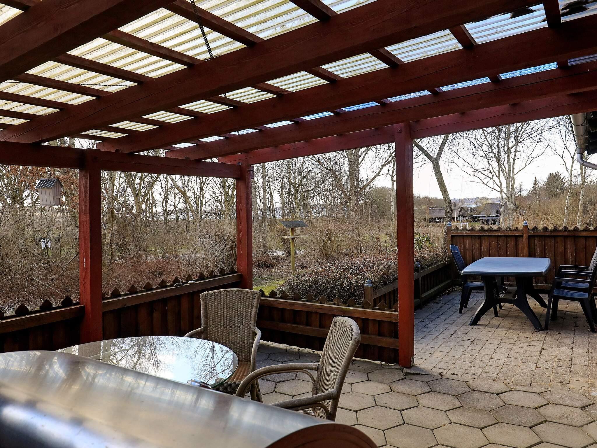 Huset byder på flere åbne terrasser med havemøbler og gasgrill, hvor I kan nyde aftensmaden, mens solen går ned over fjorden. Der er også en lukket/overdækket terrasse, hvor man kan søge læ, hvis vejret ikke er til de øvrige terrasser.