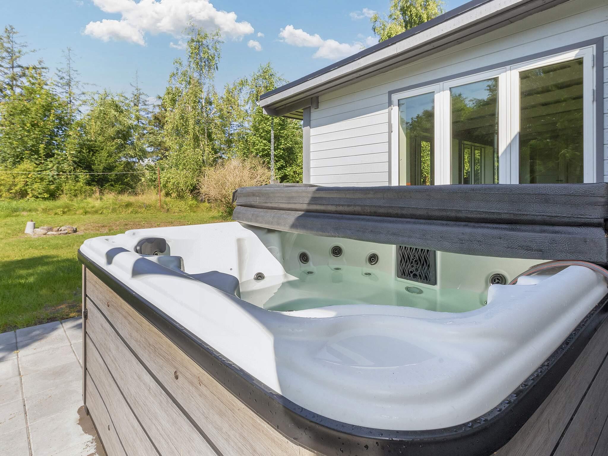 Hyggeligt sommerhus nær kysten med spa, pejs, aktivitetsmuligheder og udendørs bruser.