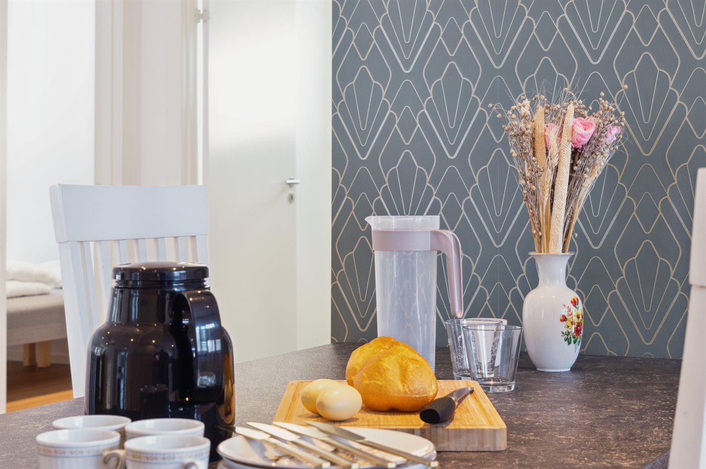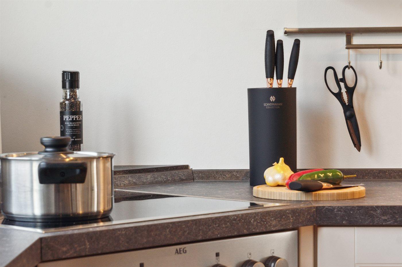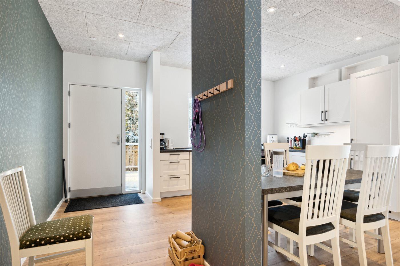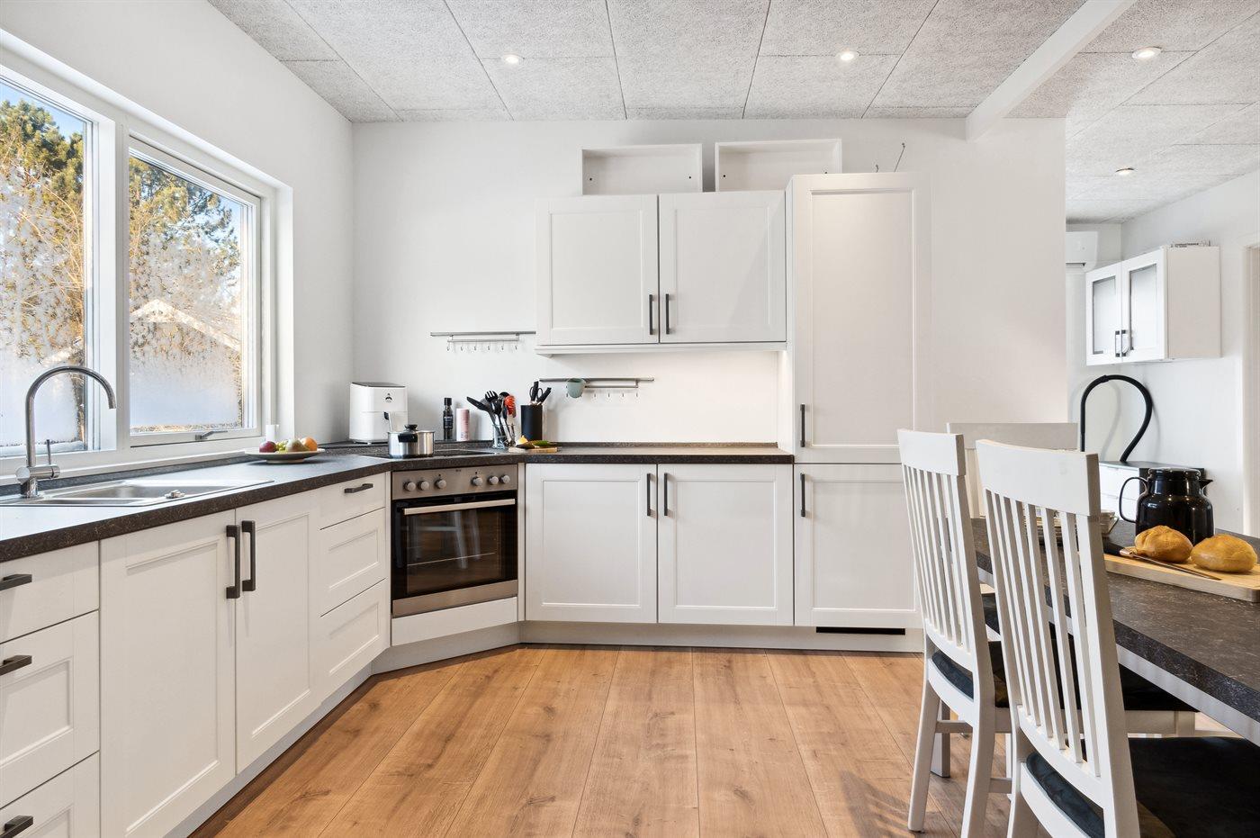 Køkkenet er udstyret med 1 køleskab. Der er 4 keramiske kogeplader, varmluftovn samt opvaskemaskine.