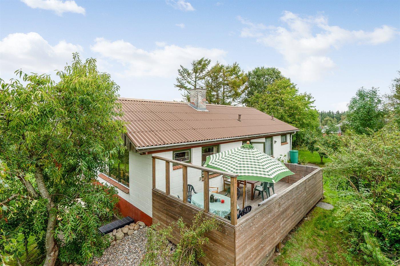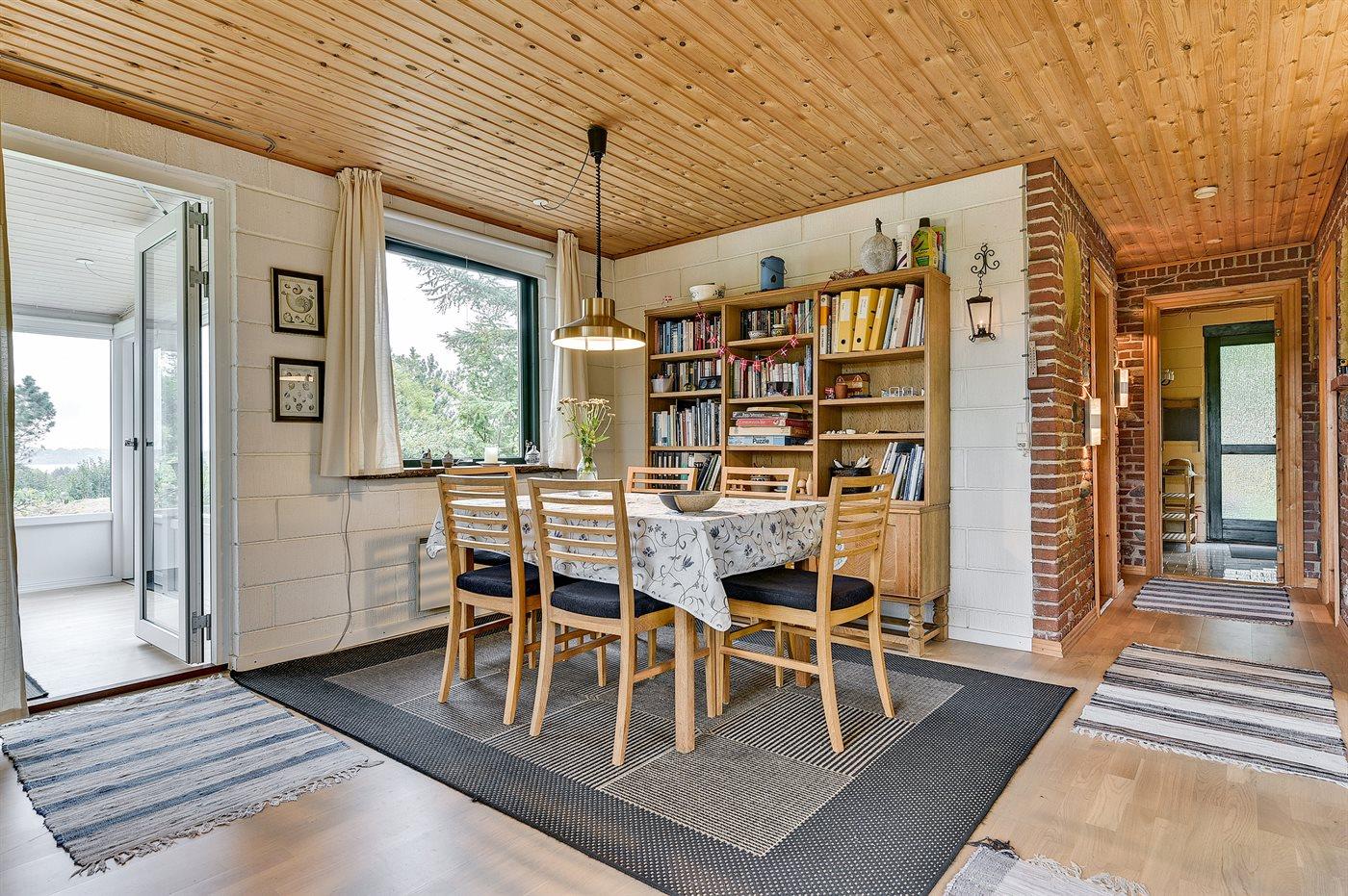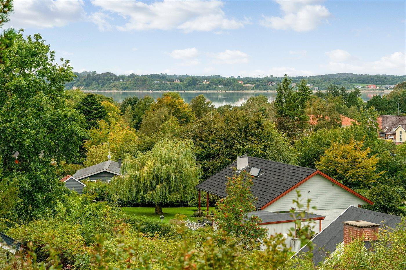 Dette sommerhus ligger på en stor beplantet grund med flere gode terrasser - i Hvalpsund ved Limfjorden. Fra husets udestue er der kik til fjorden. Huset ligger ikke langt fra en dejlig stor og fælles legeplads.
