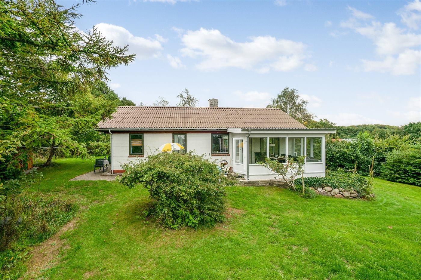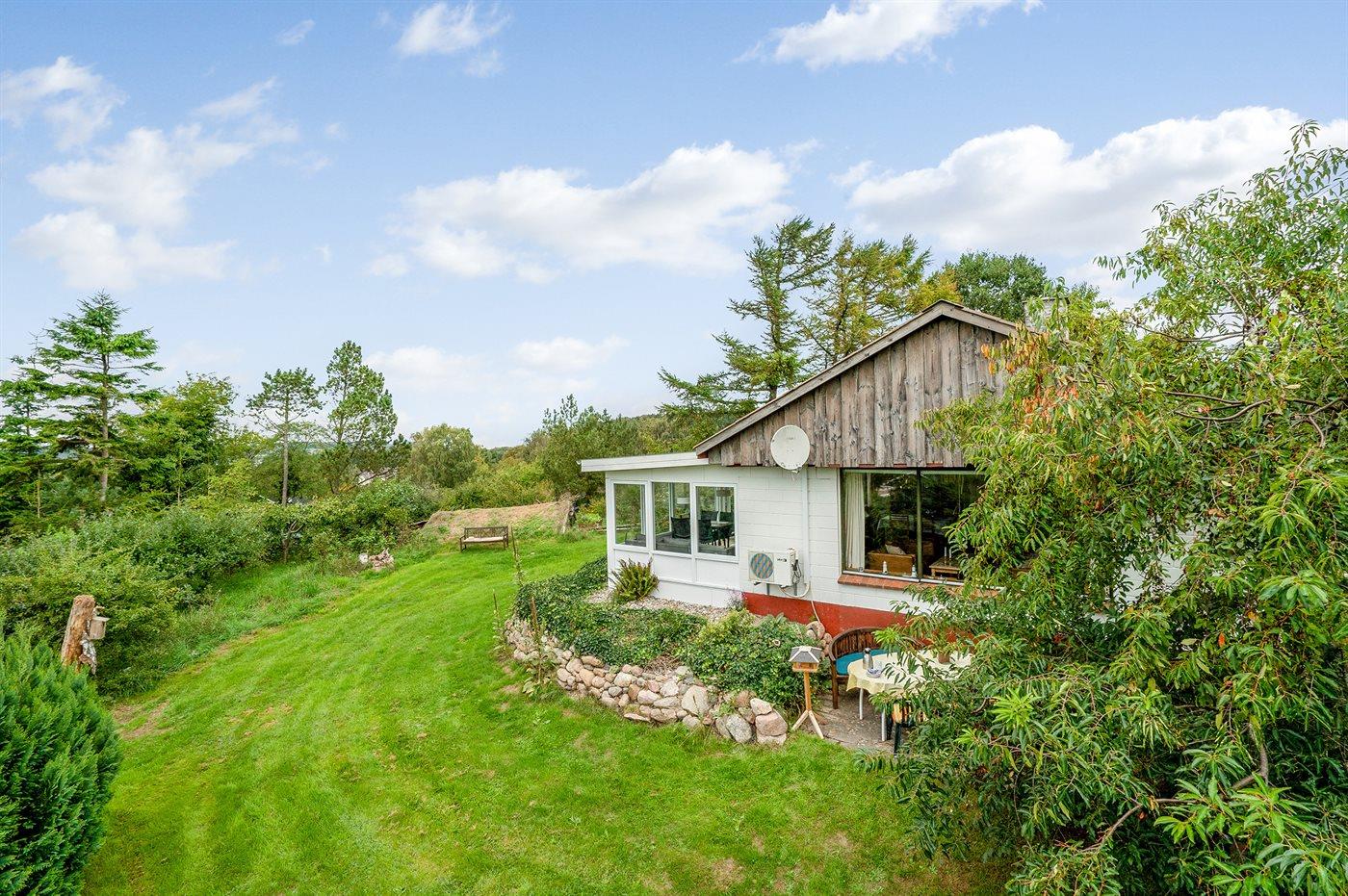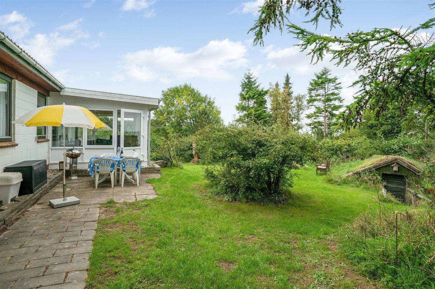 Ferieboligen er beliggende på en 1204 m² stor havegrund. Der er 700 m til fjorden. Nærmeste forretning er beliggende i en afstand af 1200 m. Der er en golfbane i en afstand af 1700 m. Til ferieboligen hører 40 m² terrasseareal. Heraf i alt 22 m² lukket terrasse. Ligeledes er der adgang til udestue. Der er redskabsrum. Parkering ved ferieboligen.