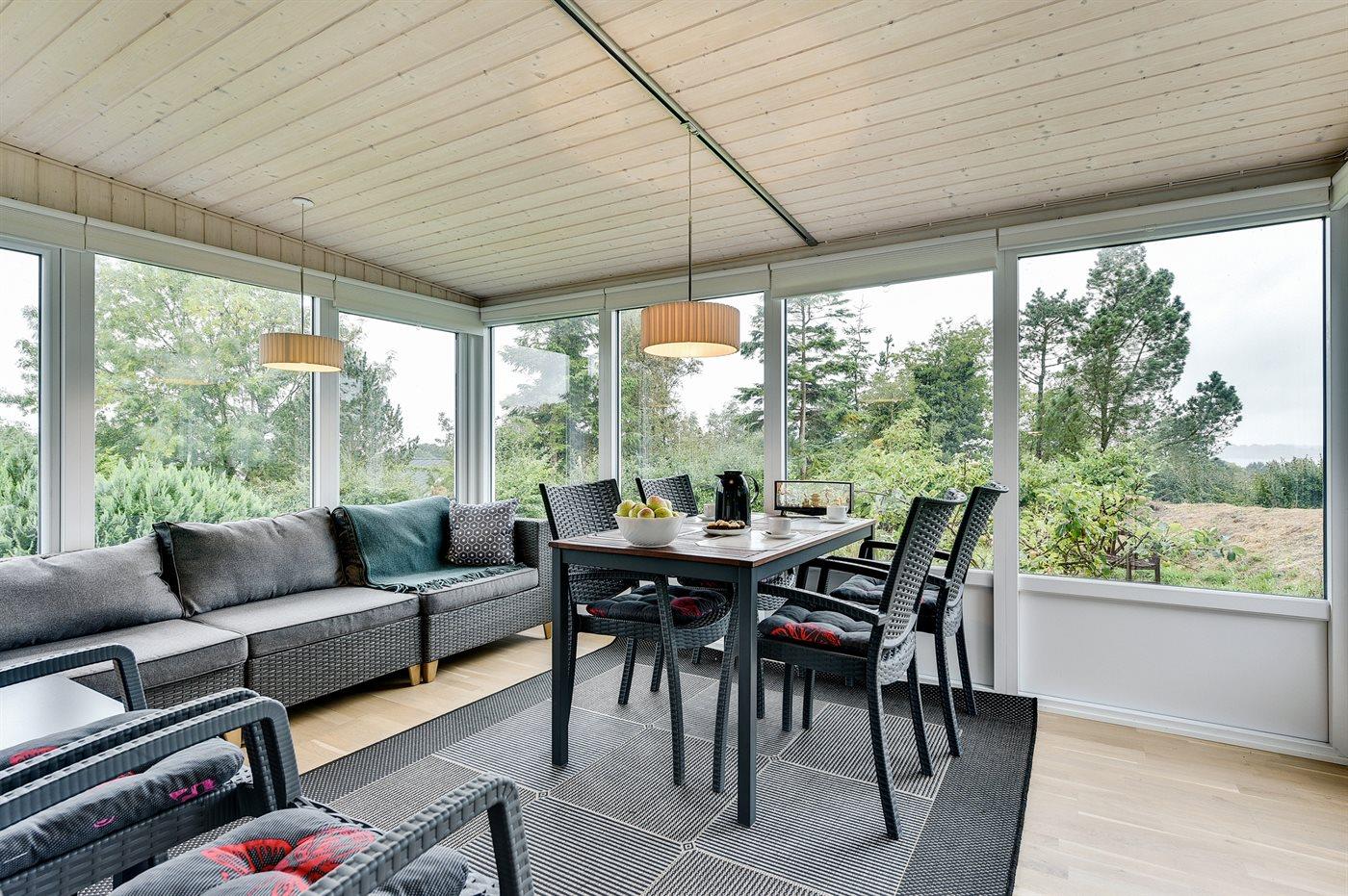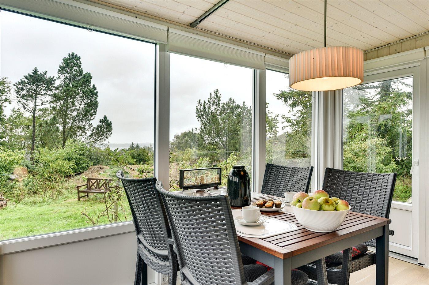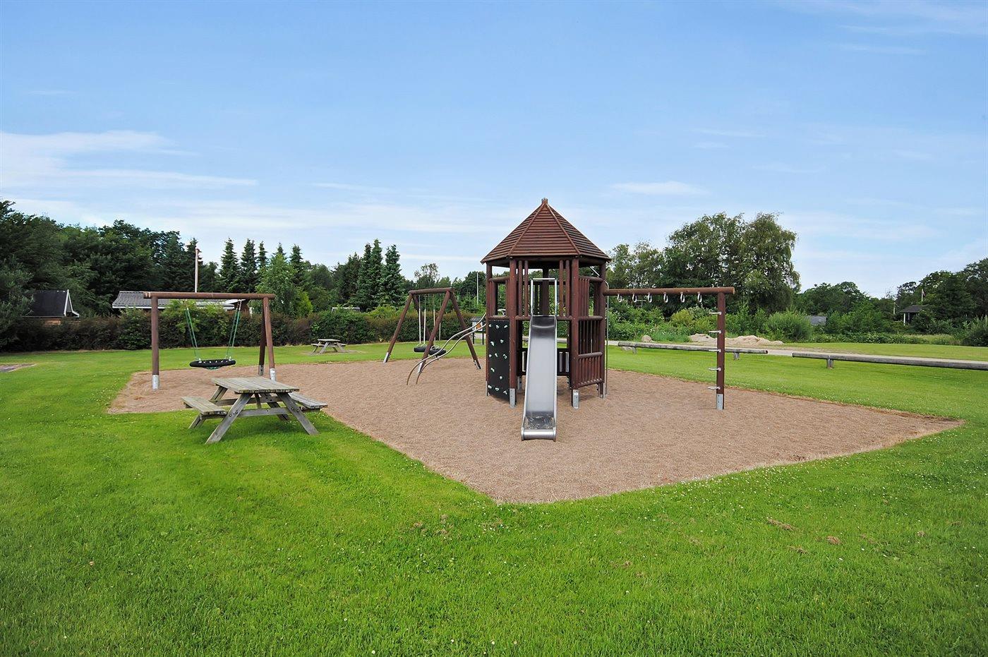 Ferieboligen er beliggende på en 1204 m² stor havegrund. Der er 700 m til fjorden. Nærmeste forretning er beliggende i en afstand af 1200 m. Der er en golfbane i en afstand af 1700 m. Til ferieboligen hører 40 m² terrasseareal. Heraf i alt 22 m² lukket terrasse. Ligeledes er der adgang til udestue. Der er redskabsrum. Parkering ved ferieboligen.