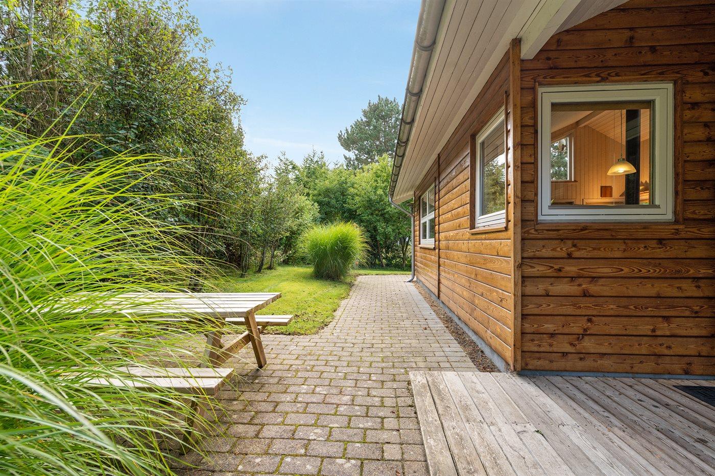 Ferieboligen er beliggende på en 1260 m² stor naturgrund. Der er 250 m til fjorden. Nærmeste forretning er beliggende i en afstand af 1000 m. Til ferieboligen hører 60 m² terrasseareal. Desuden er der 24 m² overdækket terrasse. Gynge. Sandkasse. Parkering ved ferieboligen.