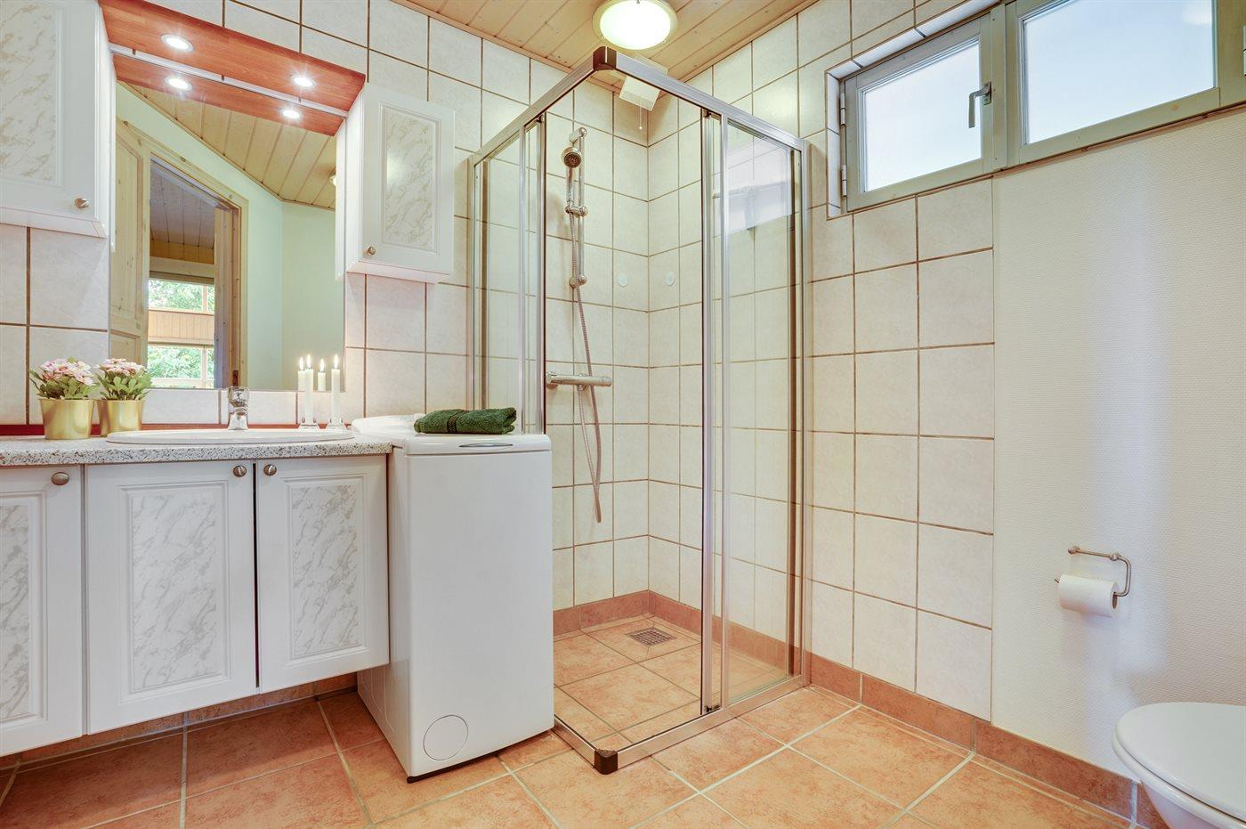 Der er 1 badeværelse med bruseniche og 1 toilet.. Der er gulvvarme på 1 badeværelse.