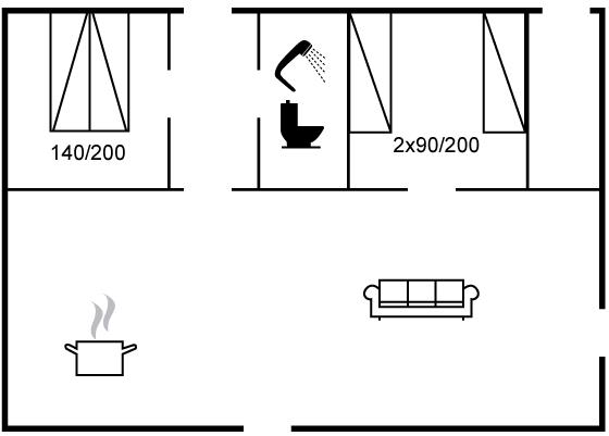 Der er i alt 2 soveværelser. Sovepladserne fordeler sig på: 2 sovepladser i dobbeltseng. 2 sovepladser i enkeltsenge.