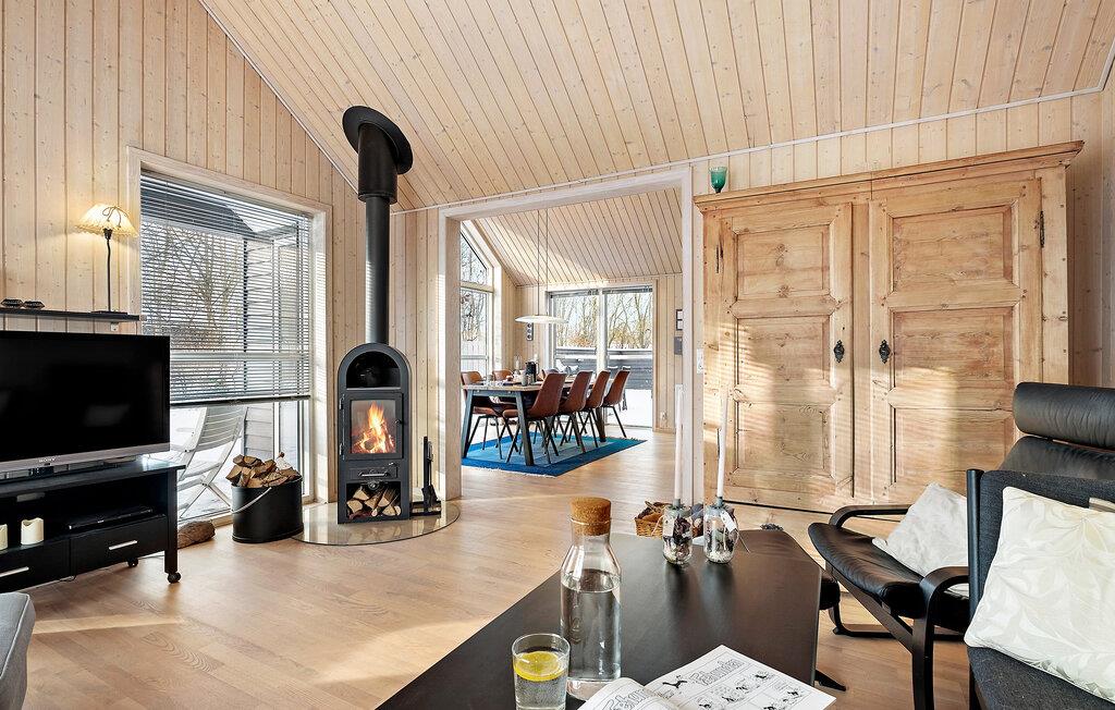 Ved Limfjordens friske vande ligger dette dejlige, rummelige feriehus i rolige omgivelser. Huset fremstår smukt og byder på alskens bekvemmeligheder, der gør jeres ferie til en ren fornøjelse. Indretningen er åben, charmerende og i lyse farver, hvor I hver især kan pusle med jeres gøremål, men stadig være sammen. Amatørkokkene kan svinge skeerne i det veludstyrede køkken, børnene kan lægge pusespil ved spisebordet og læsehestene kan krølle sig sammen i sofaen med en god bog. Den står med andre ord på klassisk feriehygge, der kan krydres med noget lækker wellness i saunaen.