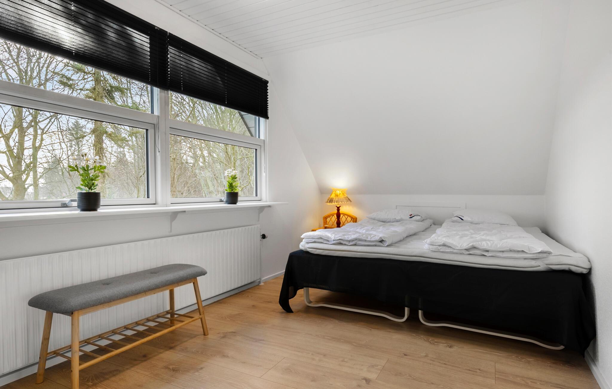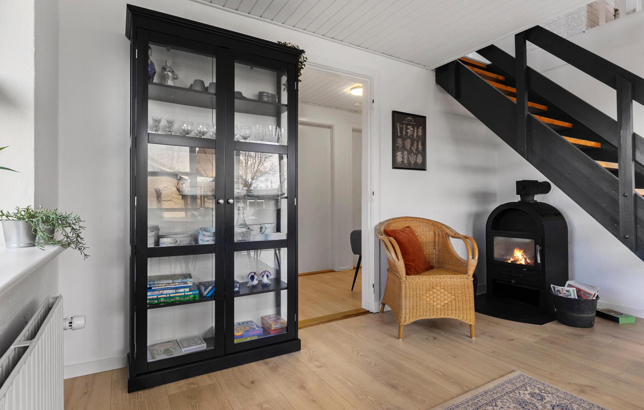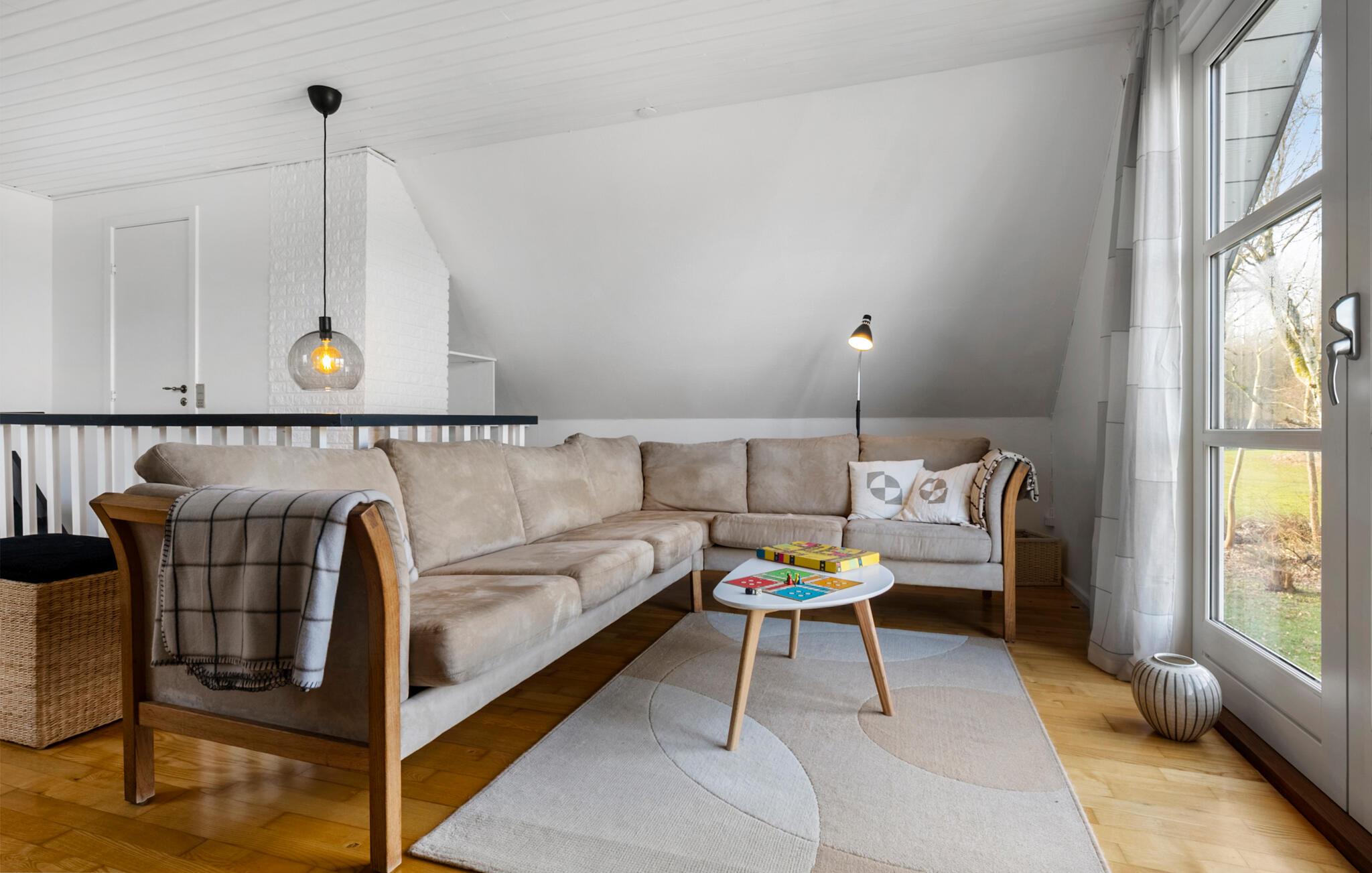 Nyd freden, roen og naturens skønhed i dette dejlige landskab ved Limfjorden. Dette sommerhus er en perfekt oase til nogle afslappende dage i smuk natur. Begynd dagene med en lækker morgenmad på terrassen, som er omgivet af en velplejet have. I kan også dække op i den stilfulde stue og begynde dagen i roligt tempo her. De skrå trælofter og de komfortable siddepladser på øverste etage giver huset en ekstra hyggelig stemning. Efter dagens oplevelser kan I tilbringe en hyggestund med familien i den store hjørnesofa, tænde op i brændeovnen, holde filmaftener eller spille et sjovt brætspil sammen.