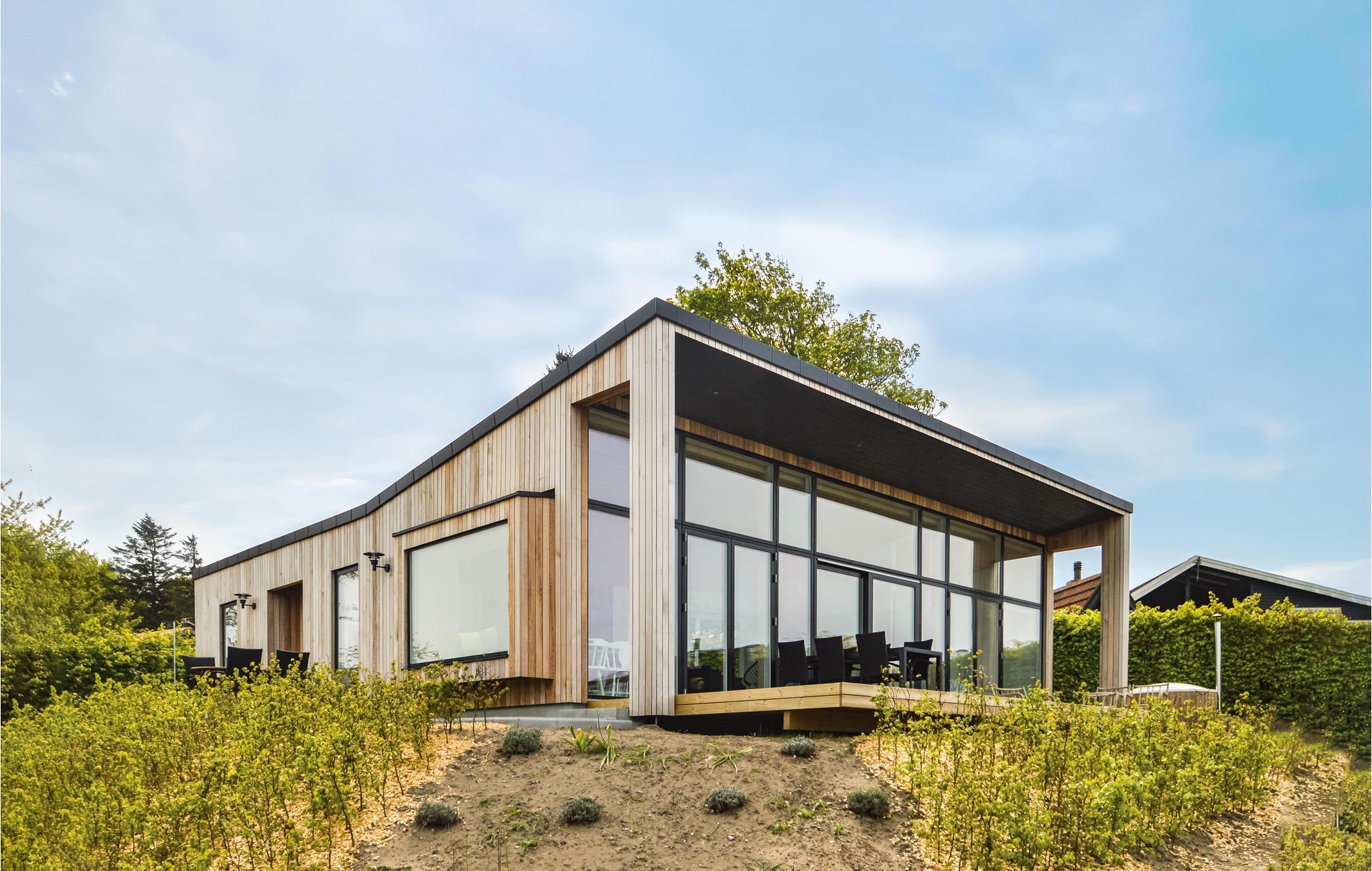 Nyd panoramaudsigt over Limfjorden fra denne moderne feriebolig med vildmarksbad og vestvendt terrasse.