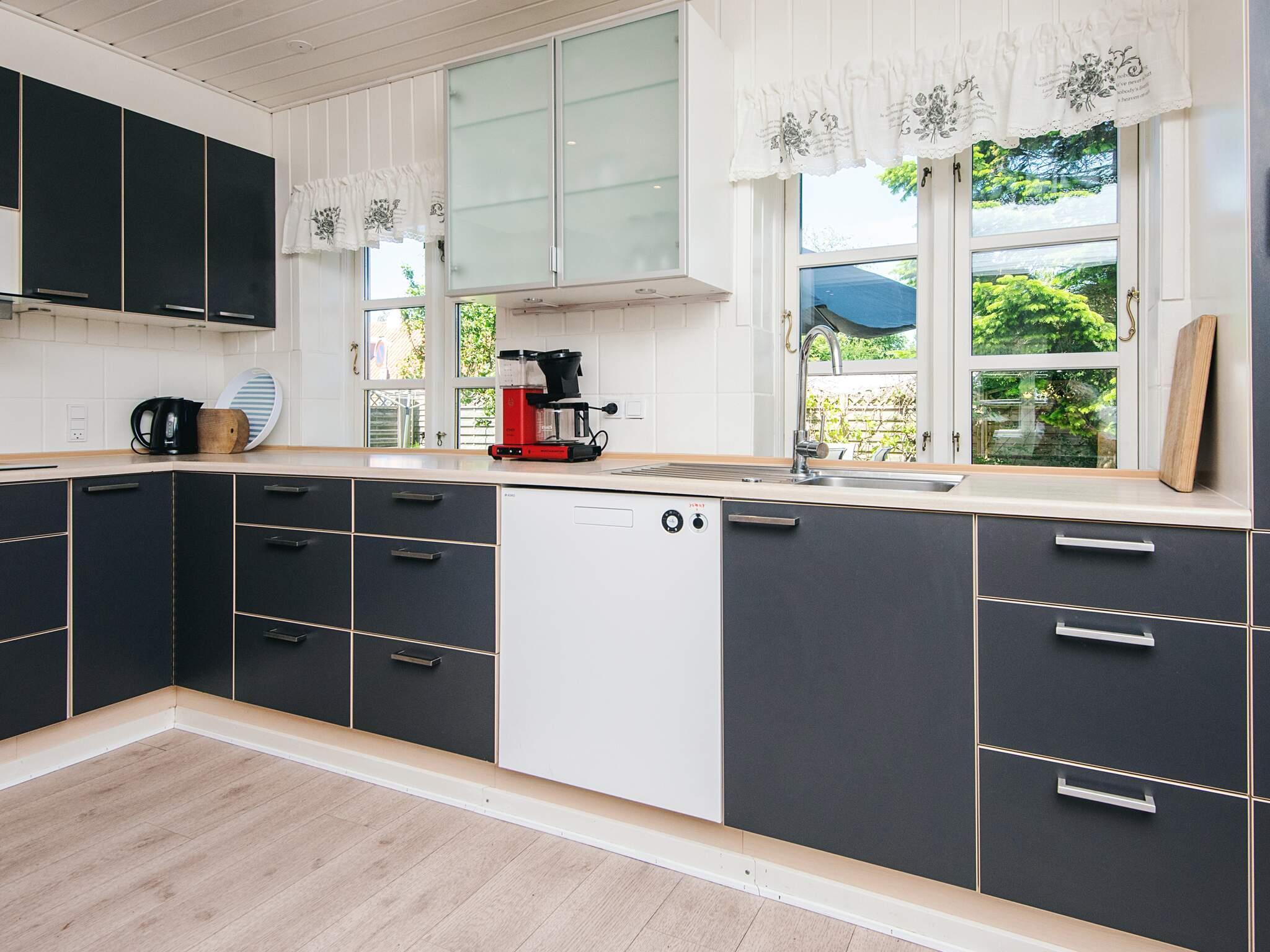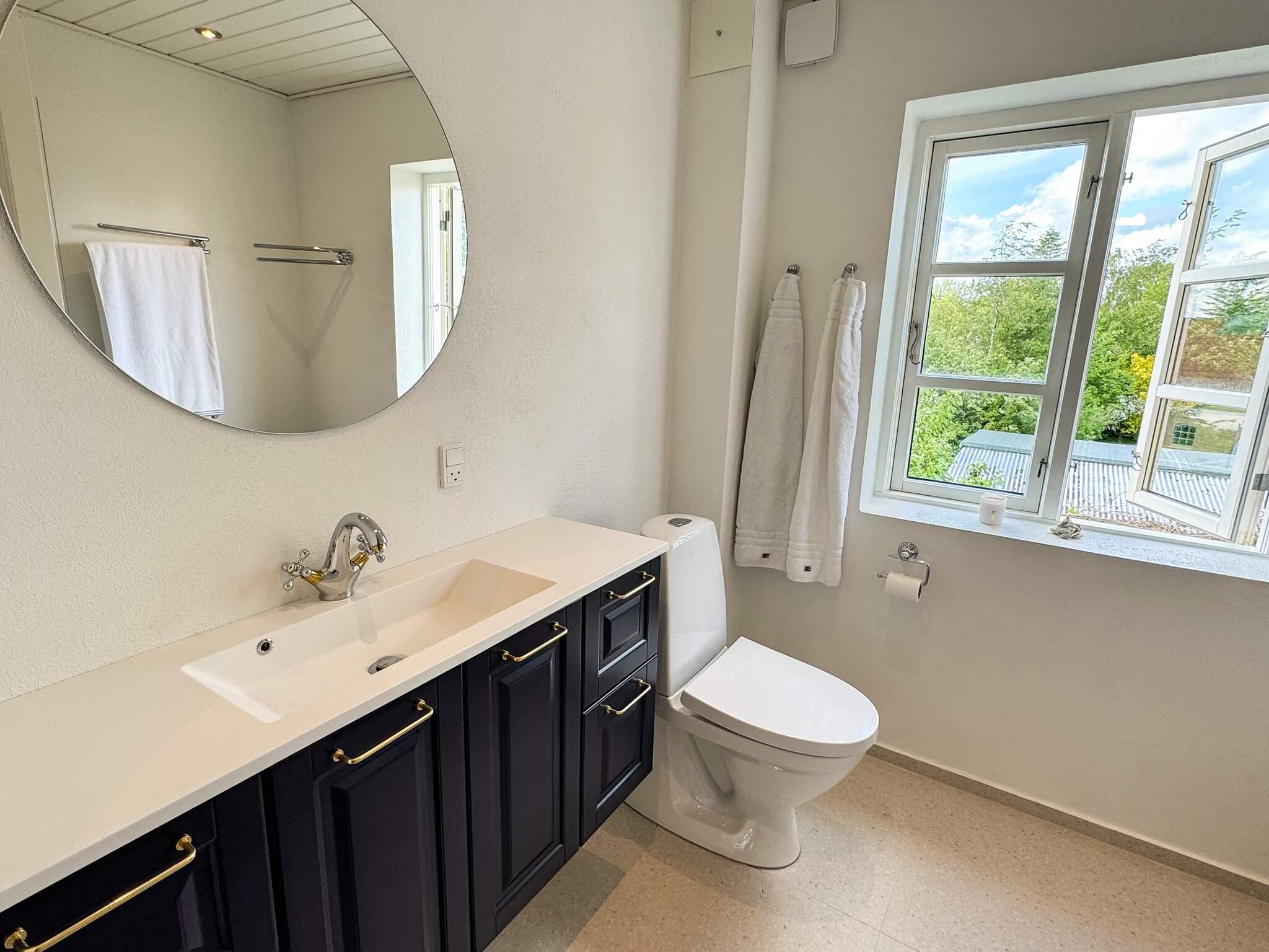 Indenfor er der balance mellem moderne bekvemmeligheder og hyggelig charme. Det åbne køkken er fuldt udstyret, og to lyse, velholdte badeværelser sikrer masser af plads og bekvemmelighed. I et velindrettet bryggers findes der vaskemaskine og tørretumbler til rådighed, for ekstra komfort under dit ophold.