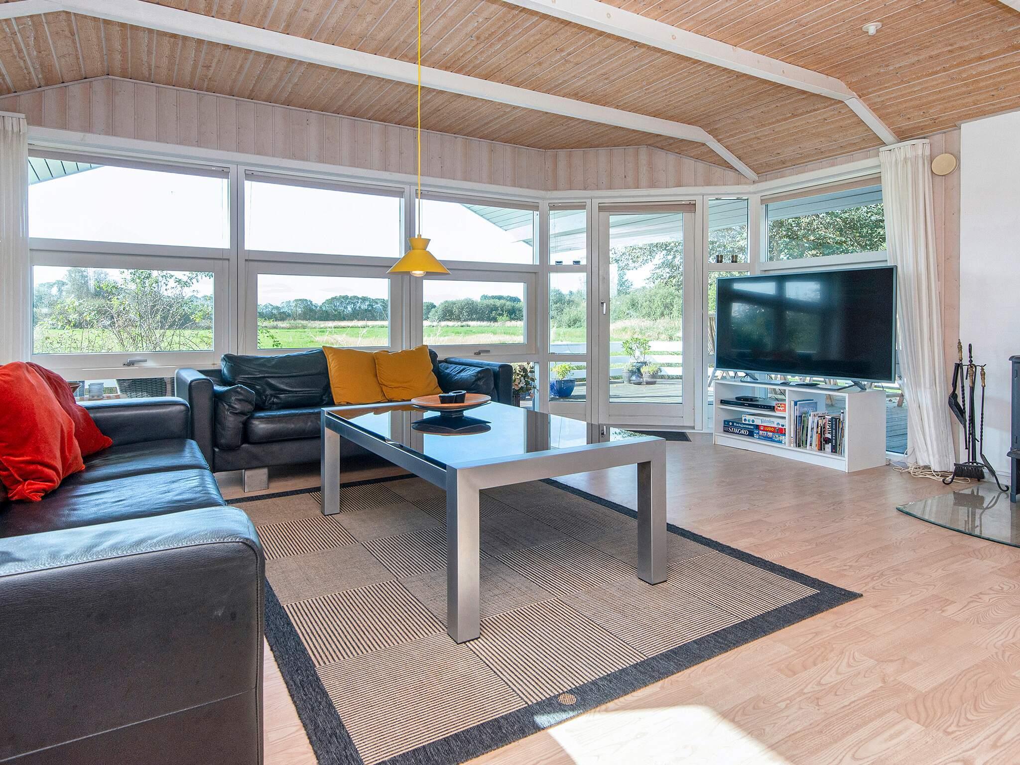 Dette lyse sommerhus med spabad og sauna ligger ikke langt fra den gode badestrand i Høll. Huset er godt møbleret, og fra stuen er der udgang til terrassen, hvorfra I har frit udsyn til det store friareal, som huset ligger ved. Der er en stor, god græsplæne, som indbyder til leg. Huset ligger i lukket, børnevenligt område, og I kan opleve, at der kommer dådyr forbi. Udlejes ikke til ungdomsgrupper.