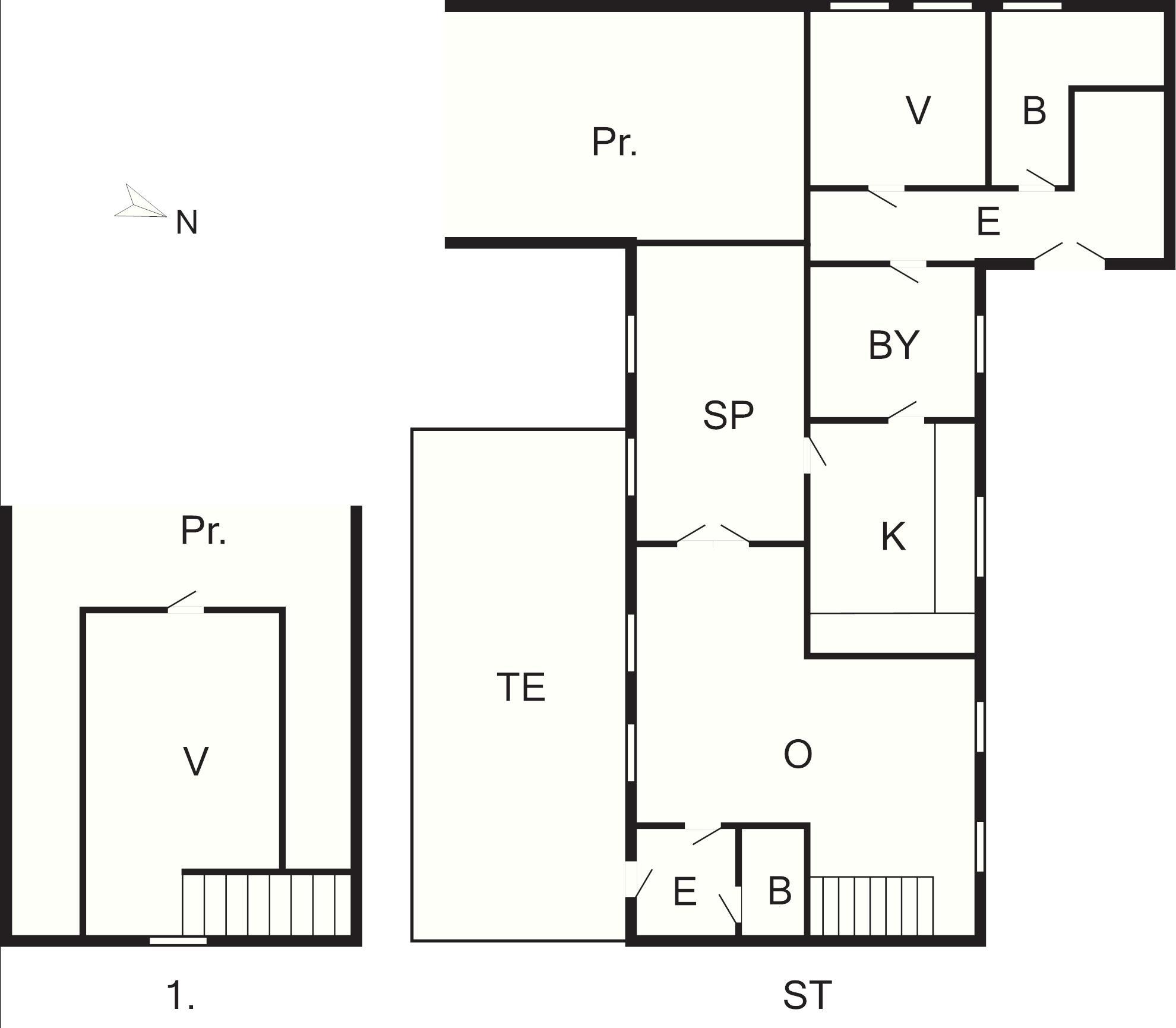 1 Opholdsstue: (1O), tv, høj stol