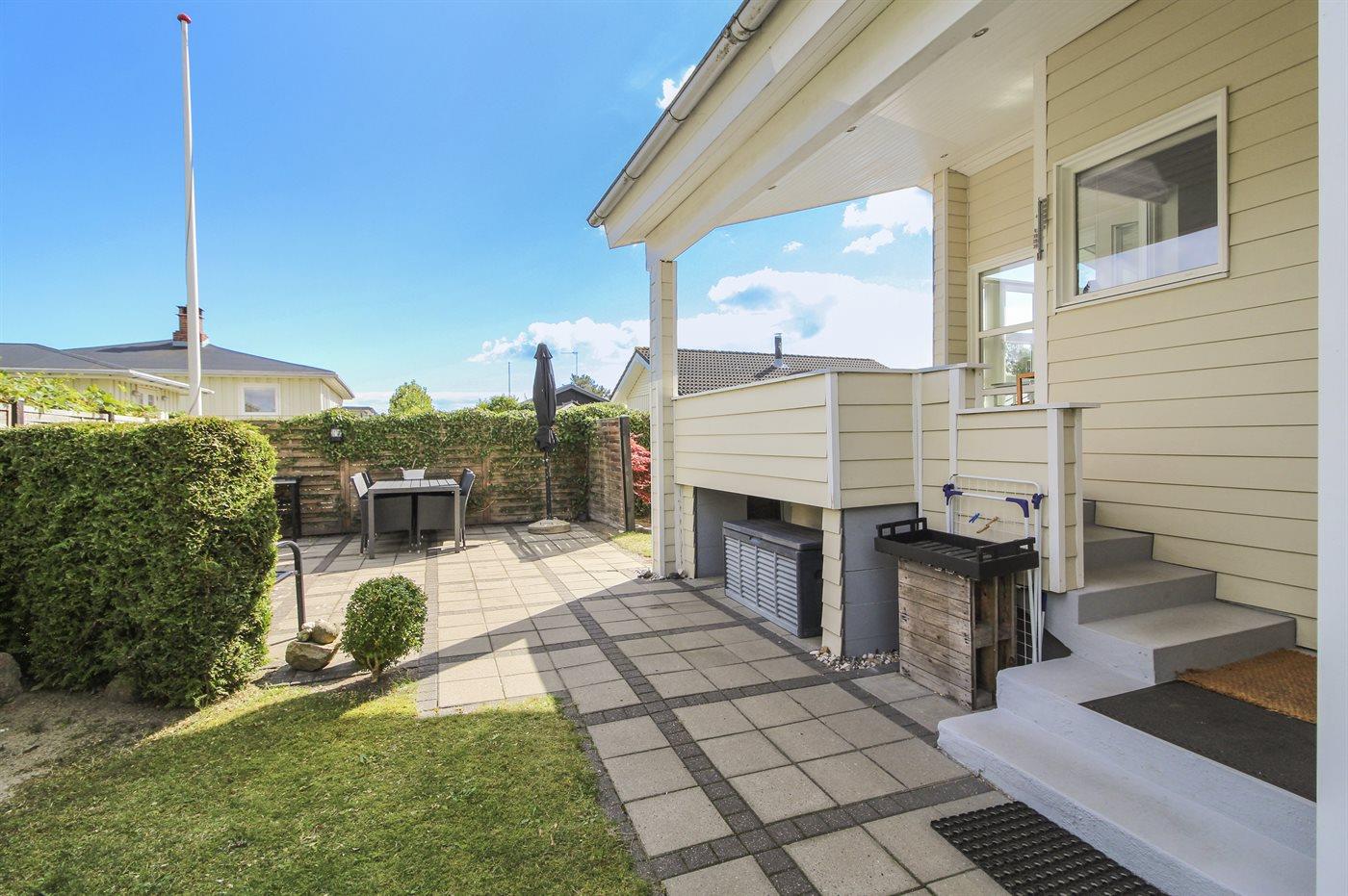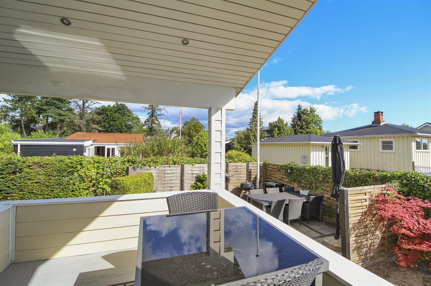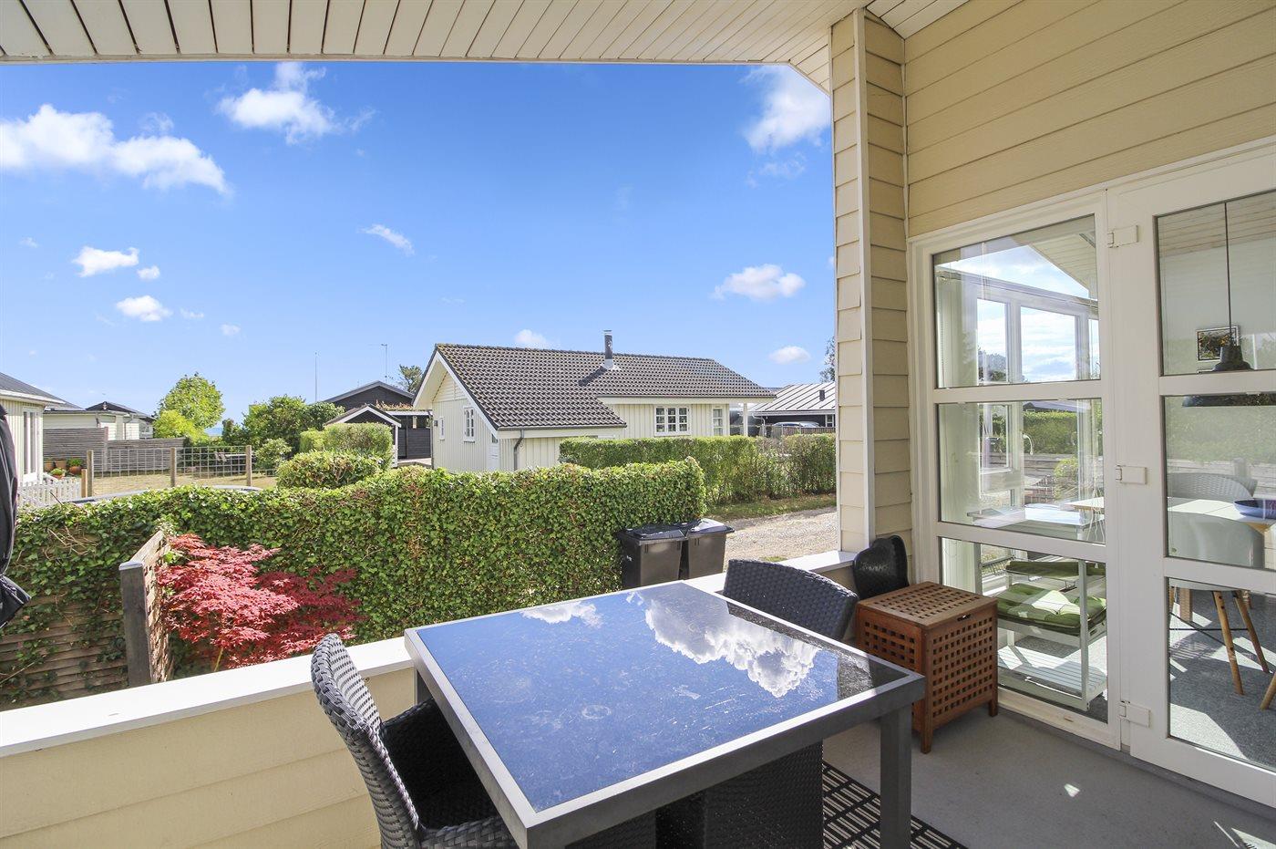 Ferieboligen er beliggende på en 256 m² stor naturgrund. Der er 150 m til havet. Nærmeste forretning er beliggende i en afstand af 300 m. Til ferieboligen hører 28 m² terrasseareal. Desuden er der 12 m² overdækket terrasse. Parkering ved ferieboligen.