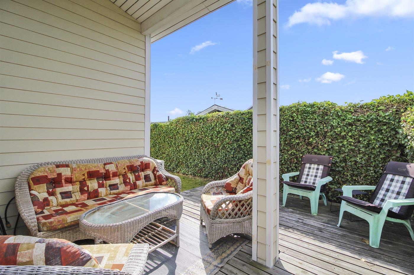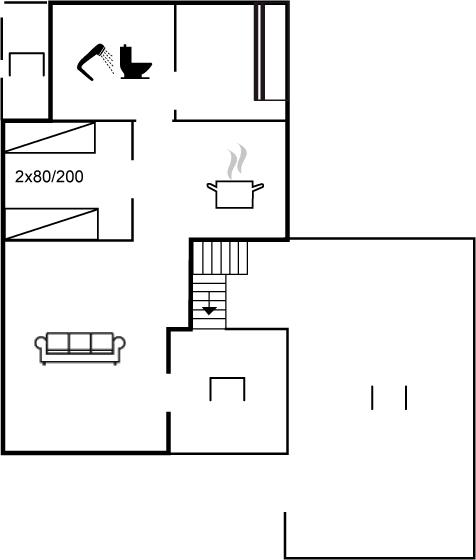 Kun 150 m fra dejlig sandstrand med gode badeforhold finder I dette hyggelige sommerhus Til huset hører 2 overdækkede terrasser med havemøbler. Bemærk: Fra badeværelset er der adgang til det ene af husets 2 soveværelser. Et hyggeligt sommerhus, der er velegnet for såvel par og den lille familie.