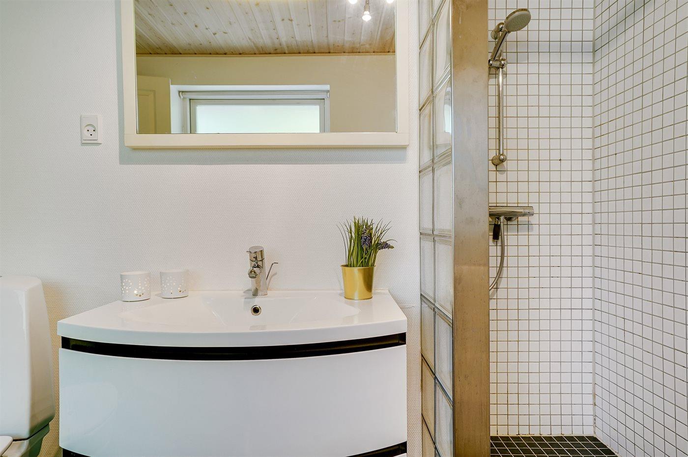 Der er 1 badeværelse med bruseniche og 1 toilet.. Der er gulvvarme på 1 badeværelse.