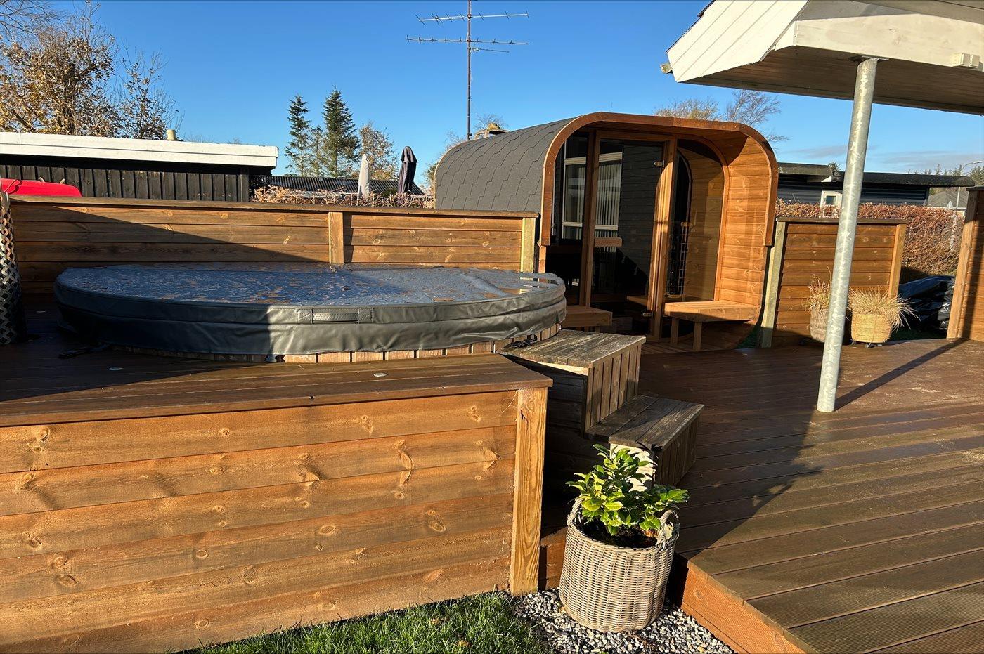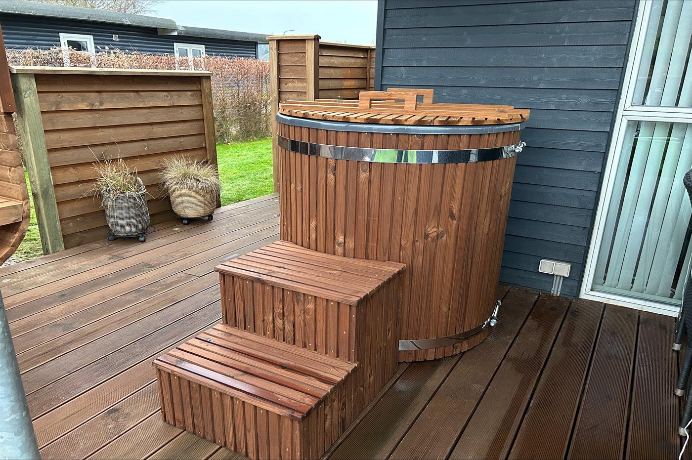 Der er mulighed for afslapning i indendørs spa til 2 personer. Der er mulighed for afslapning i det udendørs vildmarkskar til 6 personer.