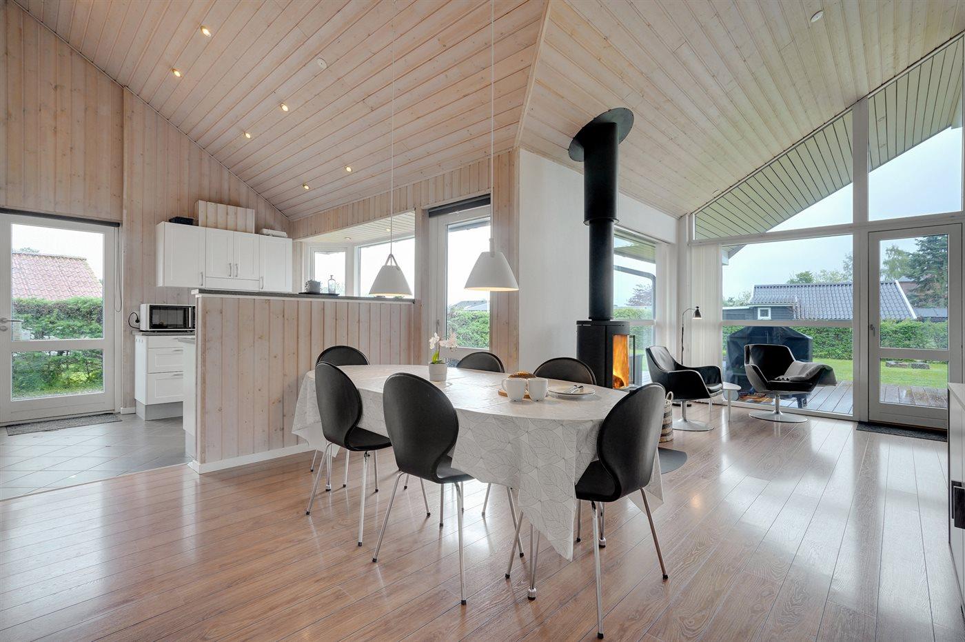 Sommerhuset egner sig til 8 personer samt 1 barn op til 3 år. 2 af sovepladserne er kun egnet til større børn (4-11 år). Ferieboligen er på 88 m² og er bygget i 2006. Det er ikke tilladt at medbringe husdyr. Ferieboligen er udstyret med energibesparende varmepumpe. Ferieboligen har vaskemaskine. Tørretumbler. Frysekapacitet på 70 liter. Der er desuden brændeovn. Til de små er der 1 stk. barnestol.