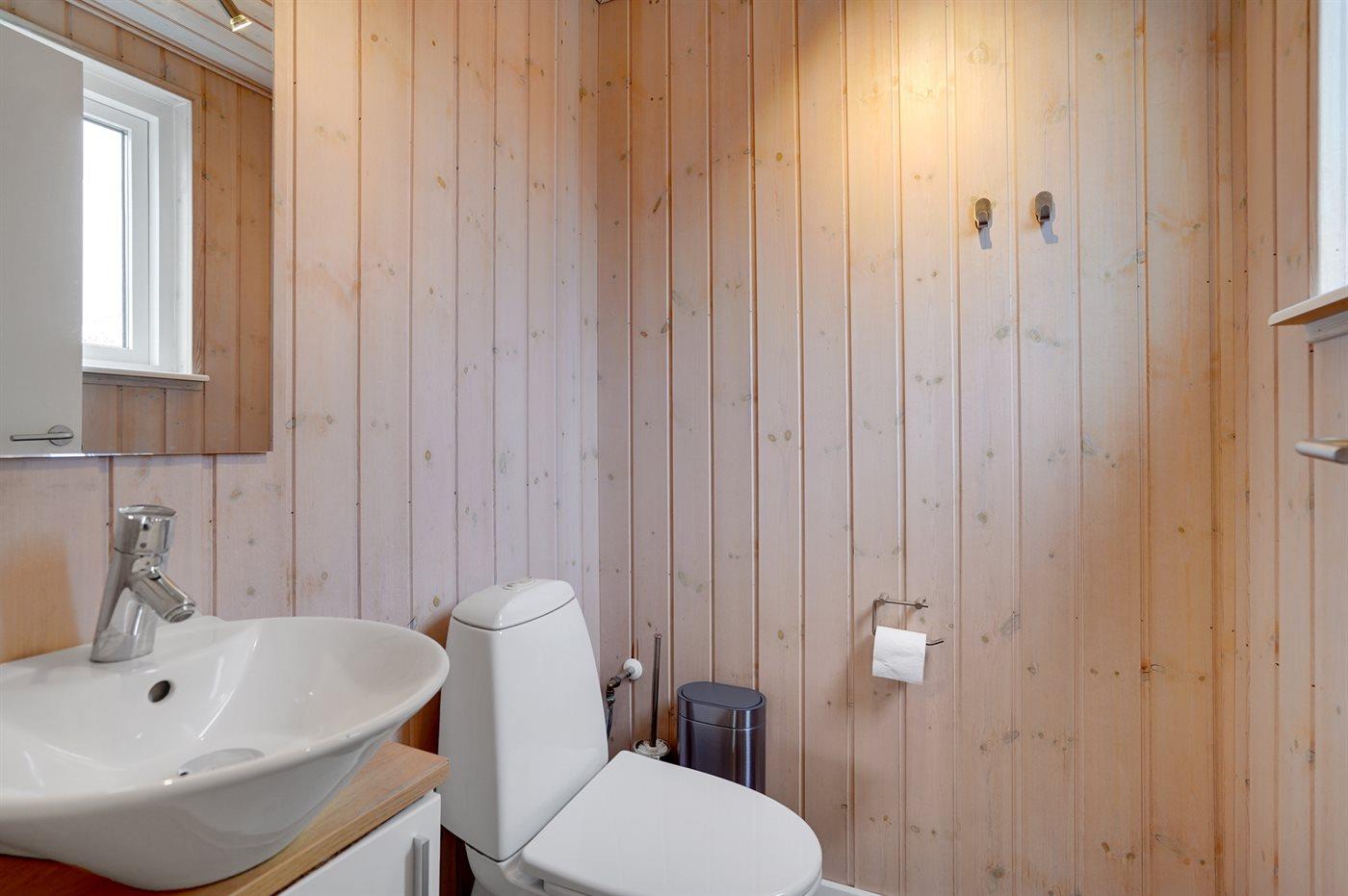 Der er 1 badeværelse med bruseniche og 2 toiletter, heraf 1 gæstetoilet. Der er gulvvarme på 1 badeværelse. Der er gulvvarme på gæstetoilettet.
