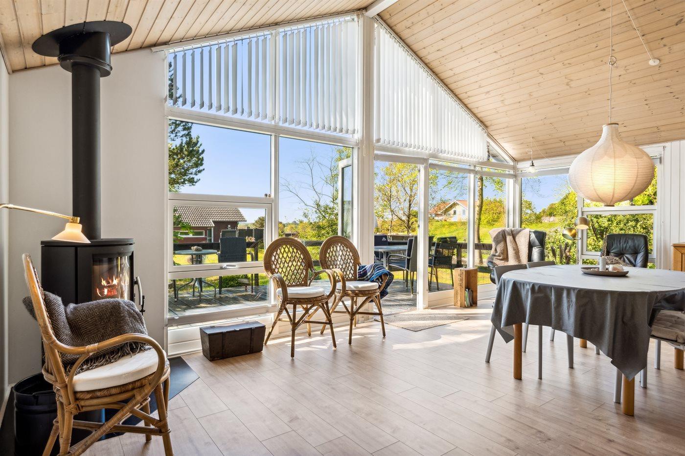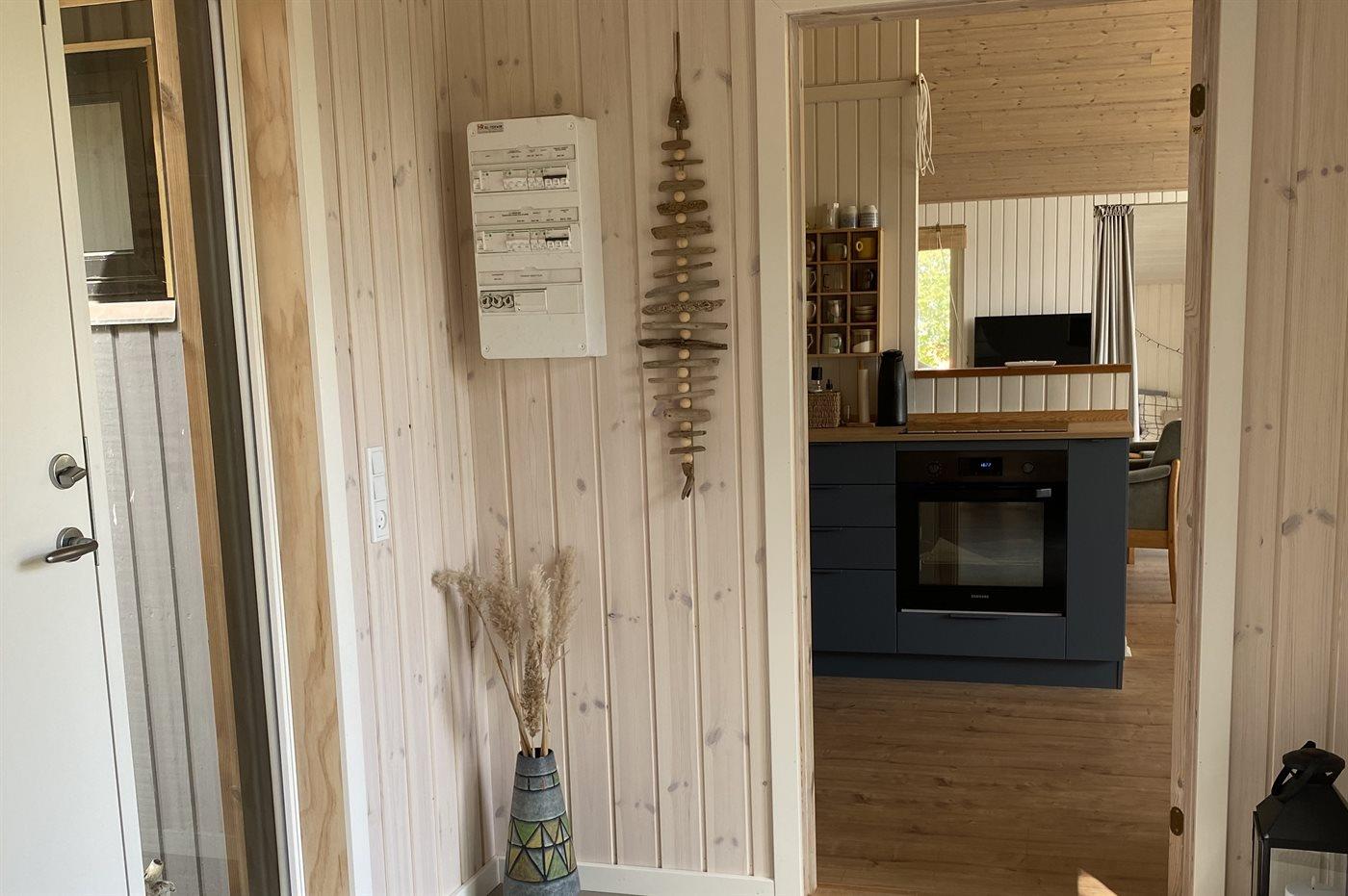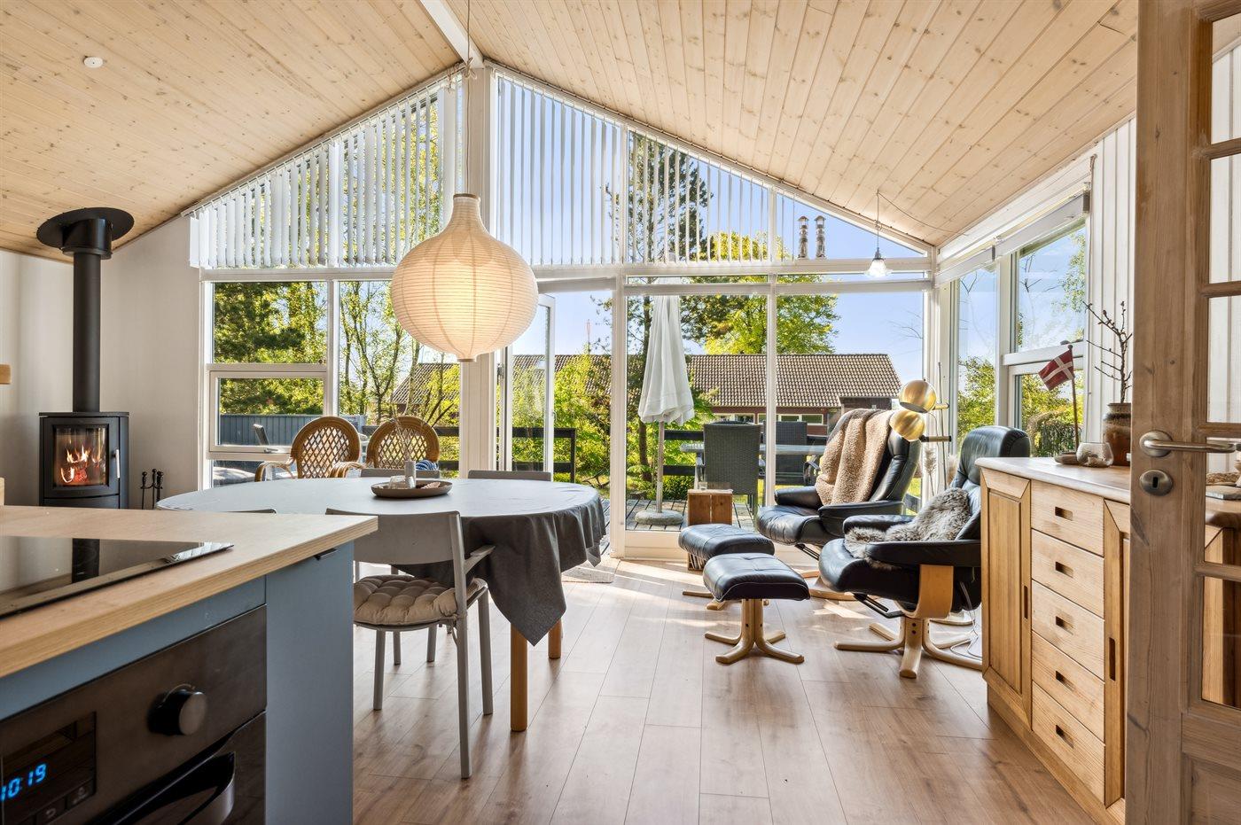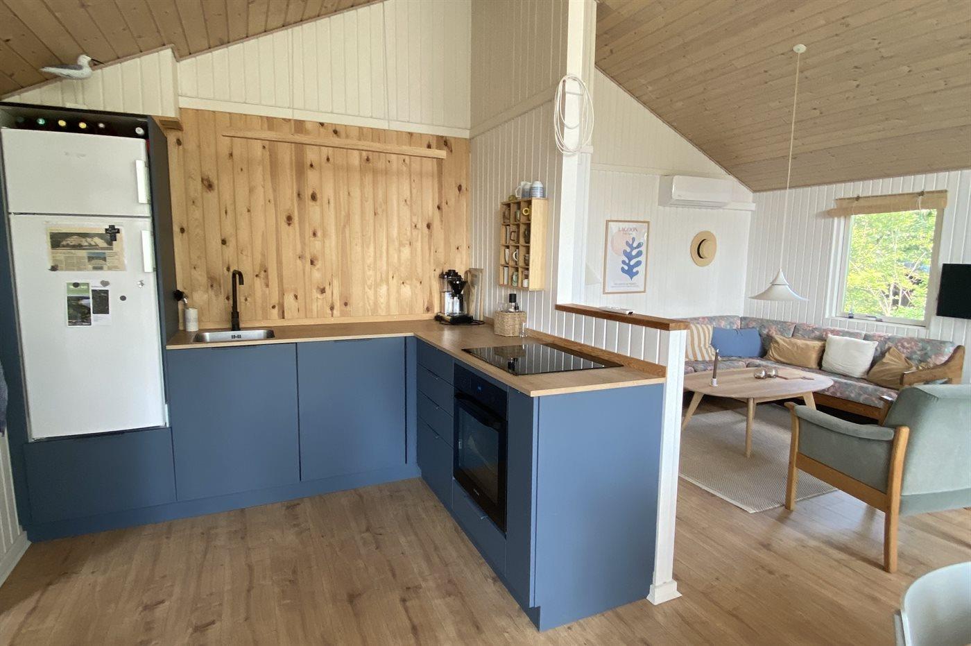 Det nyrenoverede sommerhus er godt indrettet og passer rigtig fint til en familie, som gerne vil nyde roen i dette dejlige ferieområde. Huset ligger på en1250 m² stor naturgrund. Der er adgang til træterrassen fra det lyse køkken-alrum, hvor der bl.a. er brændeovn.